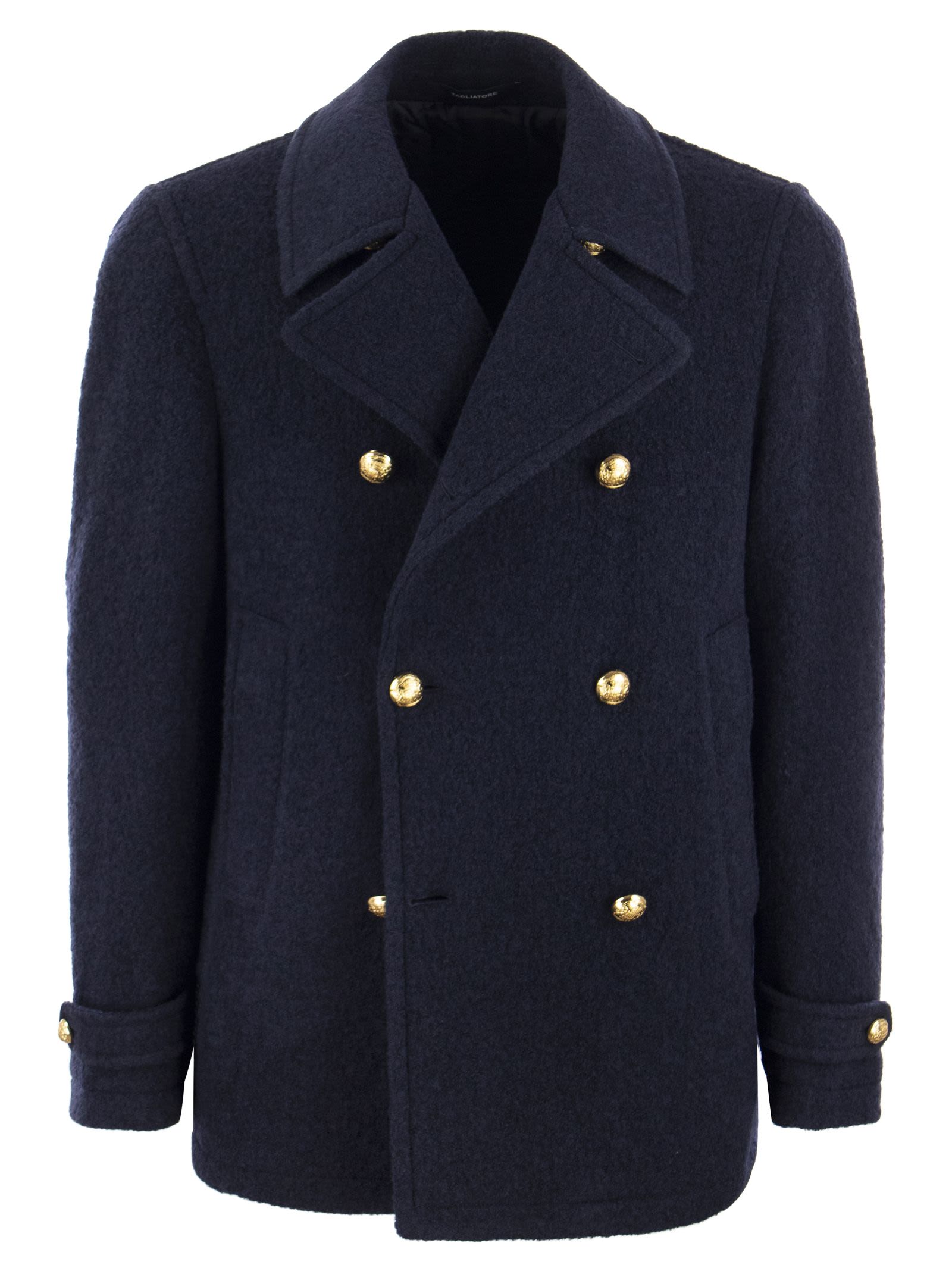 Maritime inspiration for Tagliatore's new double-breasted coat. Made of a wool and cotton blend, it sports wide notched lapels. The line, with a hemline that skims the hip, is perfect for adding elegance to your daytime looks. - Double-breasted closure with gold-coloured buttons - Button on sleeve DESIGNER ID: MONACO/F 340212 J 23I248 B3254 387