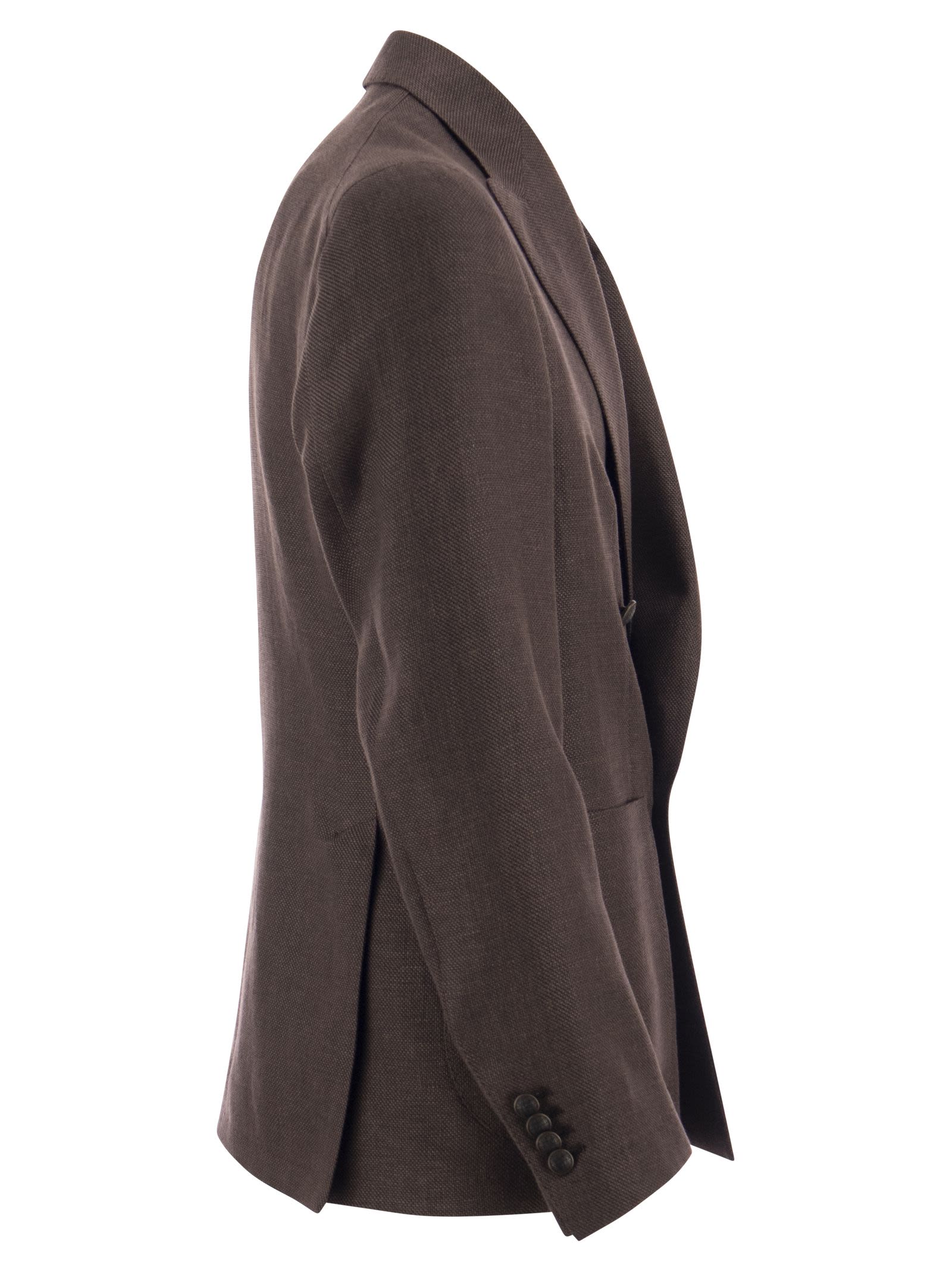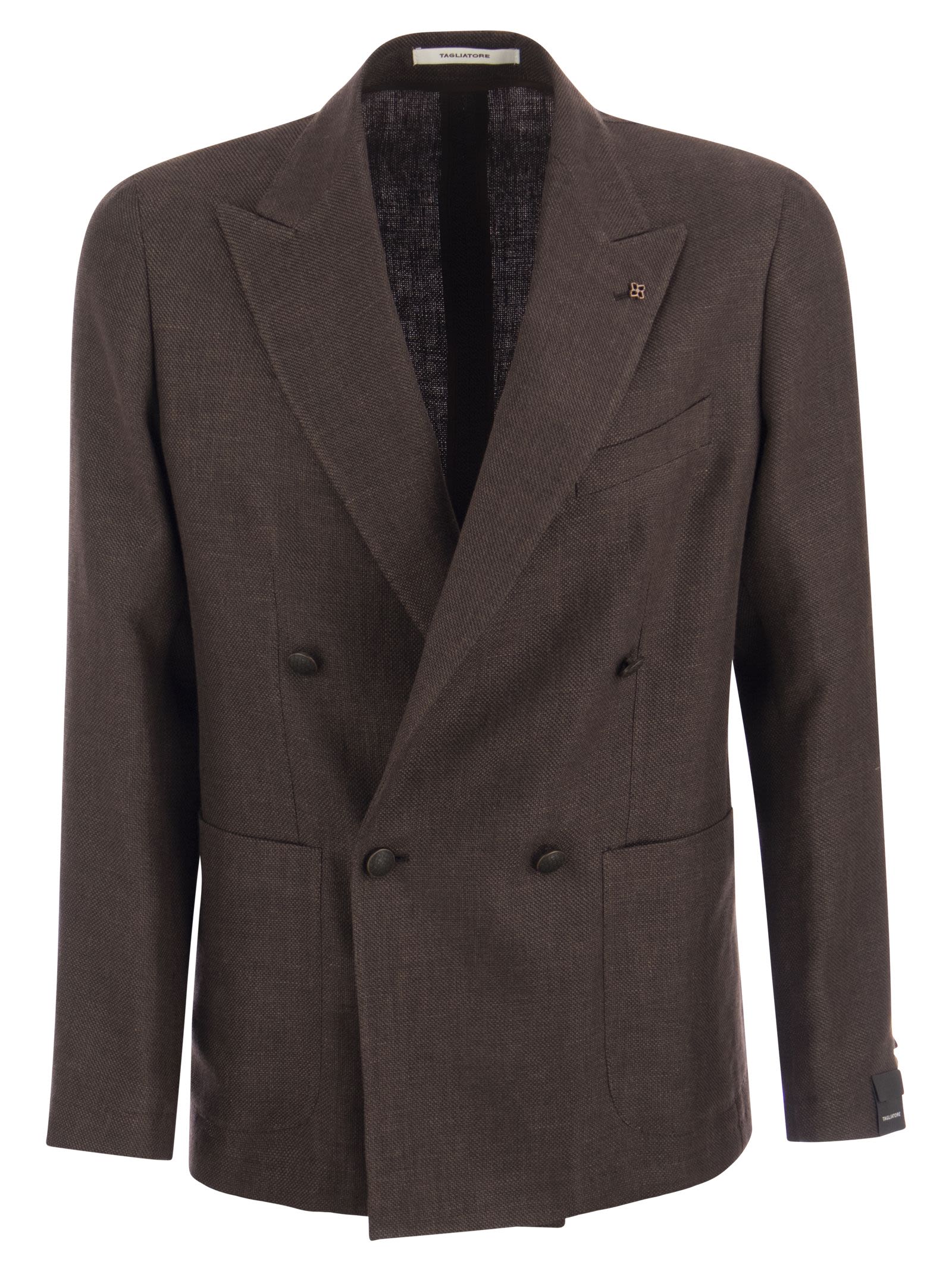 Tagliatore Double Breasted Jacket In Wool And Linen