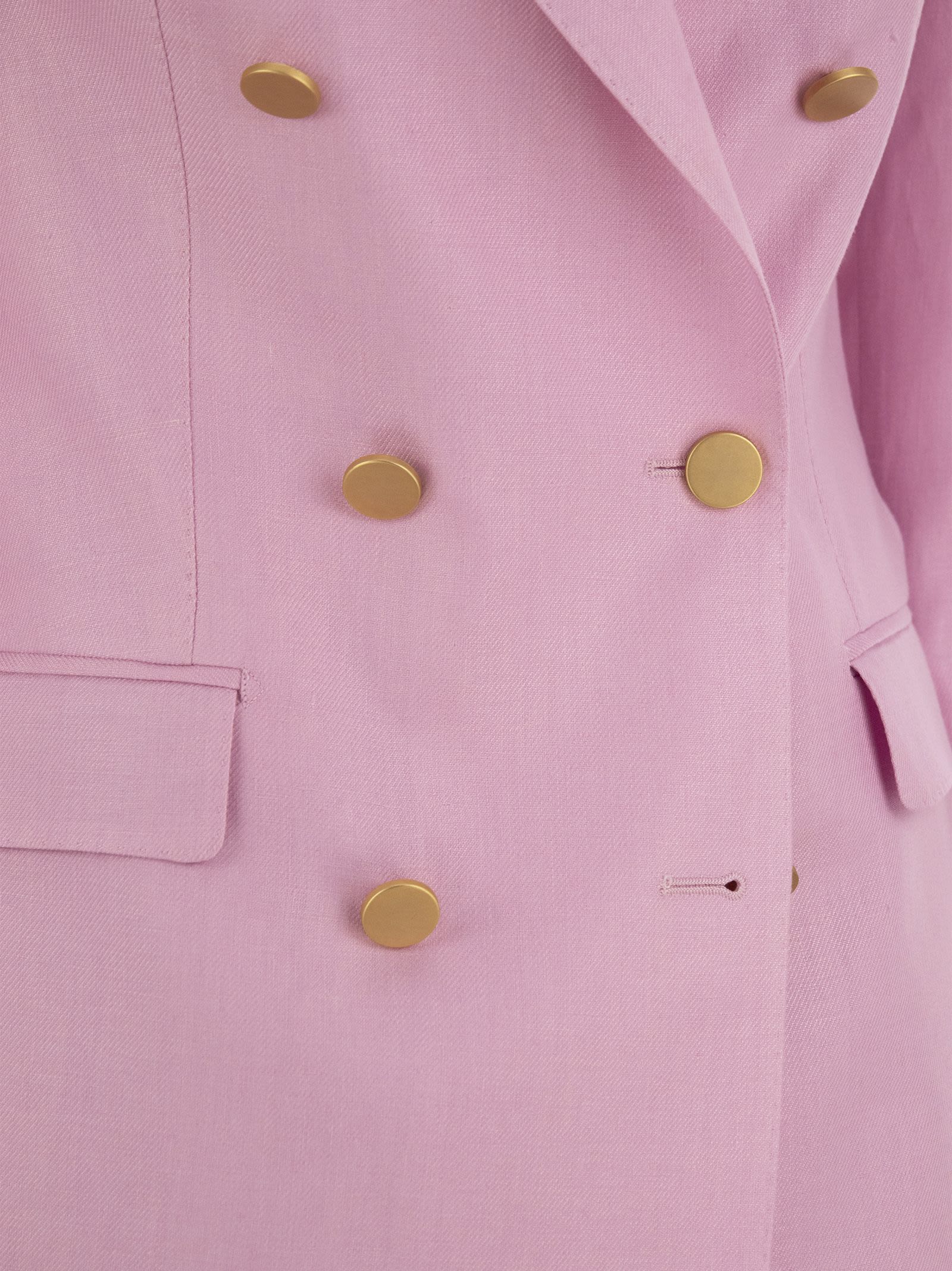 The unique character of lightweight linen combines a rustic, summery look with the fine qualities of natural fibres. The slub effect of the linen for the jacket and trousers ensures original and casual elegance. The jacket has close-fitting chest pockets with slightly more pronounced shoulders to enhance the figure, while the trousers, with their slim proportions, offer a straight cut down the leg. - Slim fit - Double-breasted 6-button closure - Classic lapels - Flap pockets and breast pocket - Lined - Trousers with hook and zip fastening DESIGNER ID: T-PARIGI10BS 340021 U 23E065 EY891