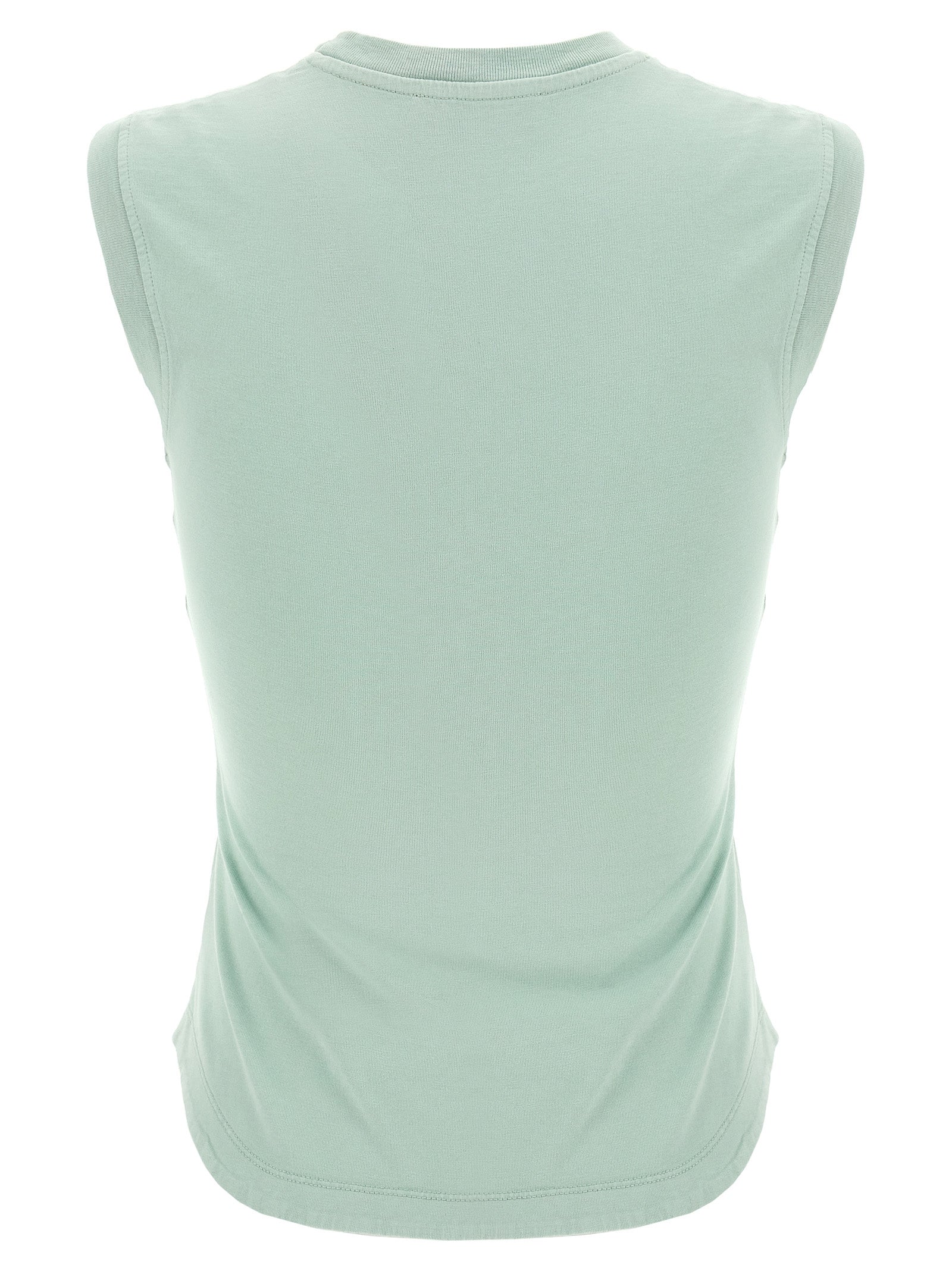 'Reese' cotton top with front logo appliqué, armholes, crew neck, shaped hem.