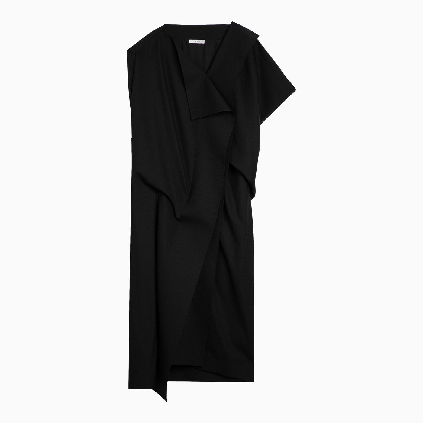 Black wool and viscose blend one-shoulder dress from The Row featuring a V-neck, front slit and asymmetric design.