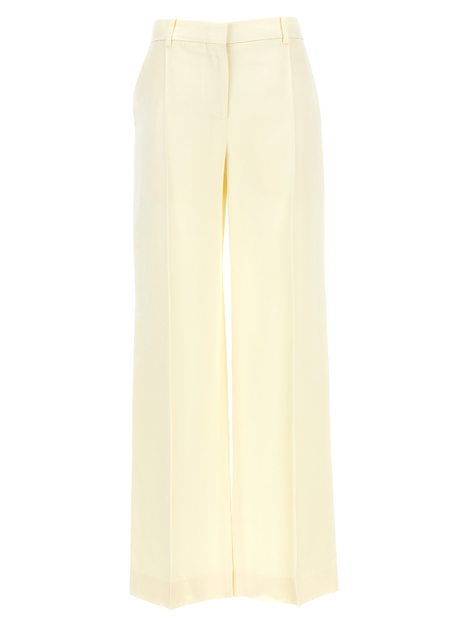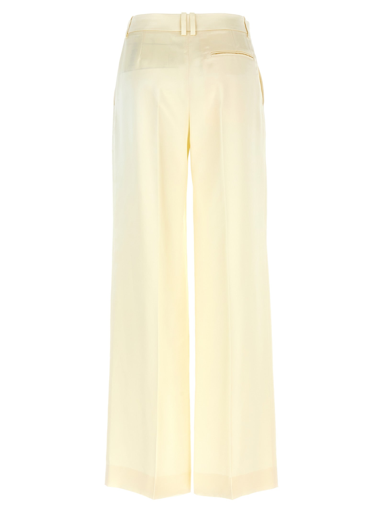 'Encore' tailored silk trousers, straight leg, ironed central crease, hook and button zip closure, pockets