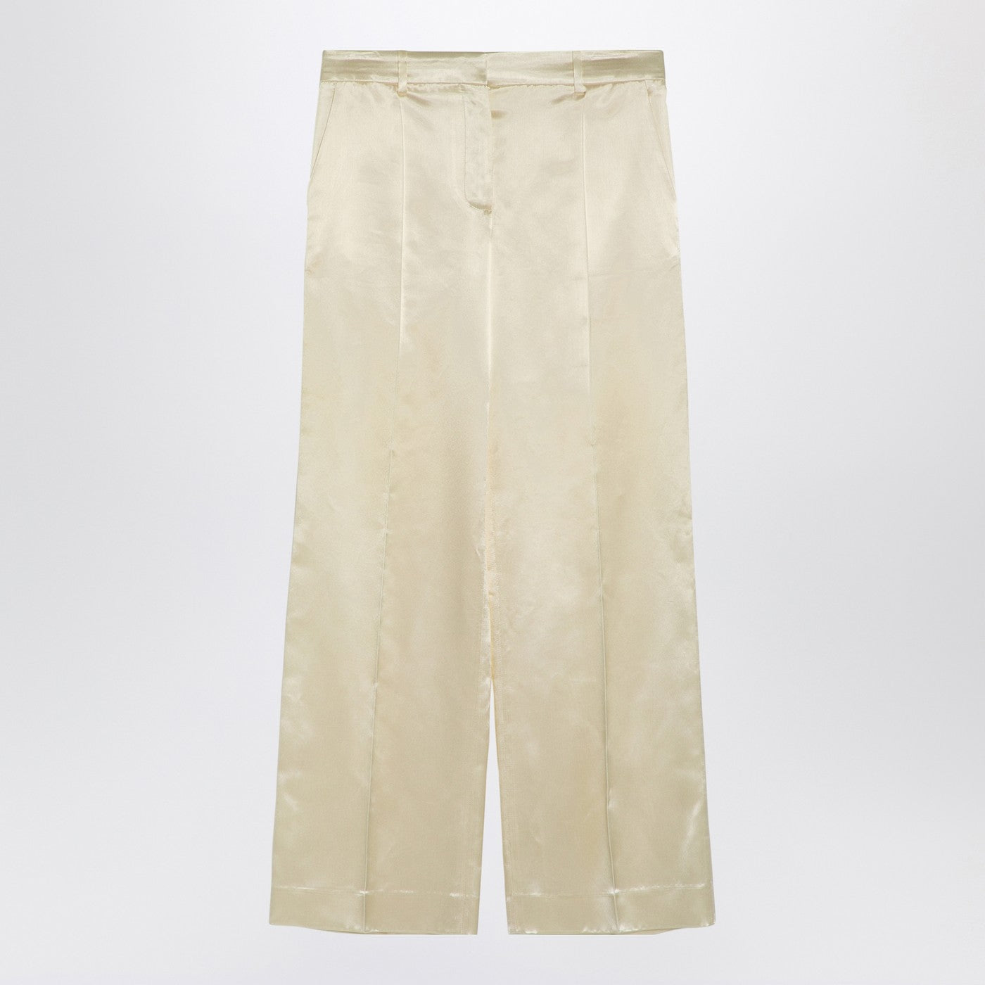 Milk-coloured viscose trousers from The Row featuring two side welt pockets, a front zip and hook fastening, belt loops and a back welt pocket.