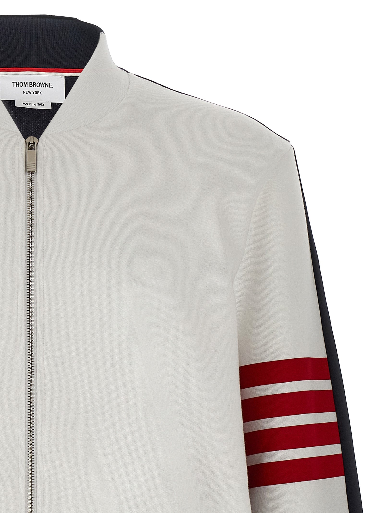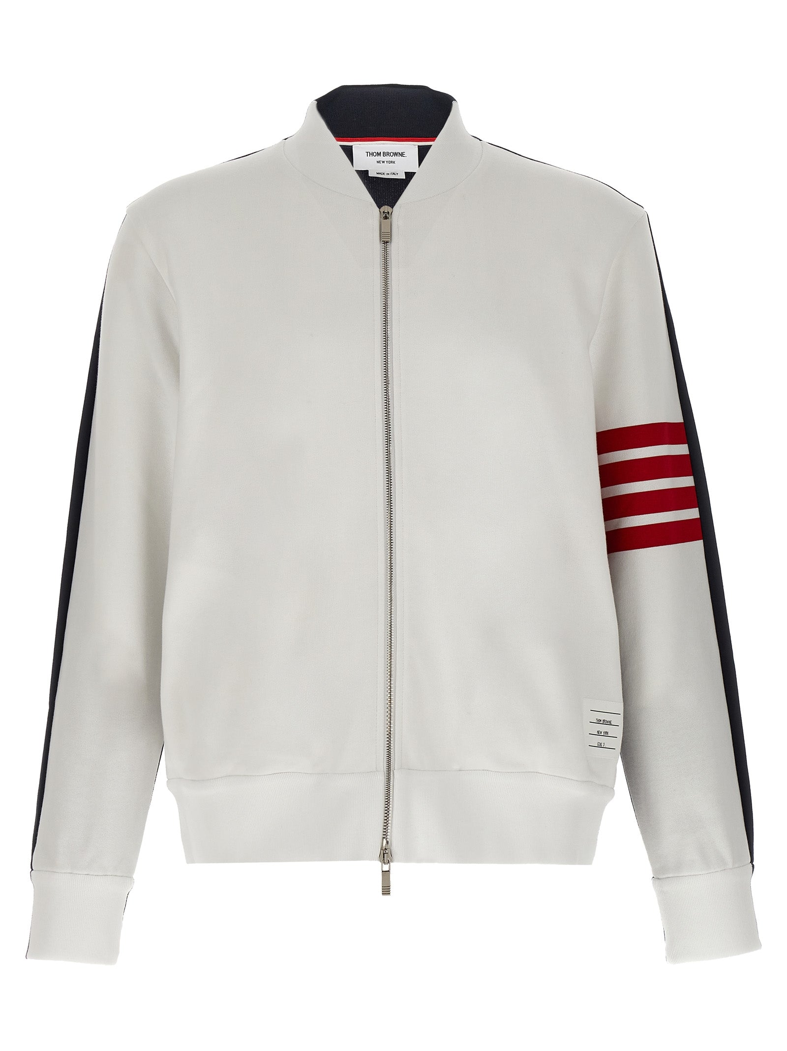 Two-tone gauze cotton sweatshirt with long cuffed sleeves and '4 Bar' detail, zip closure, pockets, front logo patch.