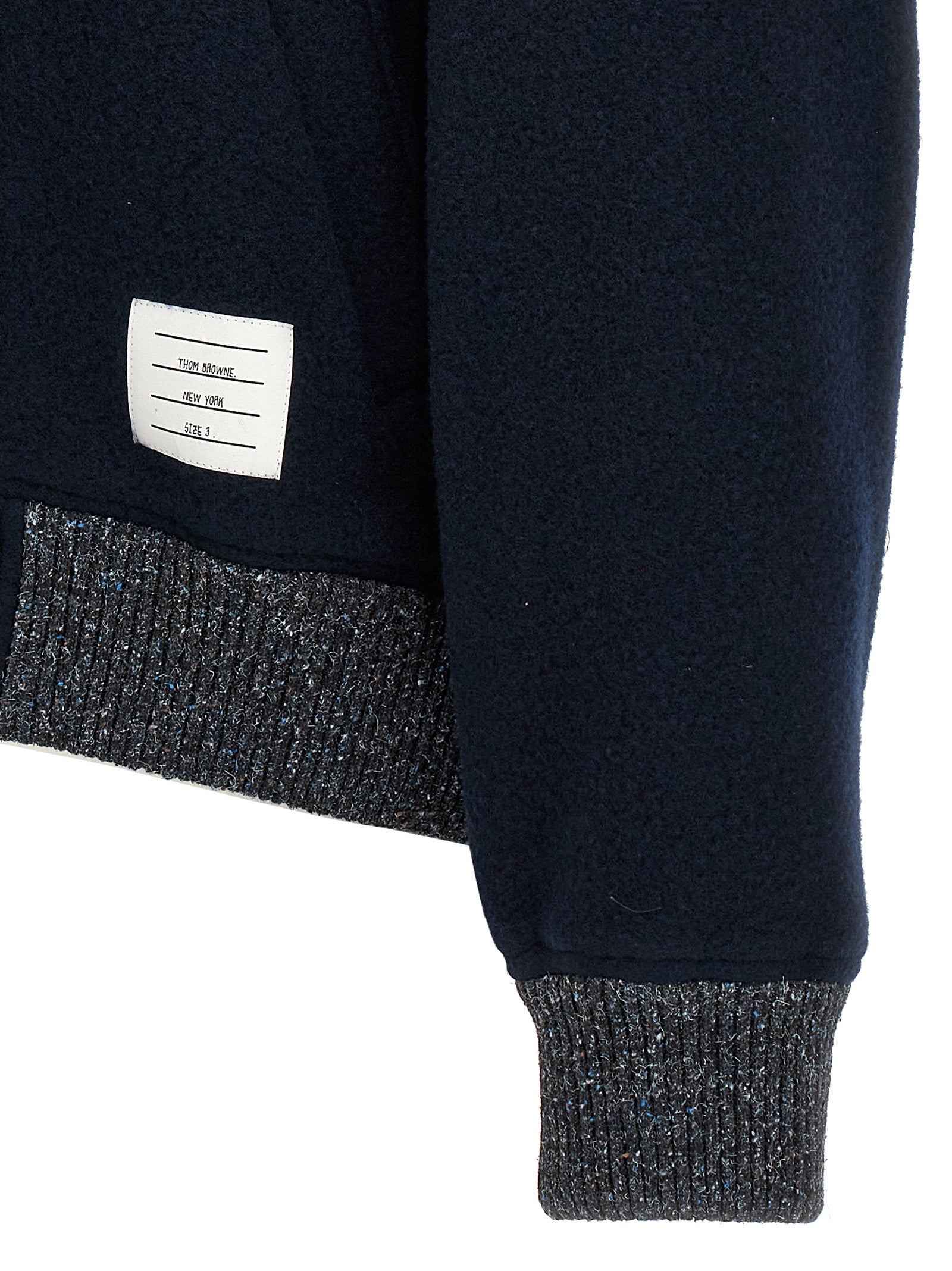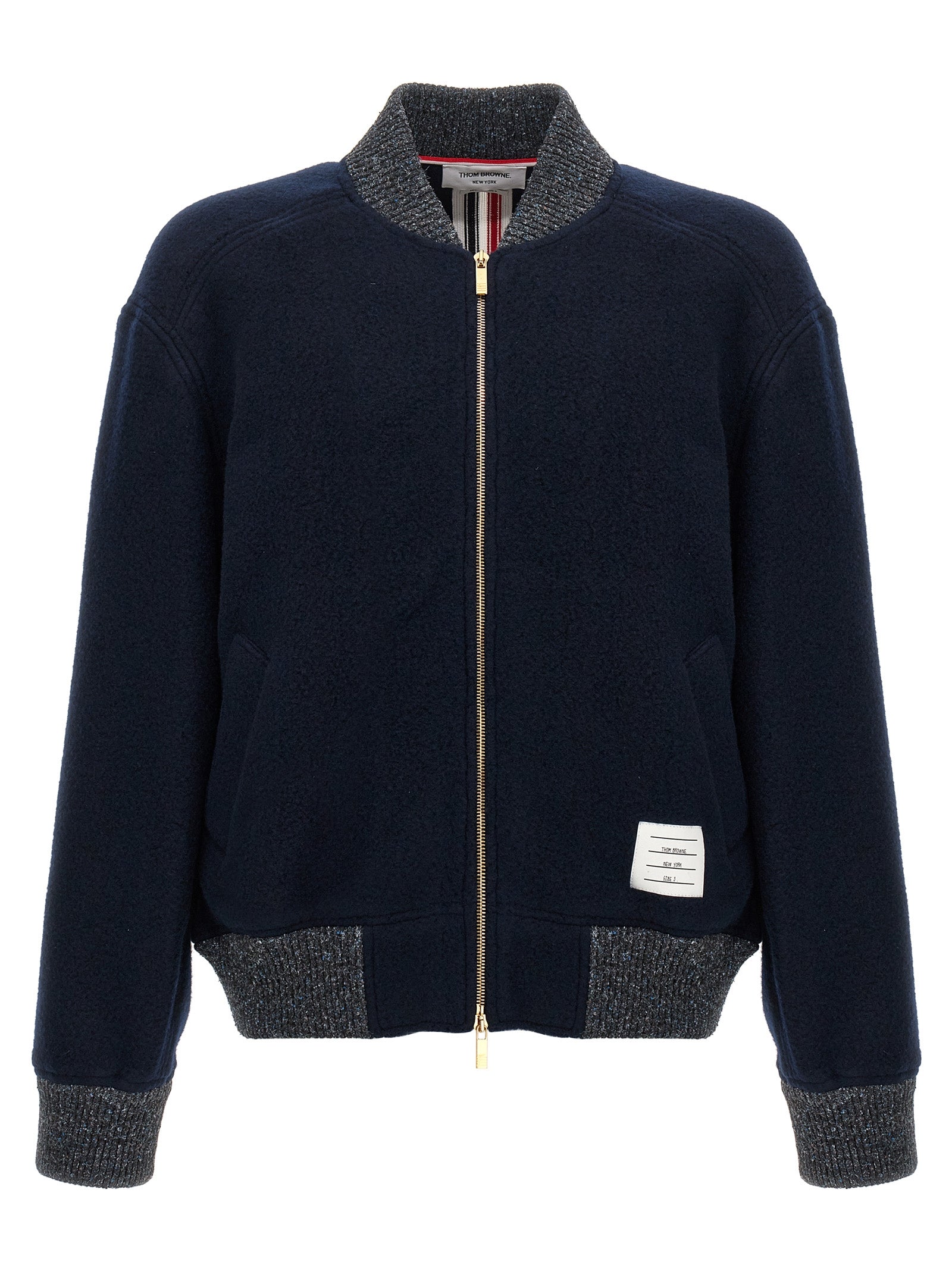 Wool bomber jacket with 'RWB' grosgrain detail at the back, zip closure, pockets, long cuffed sleeves.