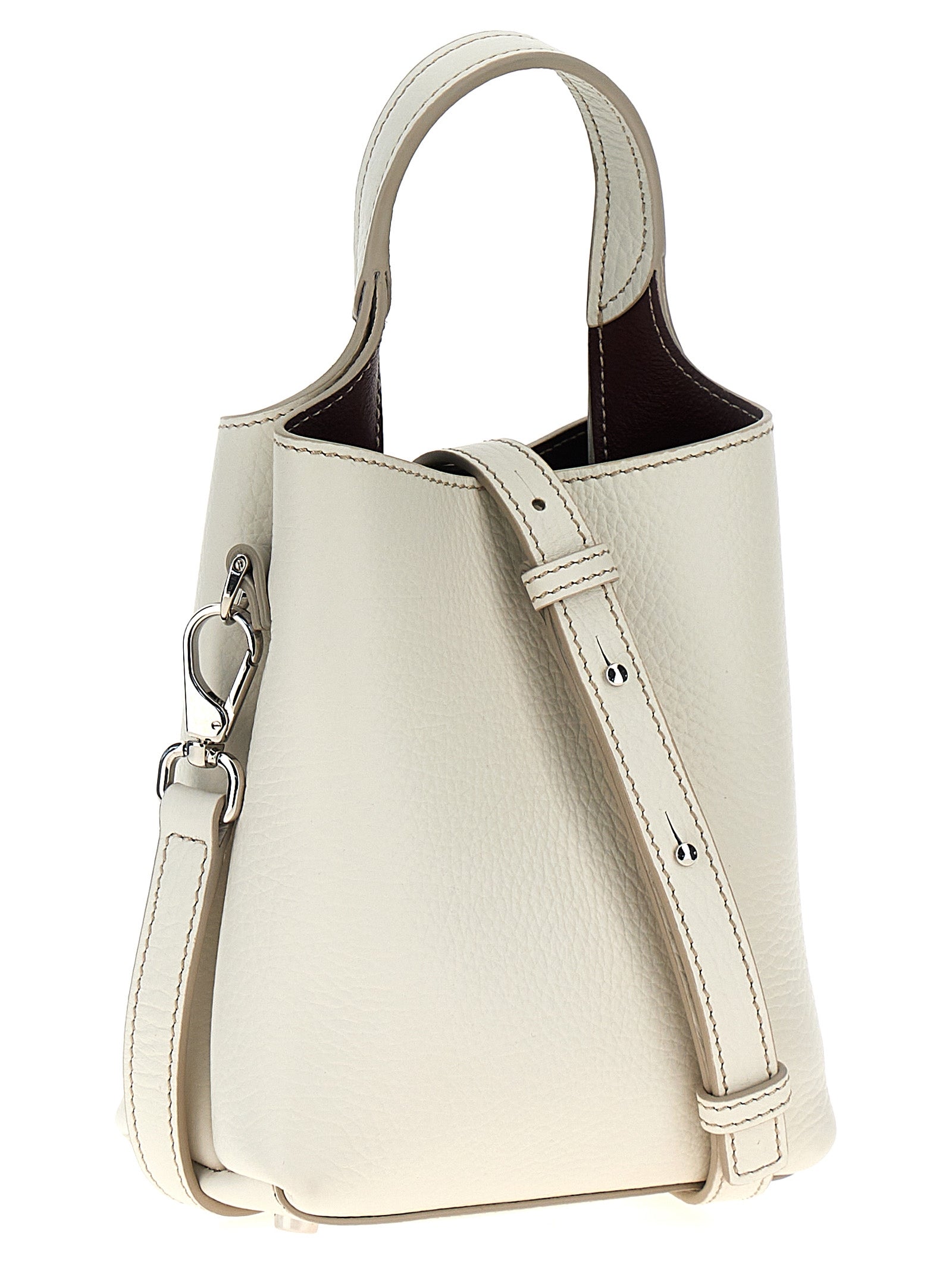 Micro Tod's' hammered leather handbag with embossed logo on the front, removable shoulder strap and a metal Timeless T pendant.