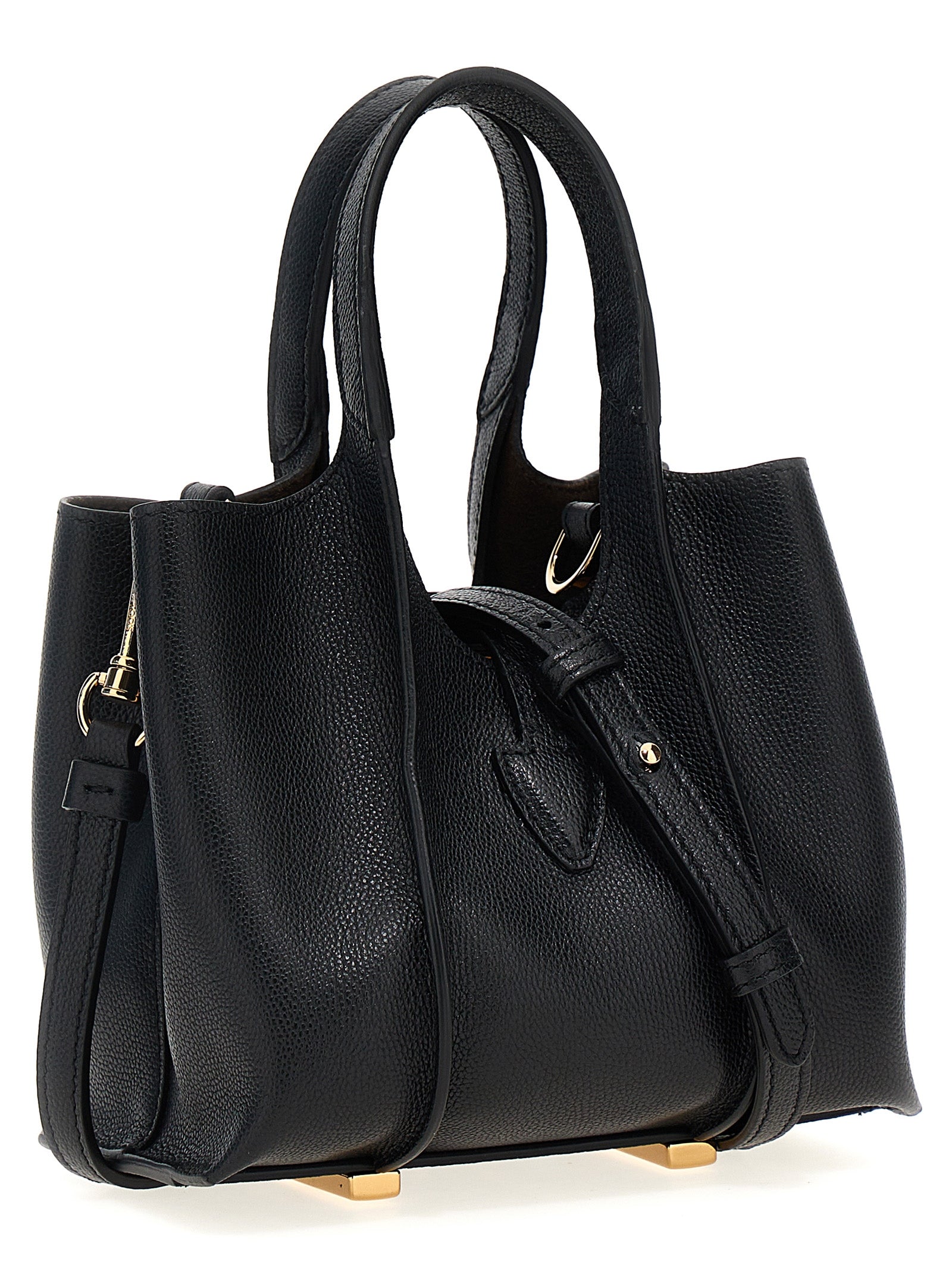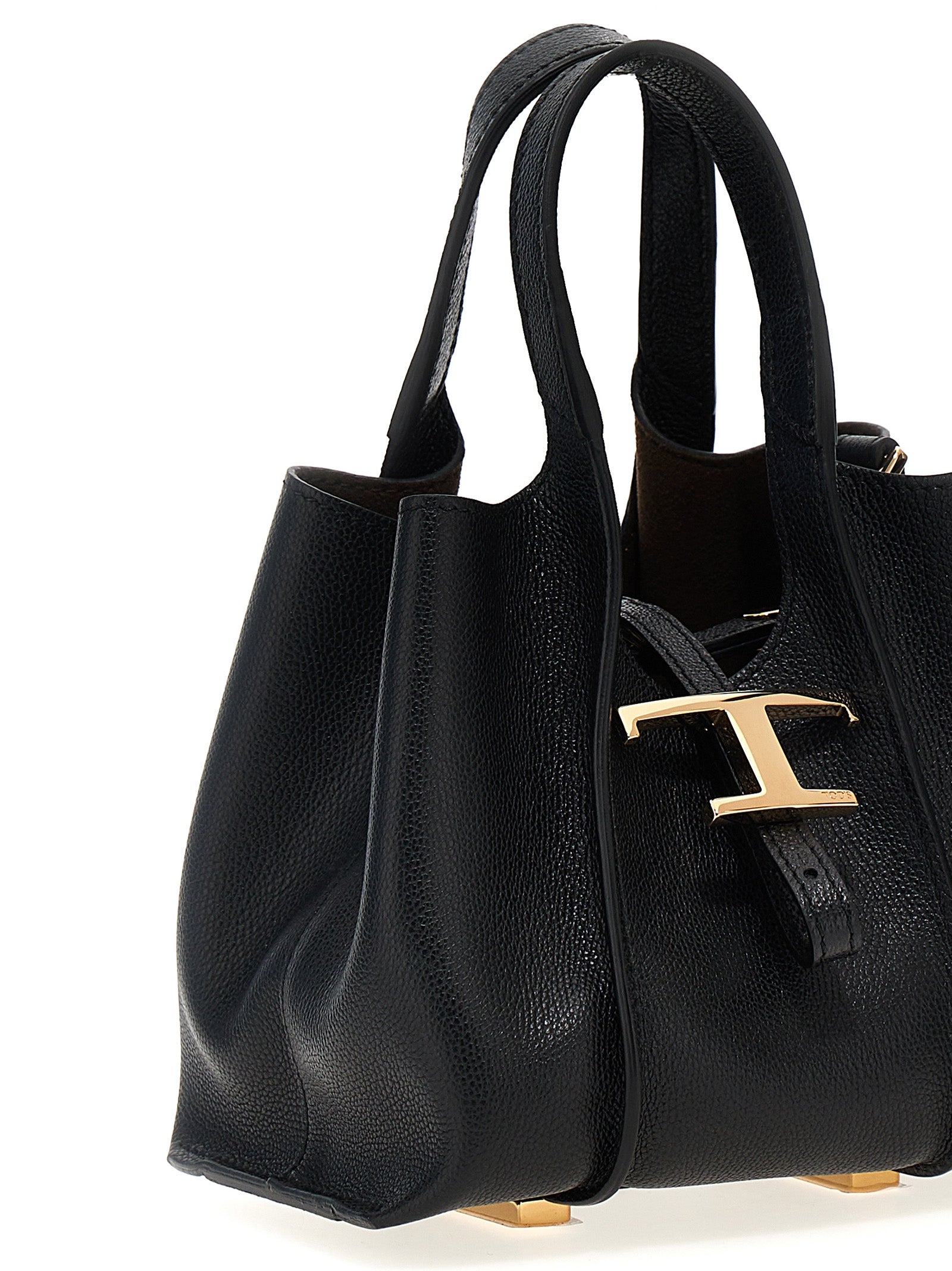 'T Micro' leather handbag with snap button closure, double handle, metal Timeless T pendant, adjustable and removable shoulder strap.