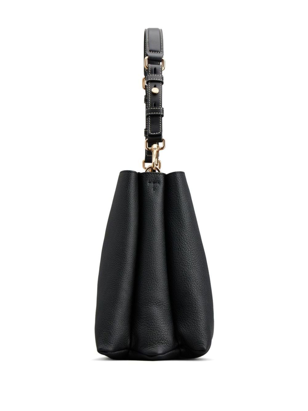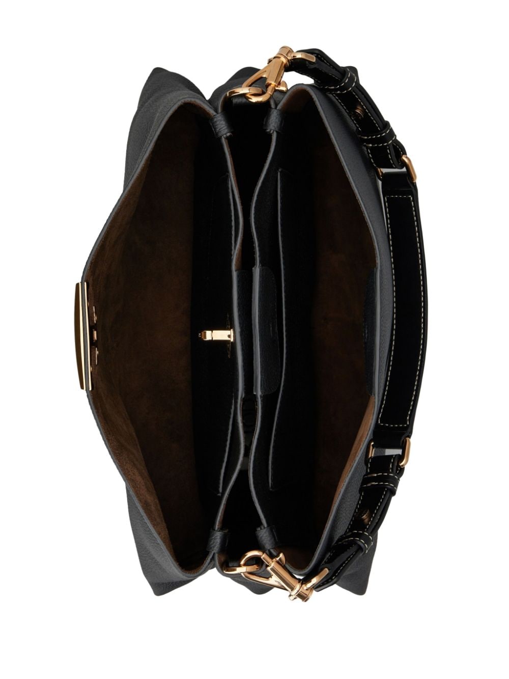 black calf leather pebbled texture gold-tone logo plaque gold-tone logo plaque trapeze body single detachable top handle adjustable detachable shoulder strap twist-lock fastening concealed magnetic fastening partitioned compartment suede lining multiple internal slip pockets