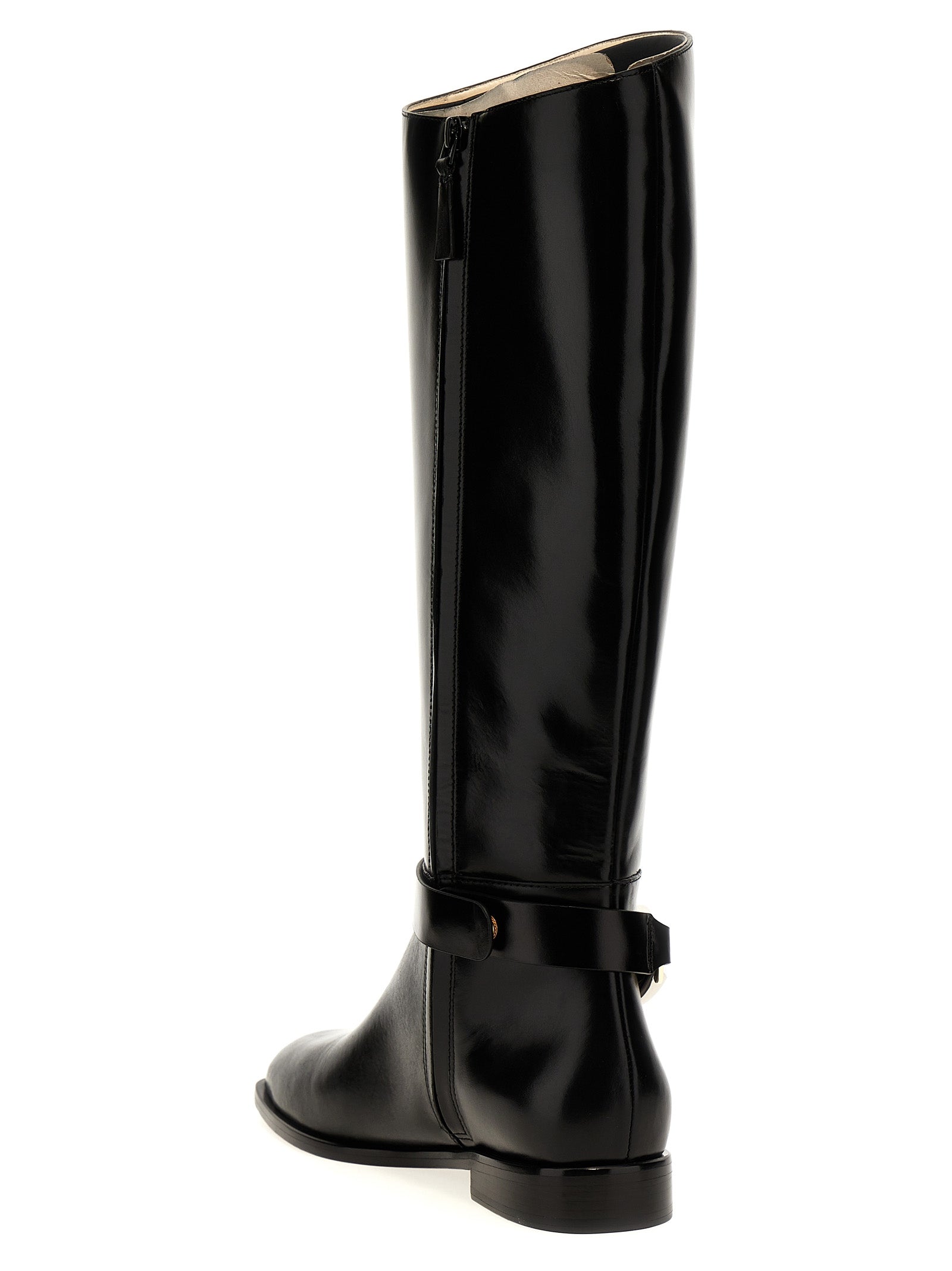 'Jessa Riding Boot' leather boots with side zip closure, ankle strap detail, leather sole.