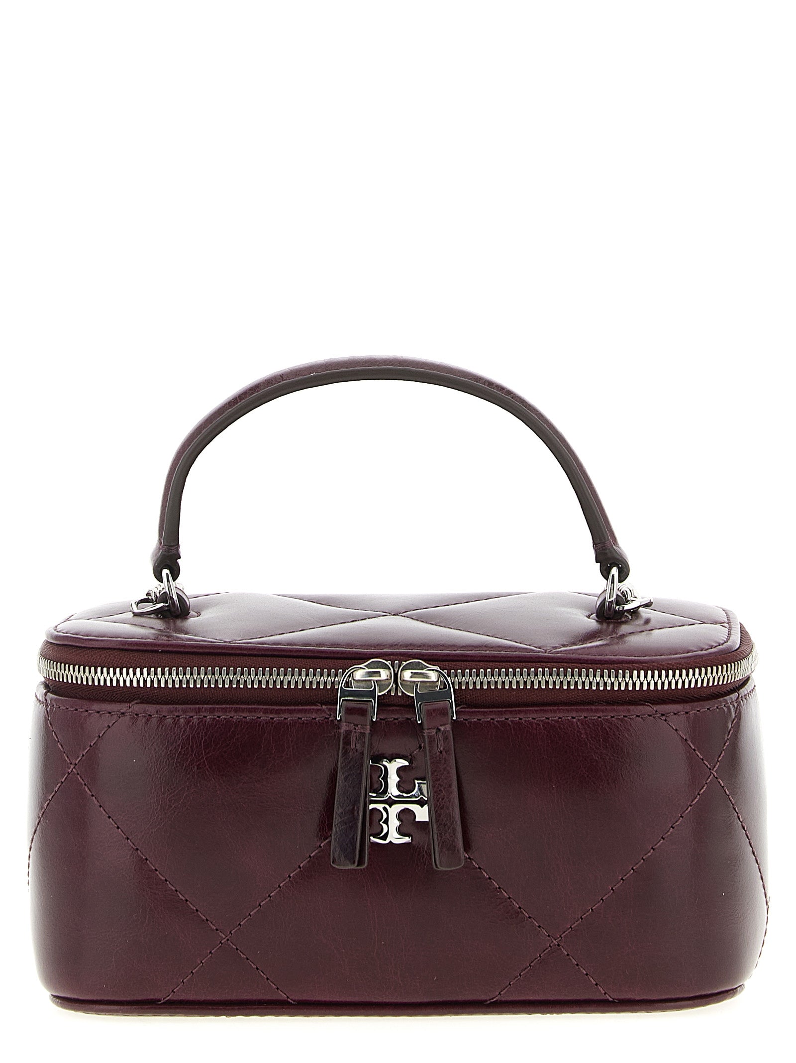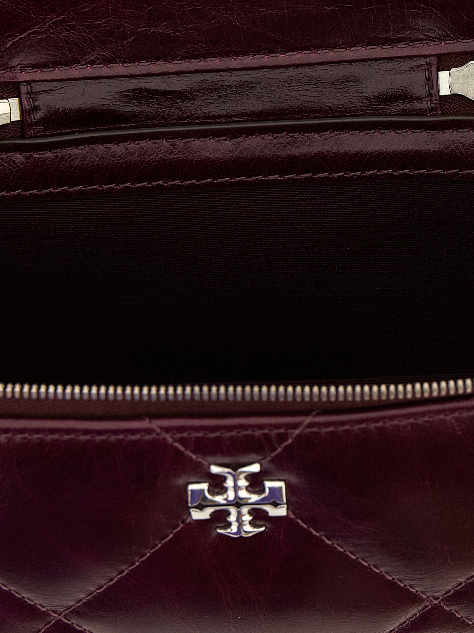 'Kira Diamond' slightly aged diamond quilted leather handbag with matelassé processing, front metal logo, fixed handle, zip closure, chain shoulder strap, suede effect fabric lining.