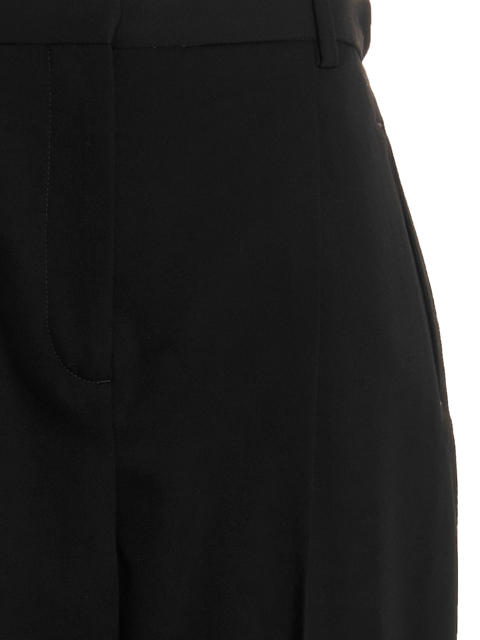Wool twill pants with zip, hook and button closure, pin tucks, pockets. and pockets.