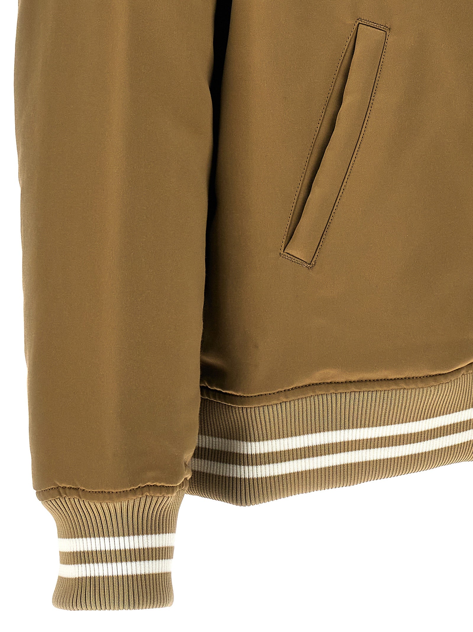 'Keep The Sun In Your Brain' satin bomber jacket with front logo and back print, button closure, pockets, long sleeves with knitted cuffs.