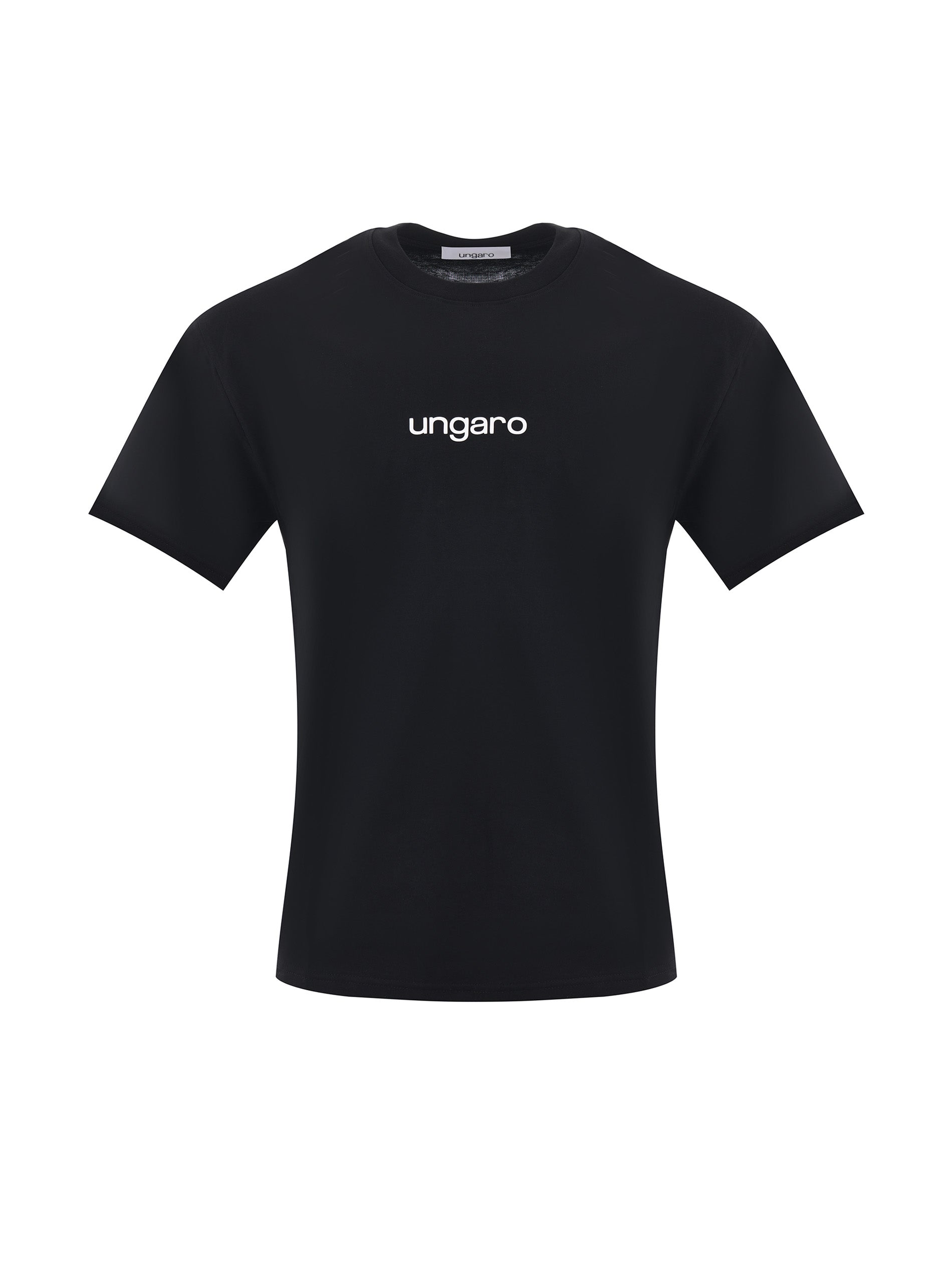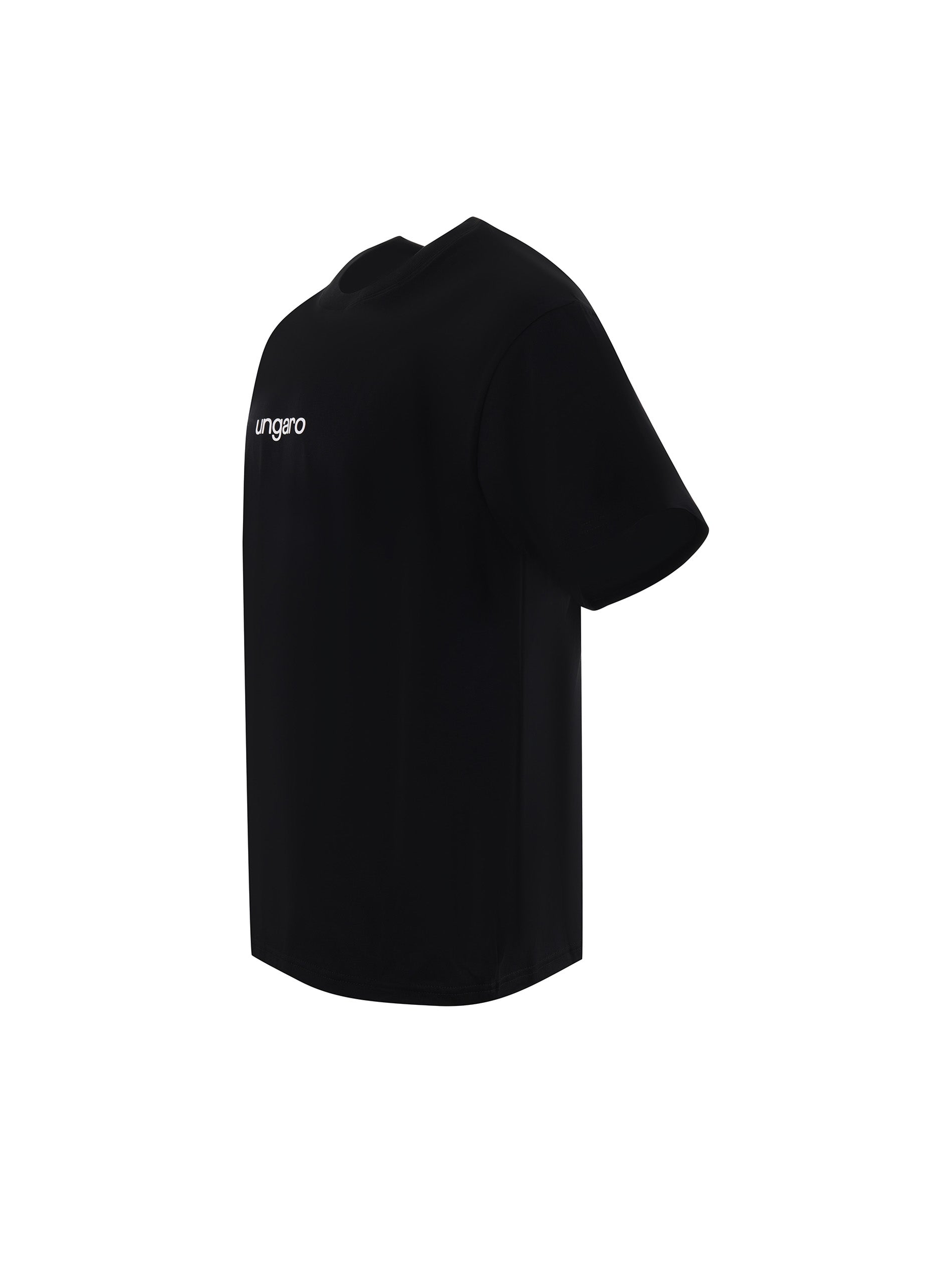 Ungaro T-shirt in black cotton. Crew neck. Short sleeves. Black embossed front logo. Print on the back. Measurement in photo M 100% cotton
