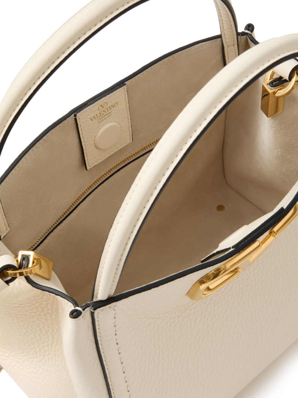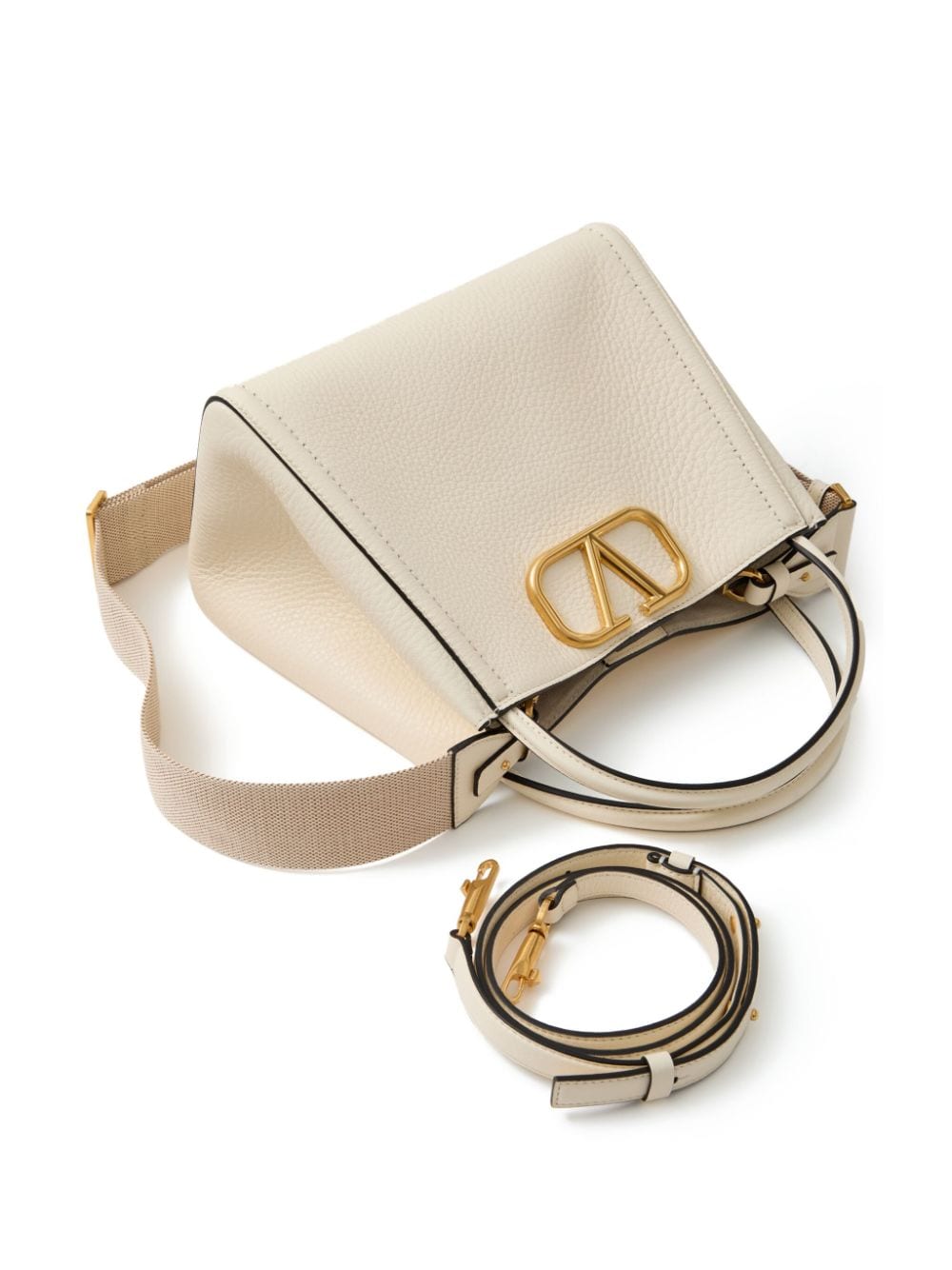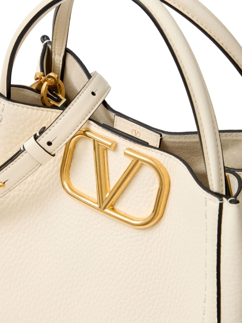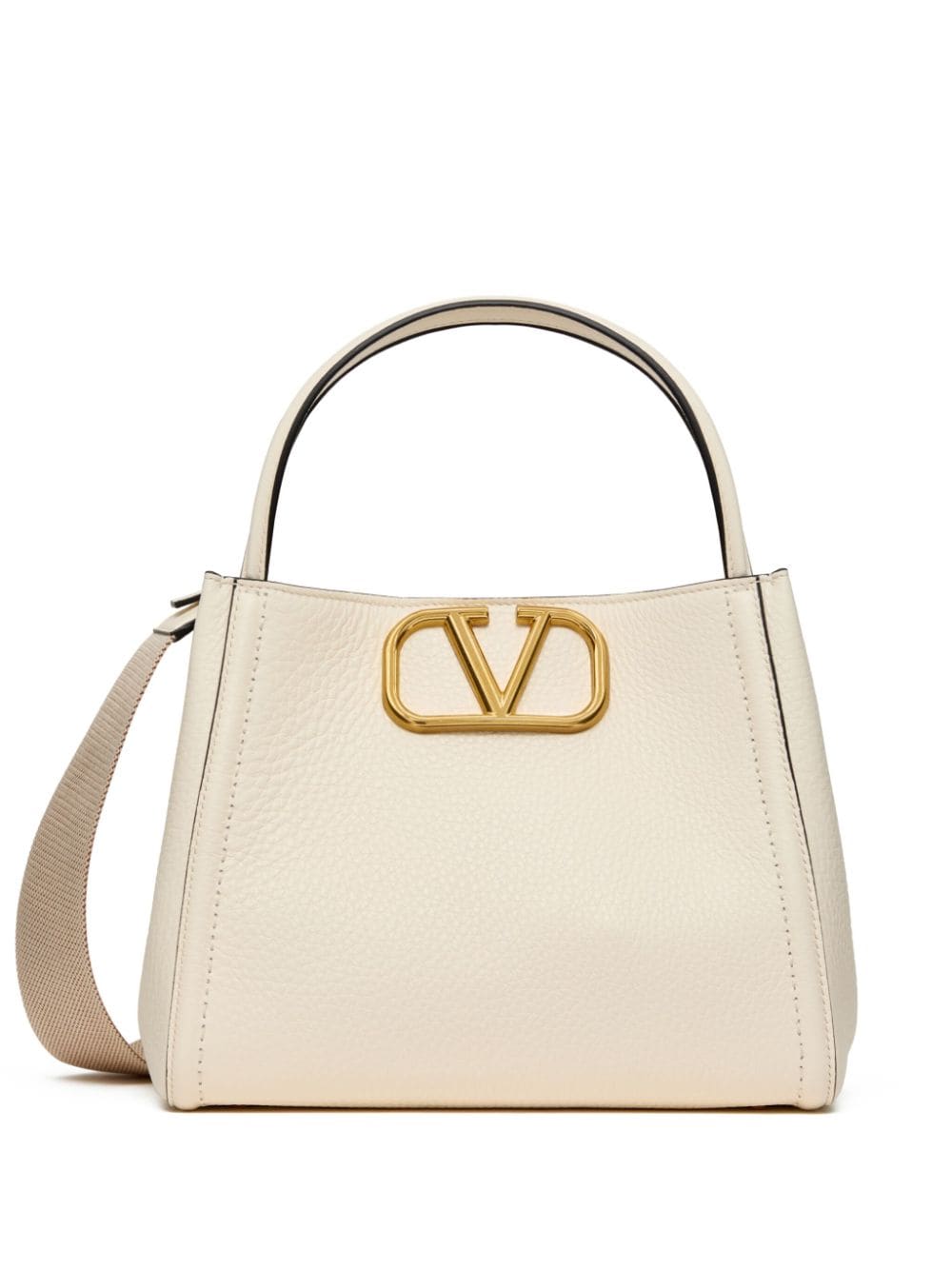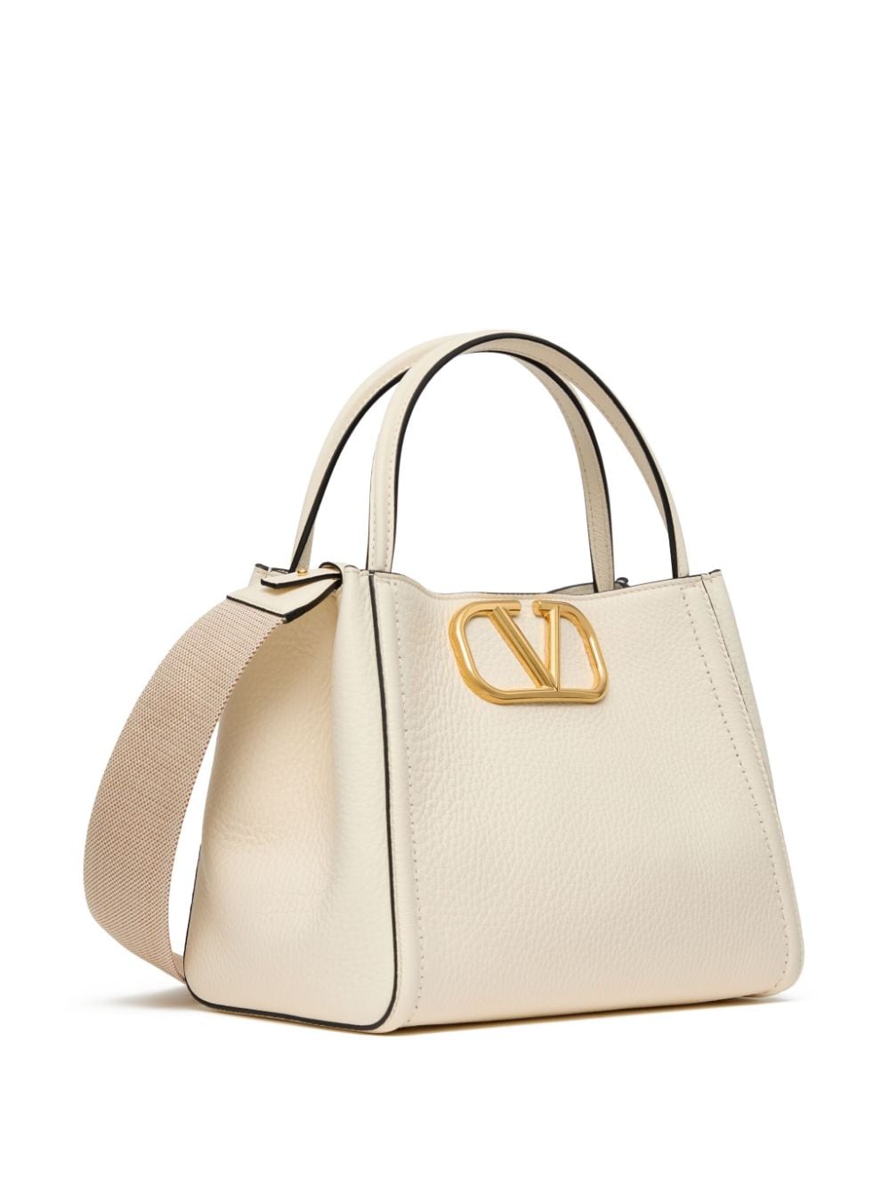 cream white calf leather VLogo Signature detachable shoulder strap two top handles magnetic fastening main compartment