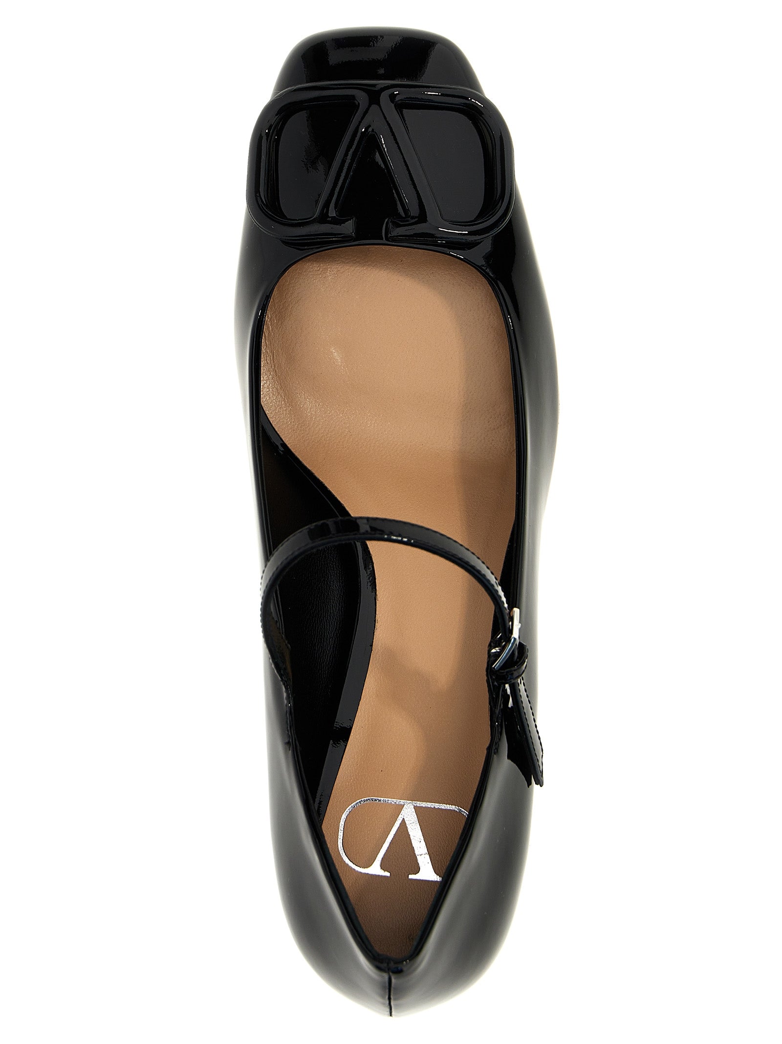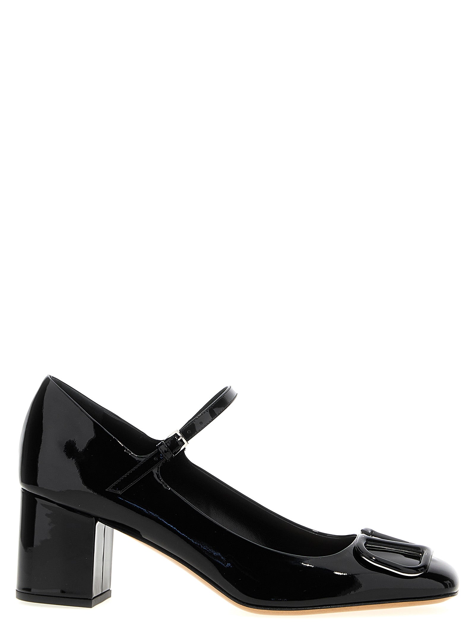 Mary Jane in patent leather with tone-on-tone front 'VLogo Signature' application, adjustable strap, wide heel.