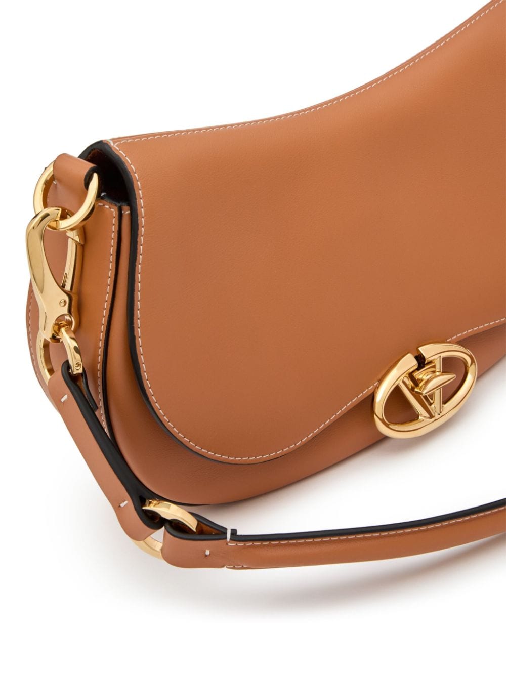 brown calf leather VLogo Signature contrast stitching single top handle detachable shoulder strap foldover top main compartment internal zip-fastening pocket