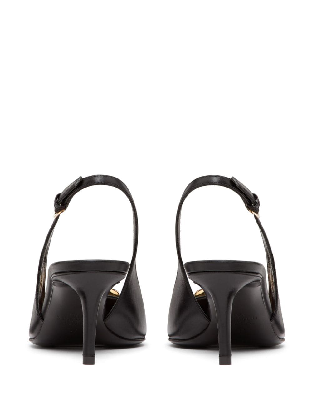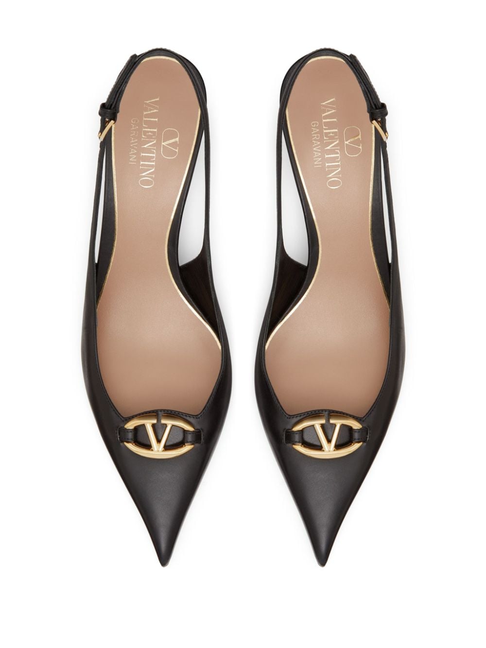 black calf leather smooth grain VLogo Signature pointed toe buckle-fastening slingback strap branded leather insole mid heel leather outsole