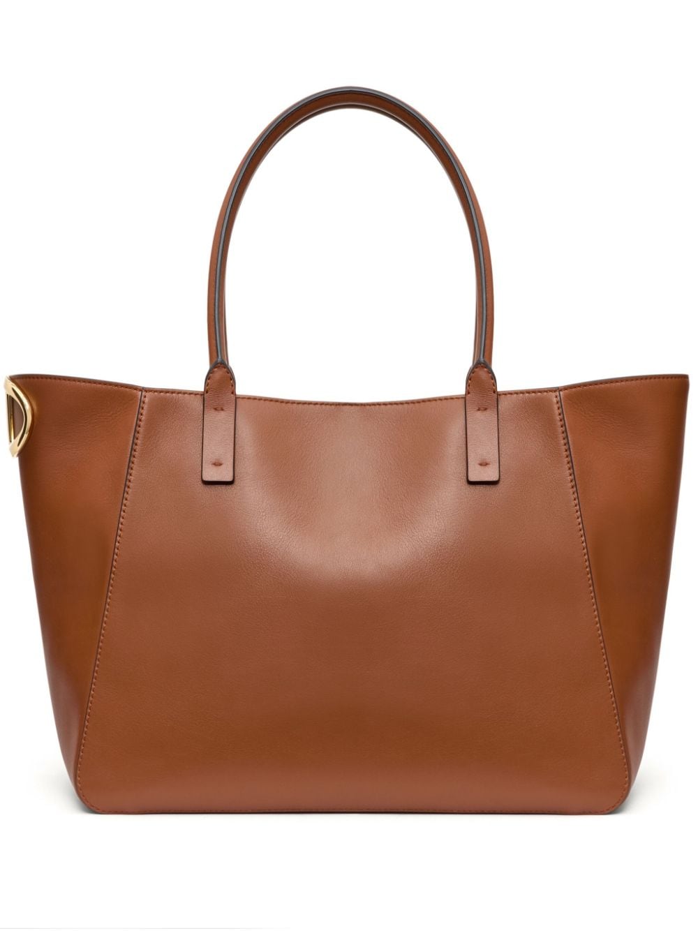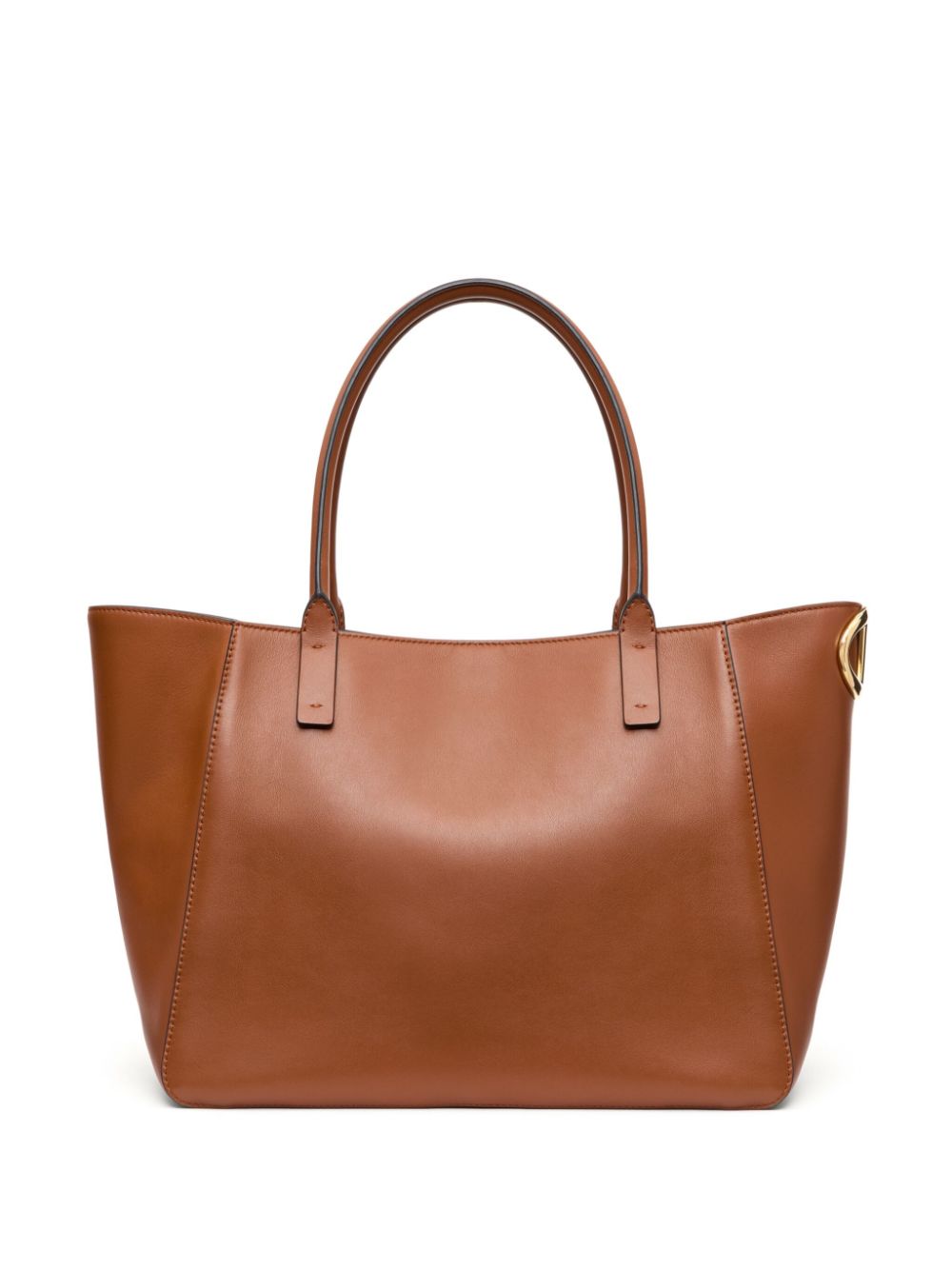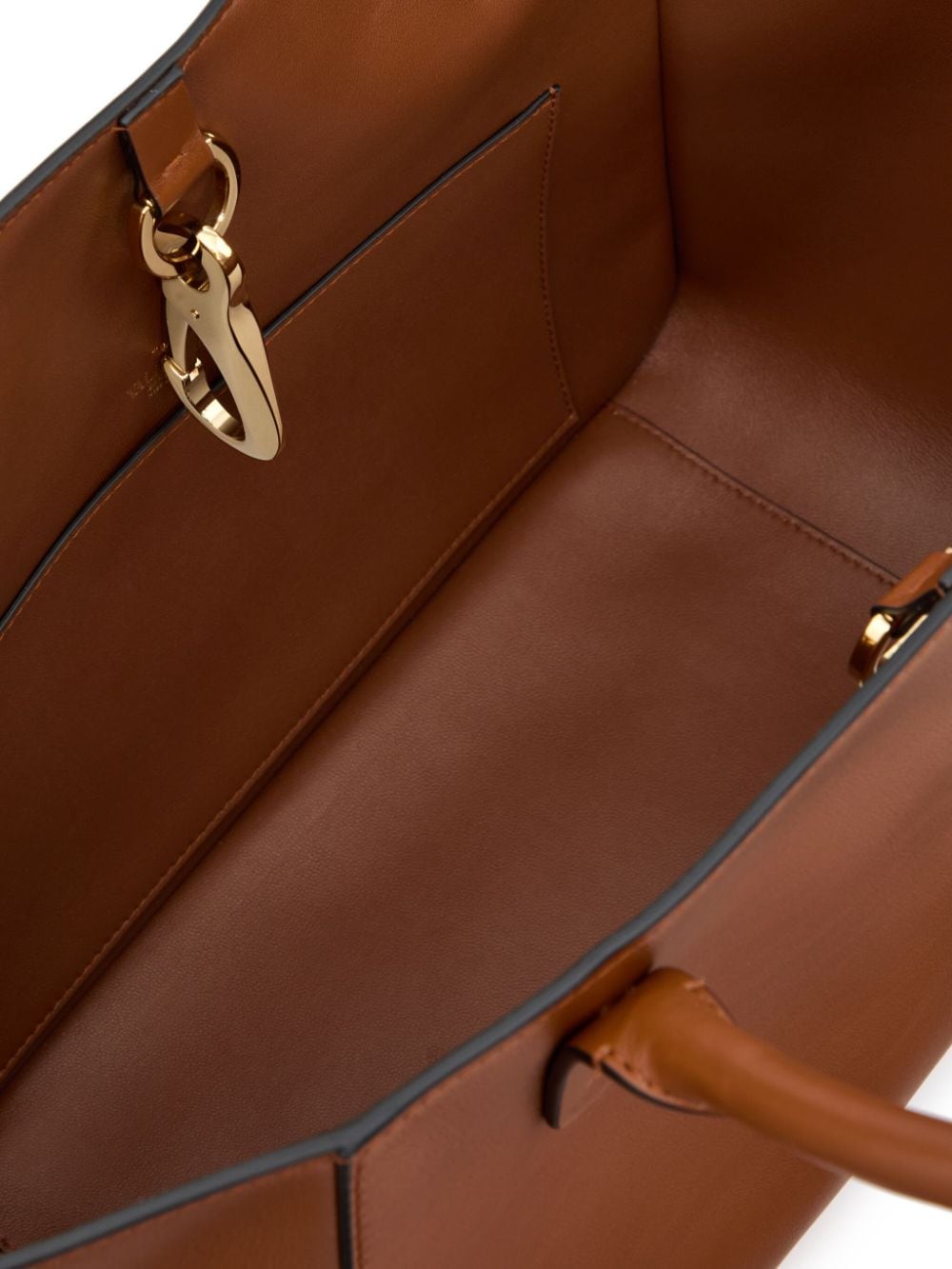 cognac brown calf leather VLogo Signature two rolled top handles open top main compartment internal slip pocket gold-tone hardware