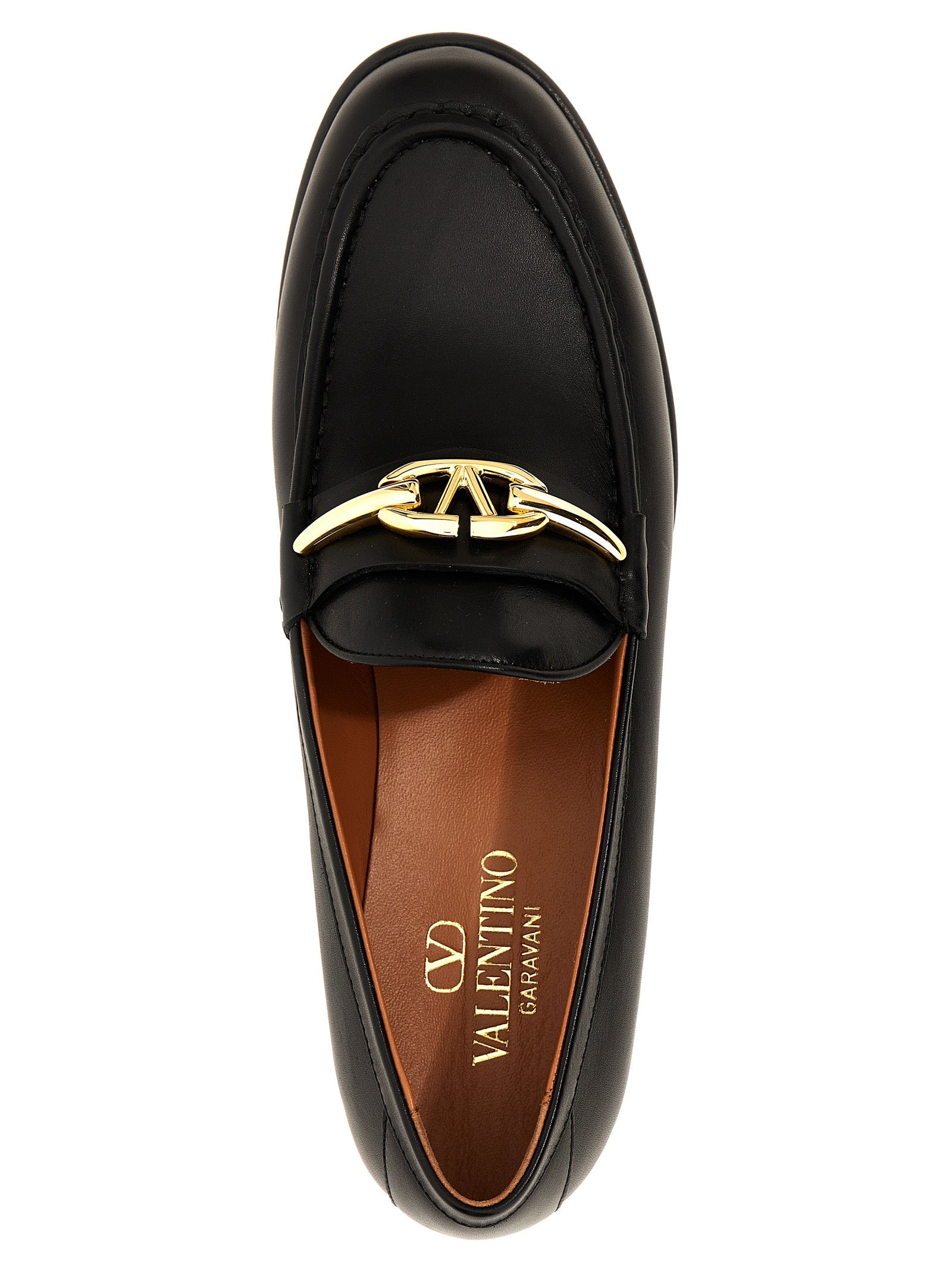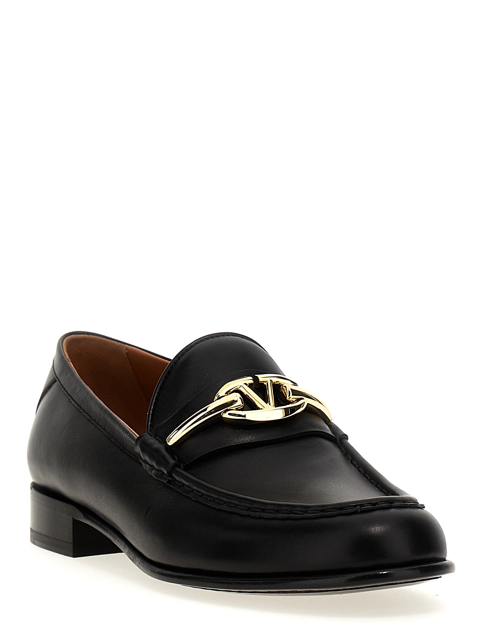'VLogo The Bold Edition' leather loafers with gold metal detail, leather sole.