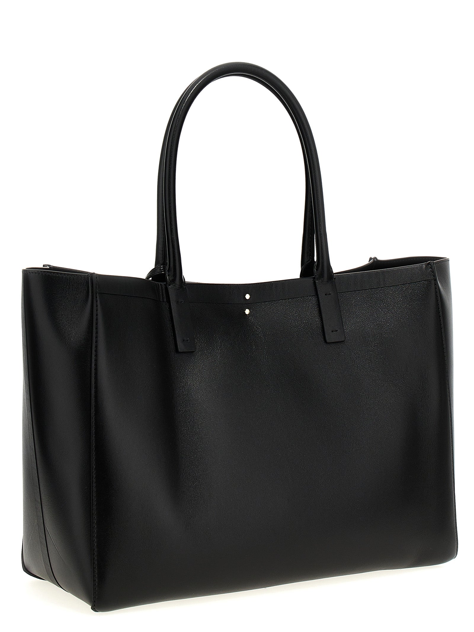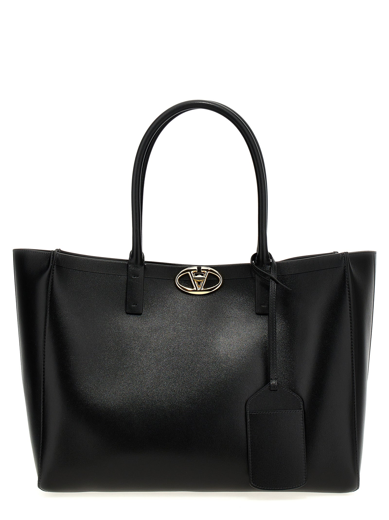 'Medium Tote VLogo' smooth leather shopping bag, double handle, metal logo hook closure.