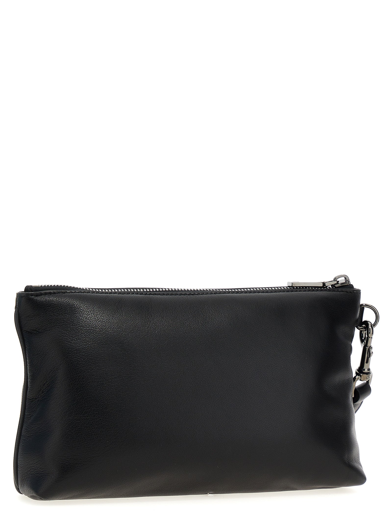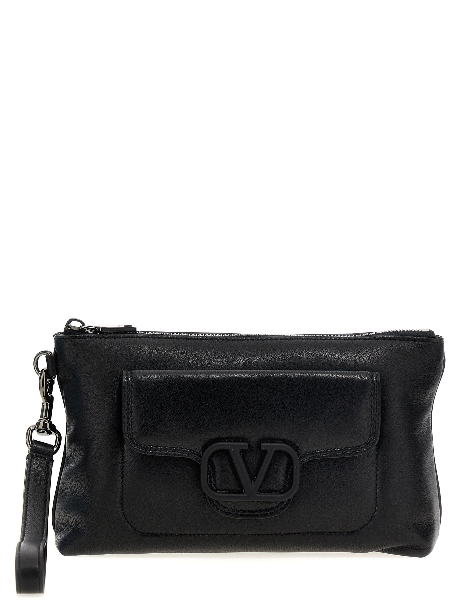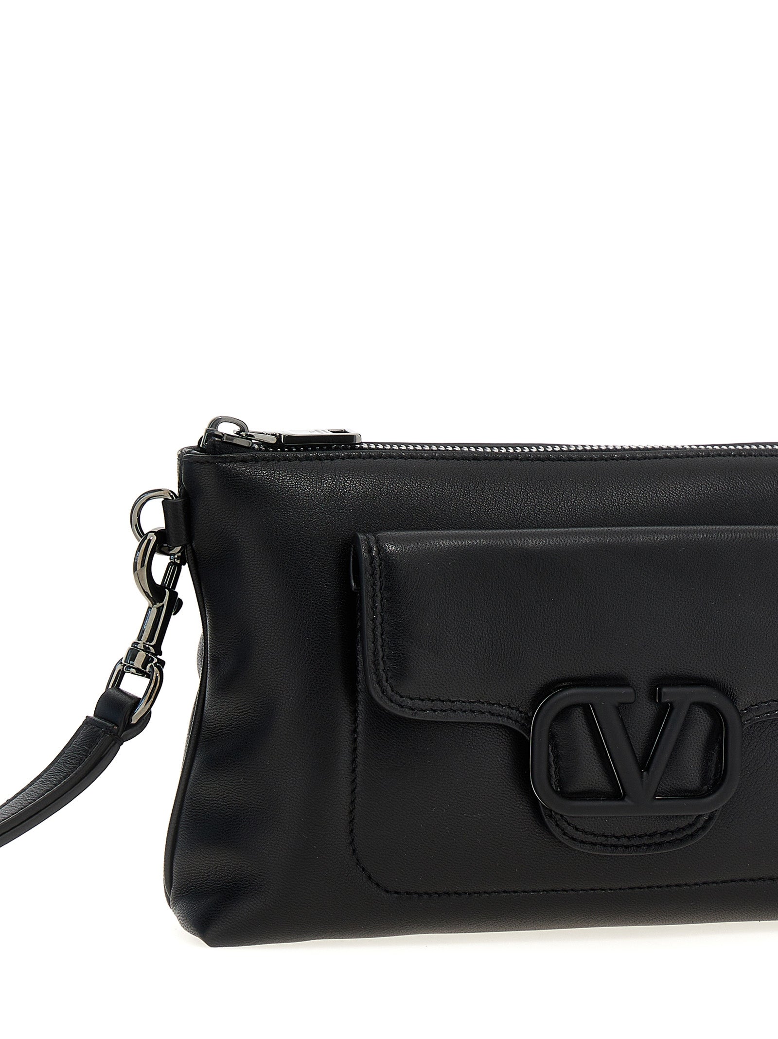 Nappa clutch bag, zip closure, outer pocket with flap closure, tonal 'VLogo Signature' detail, removable wrist handle.