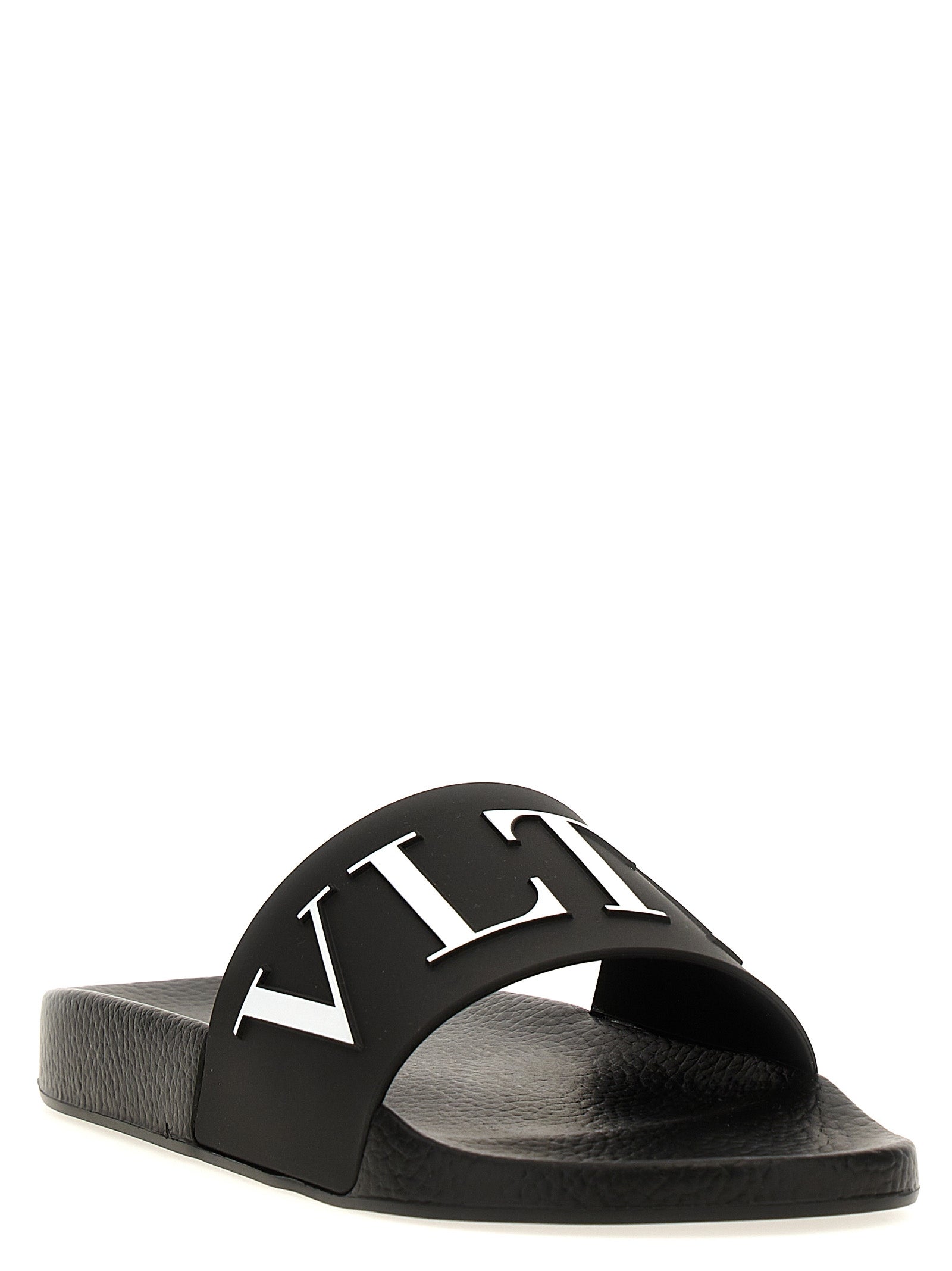 'VLTN' rubber slides with contrasting logo.