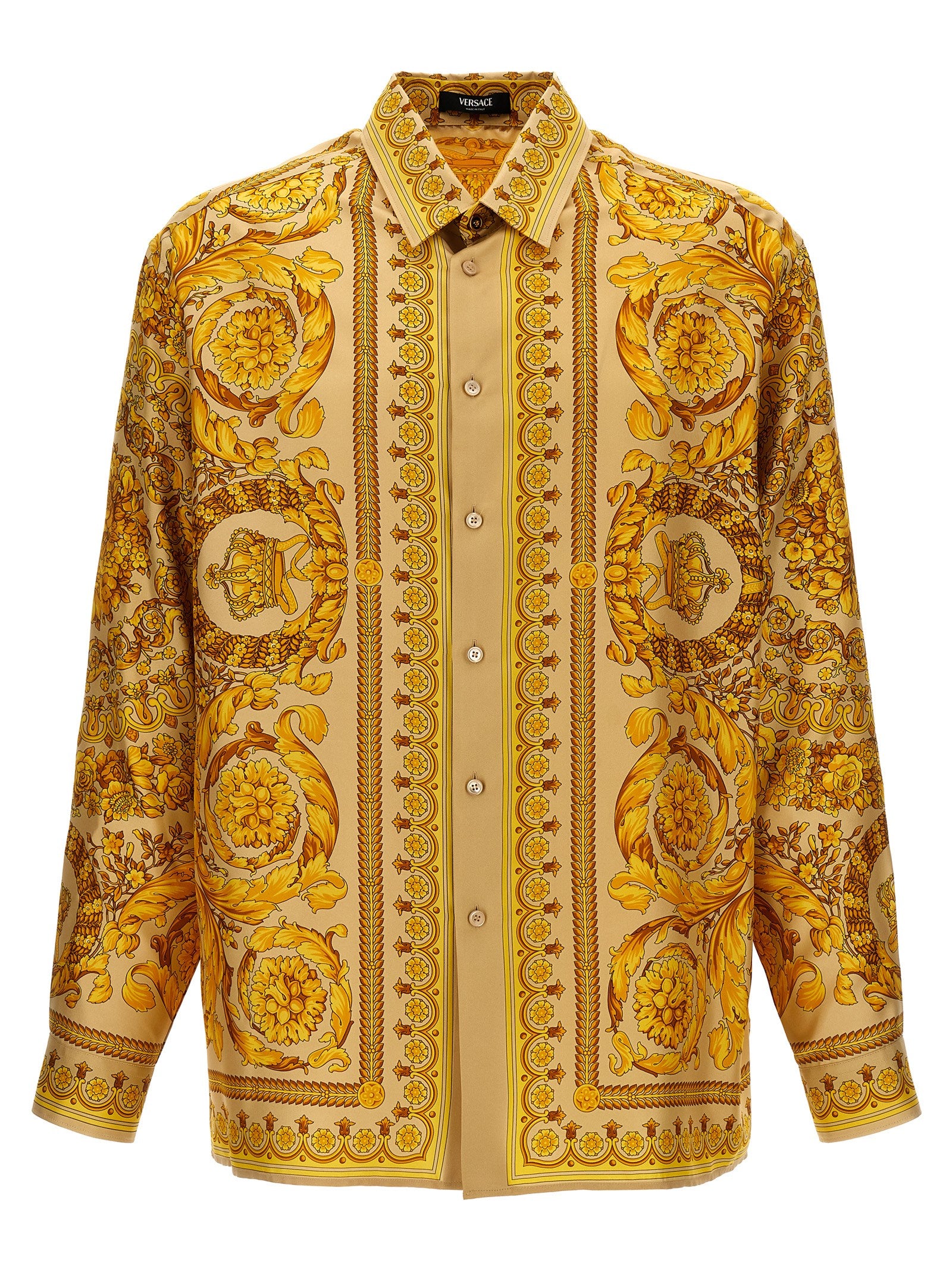 'Barocco' silk shirt with all-over pattern, button closure.