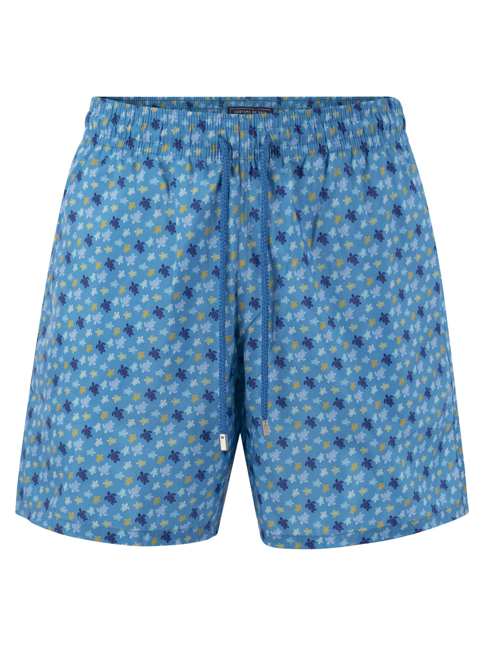 A practical swimming costume made of recycled polyester with an elastic waistband and drawstring for even more comfort. - Ultra-light material - Elasticated waistband with drawstring and zamak ends with Vilebrequin engraving - Two side pockets - Two back loops -Swimsuit can be folded completely into the back pocket - Men's Micro Ronde Des Tortues Rainbow swimming shorts DESIGNER ID: MAHAJ139 398