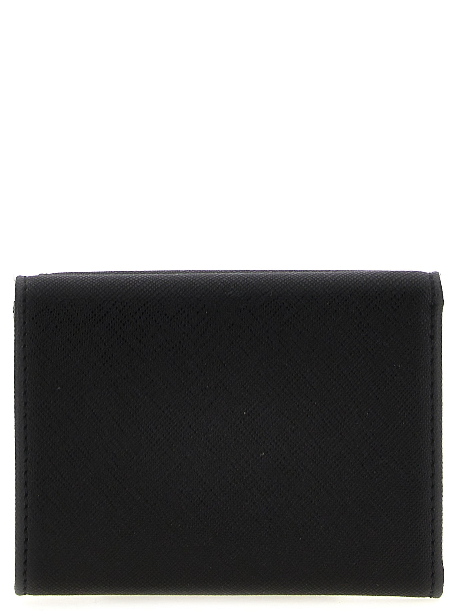 'Small Flap Purse' wallet in Saffiano-effect fabric, front metal Orb logo pocket, snap button closure, snap button closure.