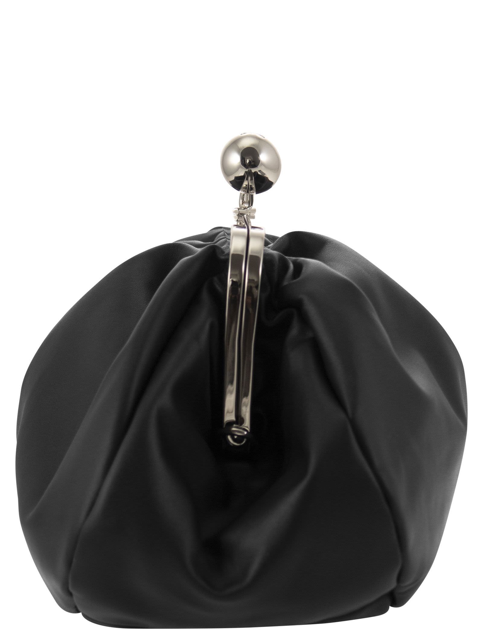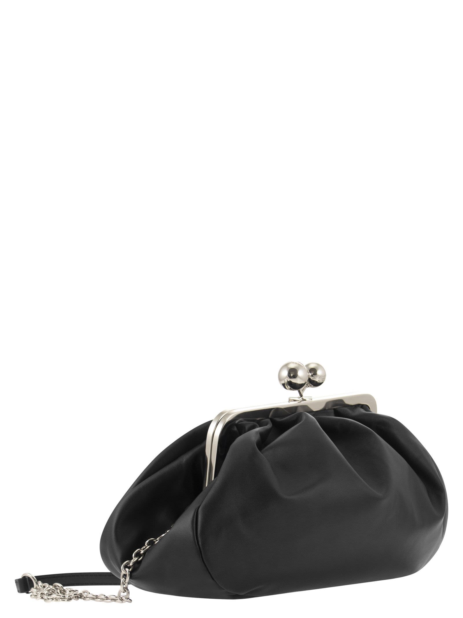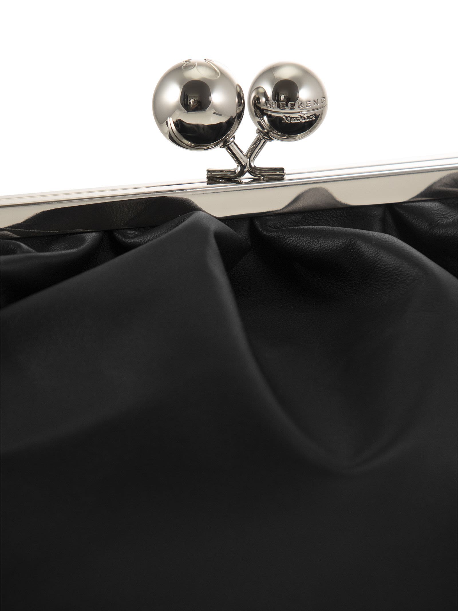 Pasticcino Bag Medium, the super clutch to add a personal and charming touch to your everyday style. Made of soft, shiny nappa leather, with a suede-effect fabric interior. The removable double shoulder strap, in leather and chain detail, allows the bag to be worn cross-body or hand-held for a versatile and trendy outfit. Thanks to its unstructured shape and deliberately oversized proportions, it adapts to your every need. - Metal closure with personalised maxi spheres - Weekend Max Mara - Shiny nickel-coloured metal finishes DESIGNER ID: 2525516194600 007