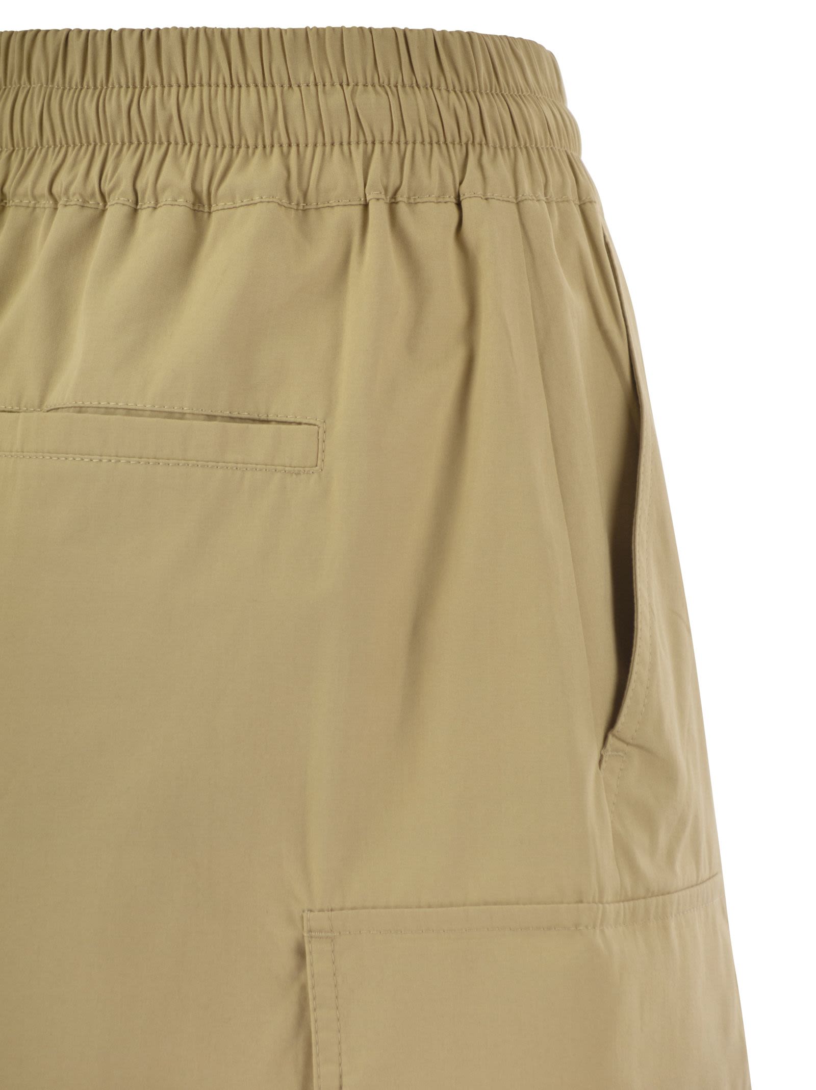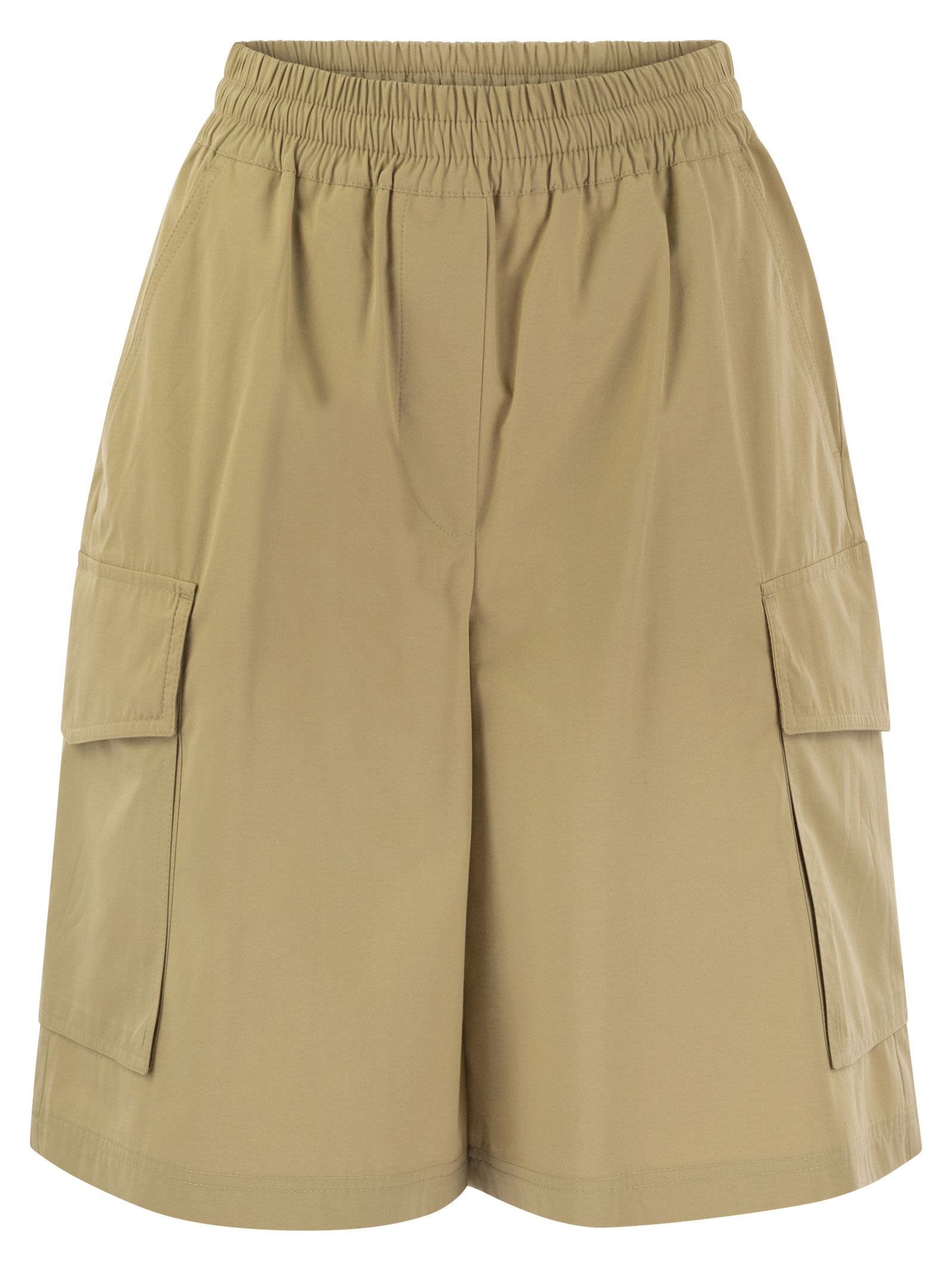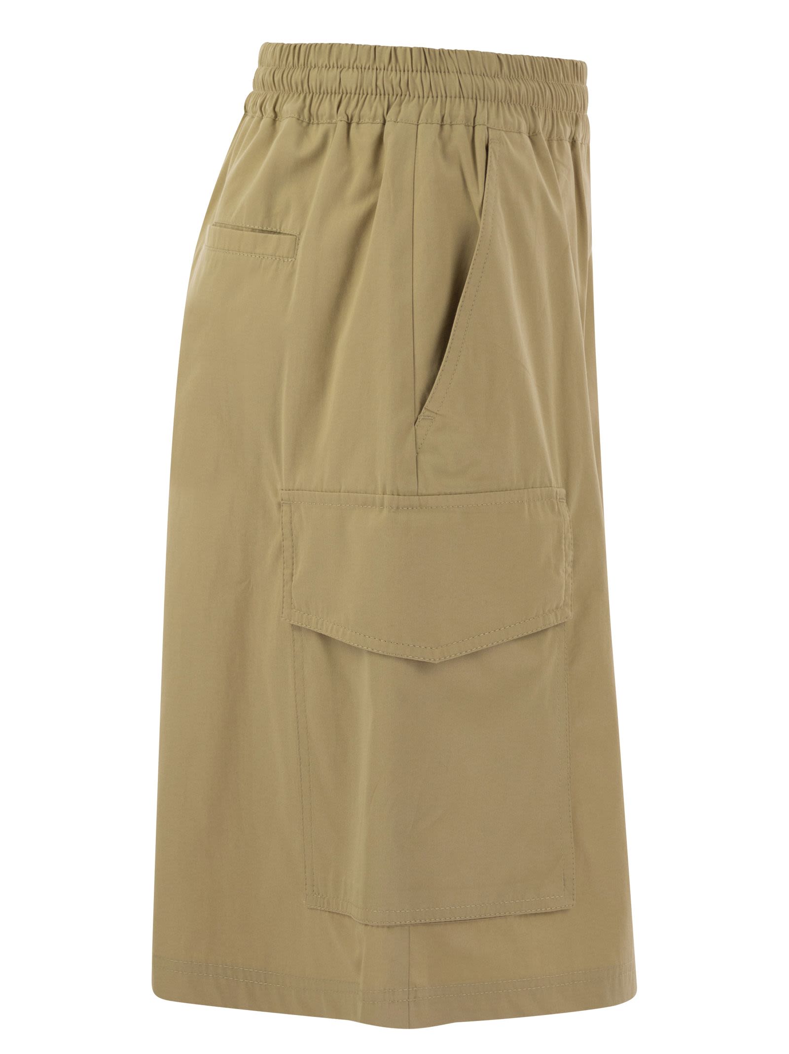 Safari-style Bermuda trousers, made of heavy cotton poplin. They feature an elasticated waistband with adjustable inner drawstring, cargo flap pockets on the leg, French pockets on the hips and welt pockets on the back. - Cargo pockets - Elasticated waistband - Above-the-knee length DESIGNER ID: 2415141042600 012
