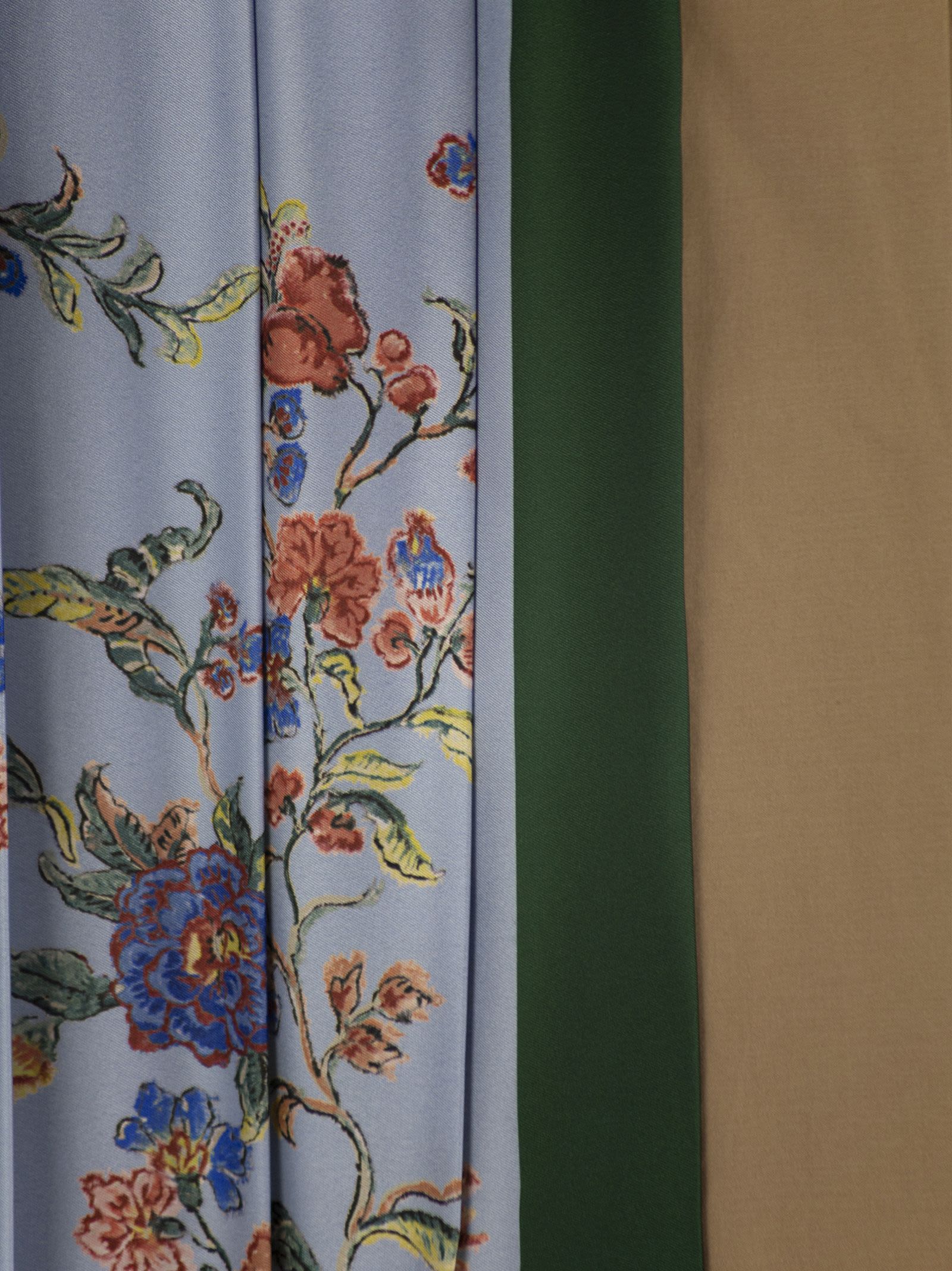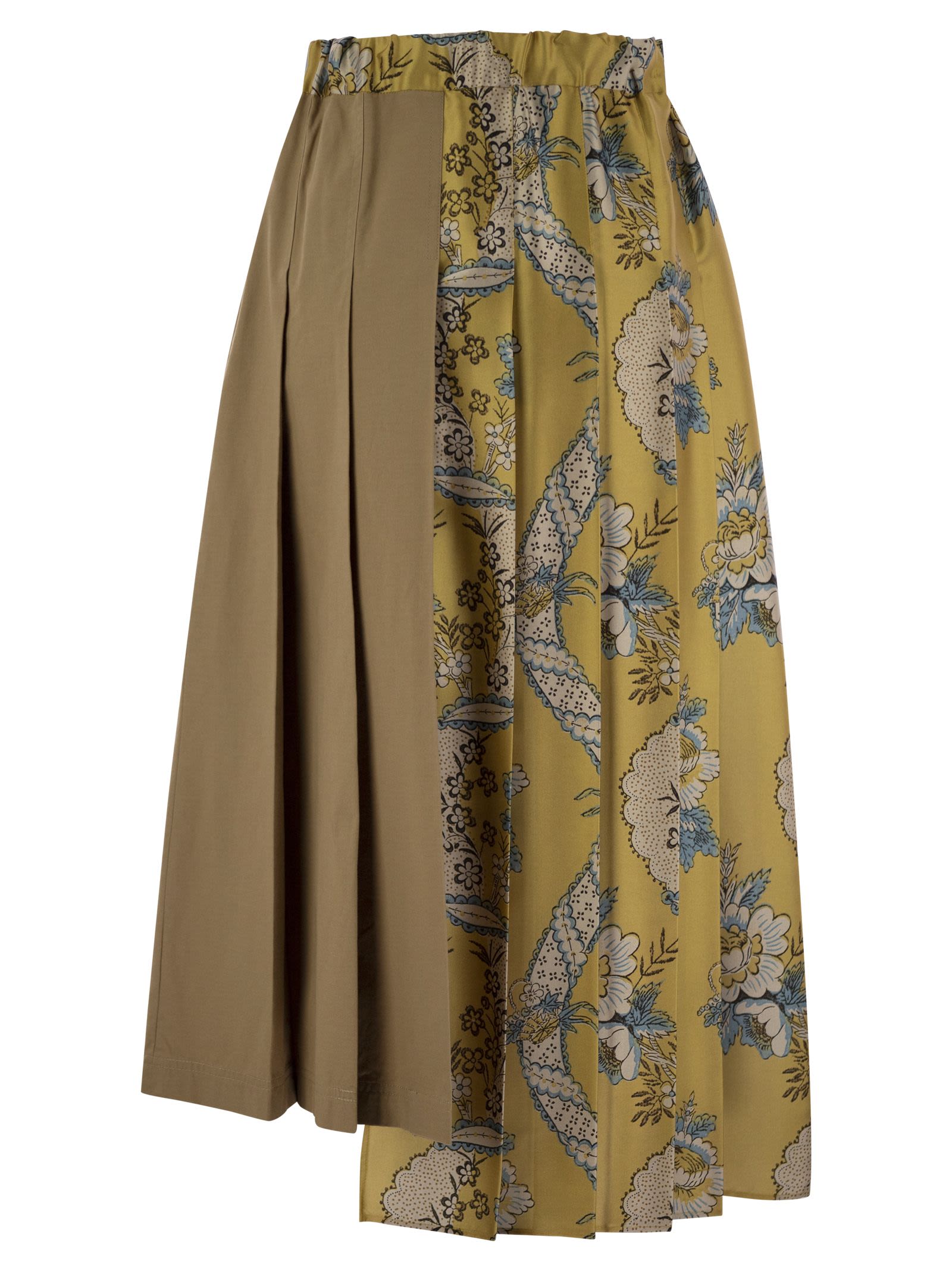 Wide-line midi skirt made of heavy washed pure cotton canvas with a fitted pleat motif. The insert in fine printed twill with pleated motif and central slit at front and back creates movement and a slight asymmetrical effect at the bottom. Finished with inset pockets at the hips and a comfortable elasticated waist. - Side zip fastening - Printed insert with pleated motif - Wide line DESIGNER ID: 2425106011600 001