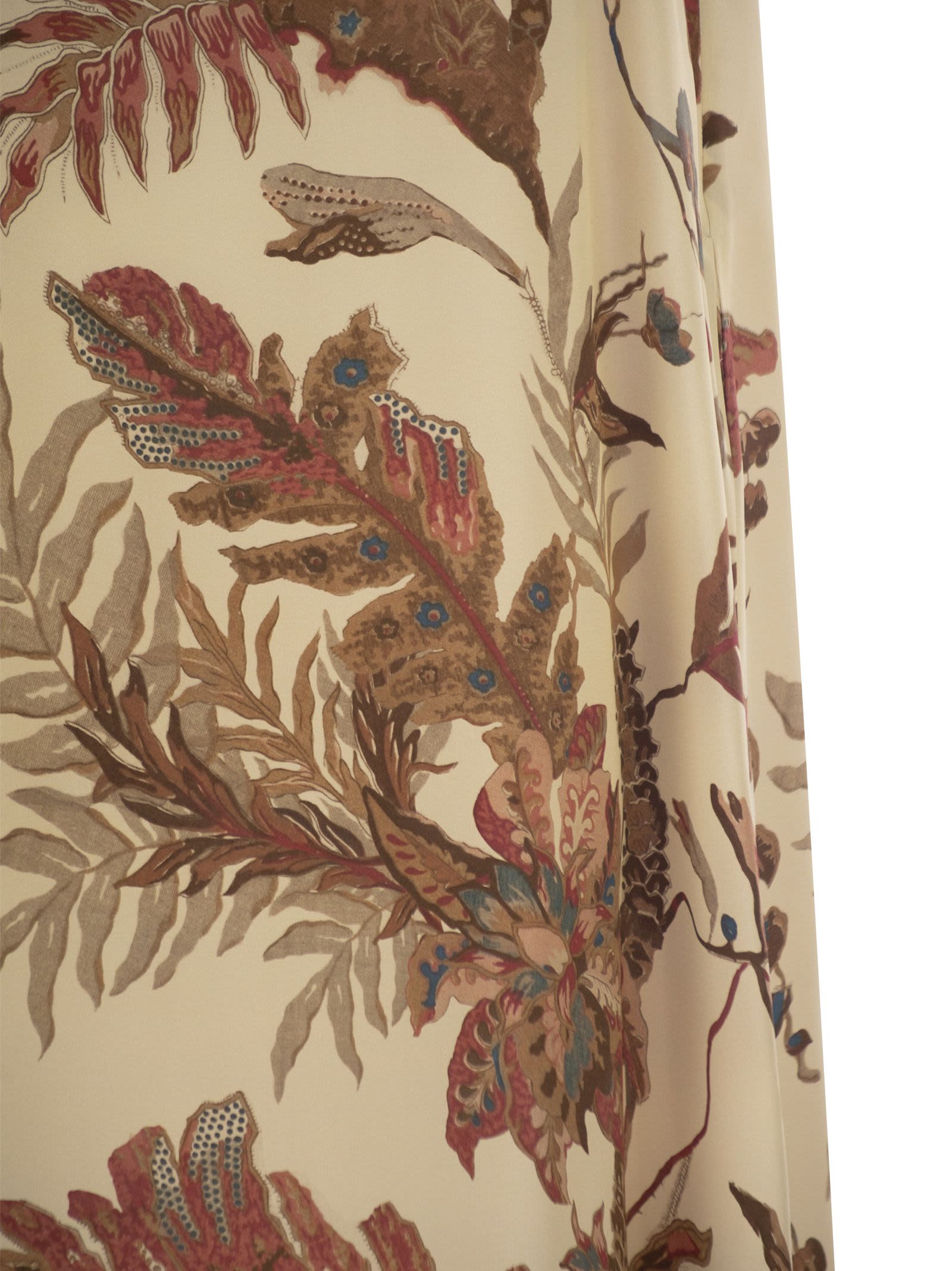 T-shirt-style midi dress made of precious printed pure silk crêpe de Chine, characterised by a straight, flowing silhouette with a round neckline and short sleeves. Finished with pockets inserted at the hips. - Drop fastening with small button on the back - Short sleeves - Flower pattern DESIGNER ID: 2525226111600 003
