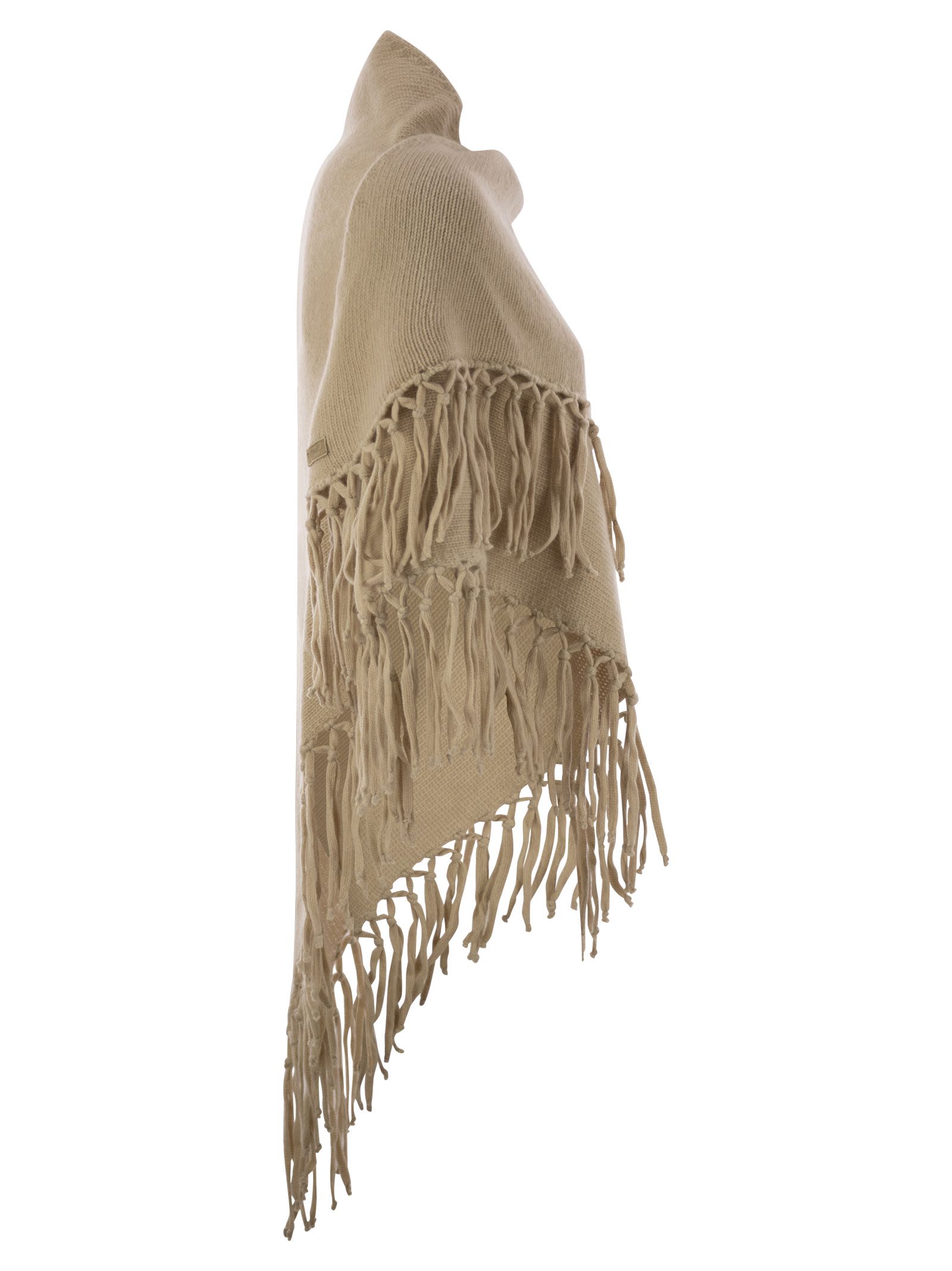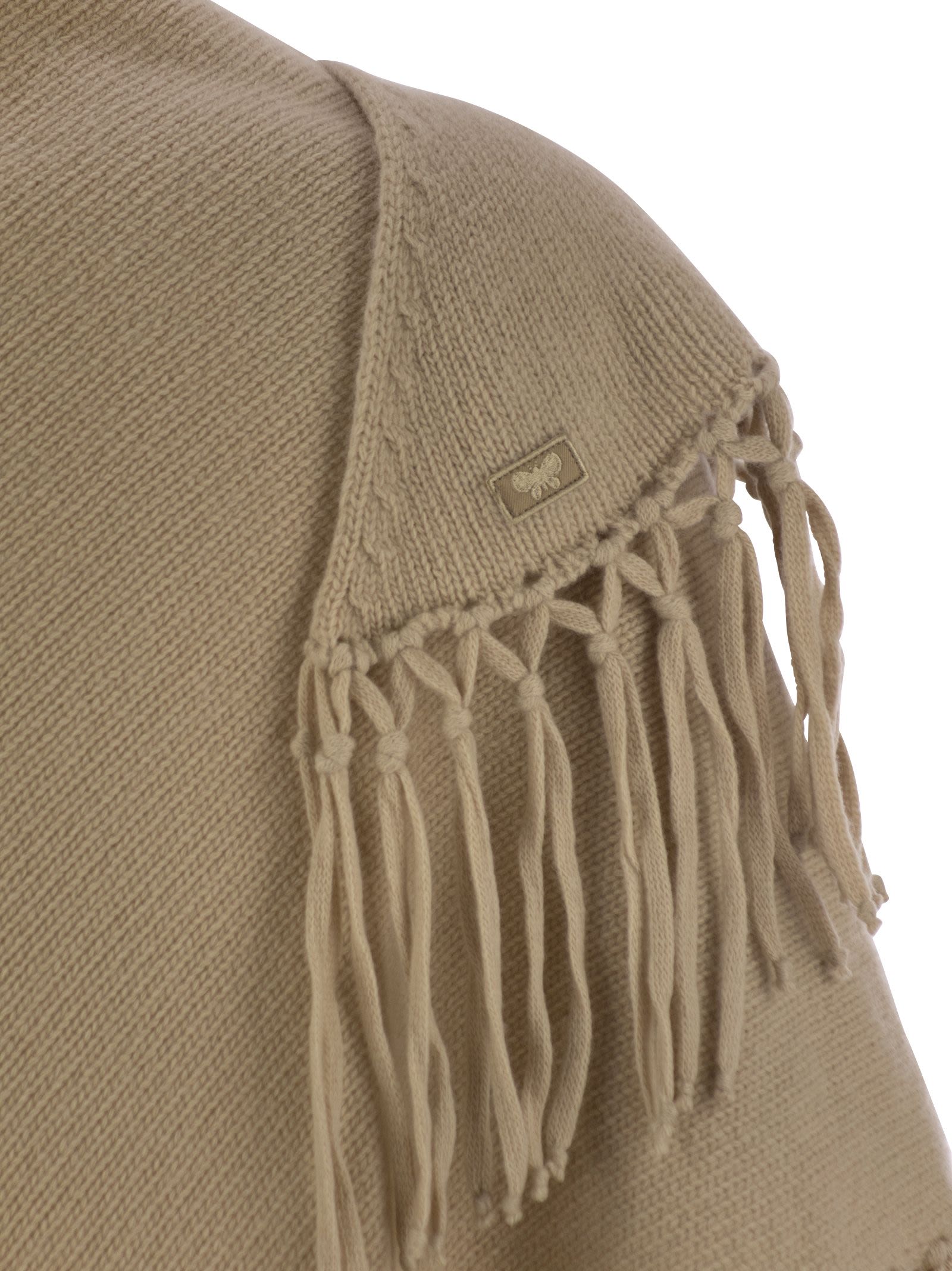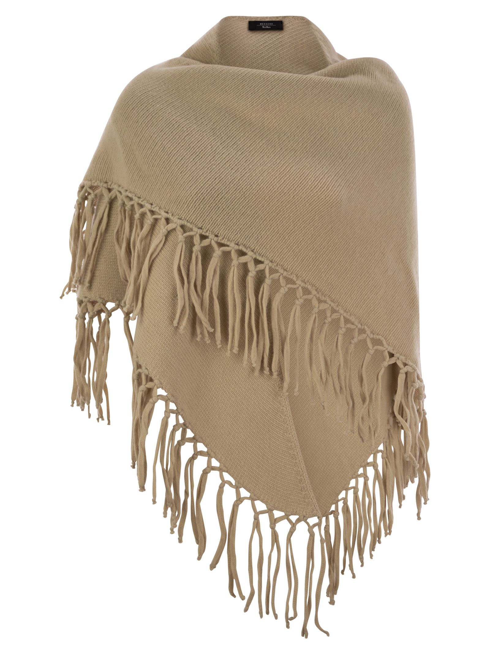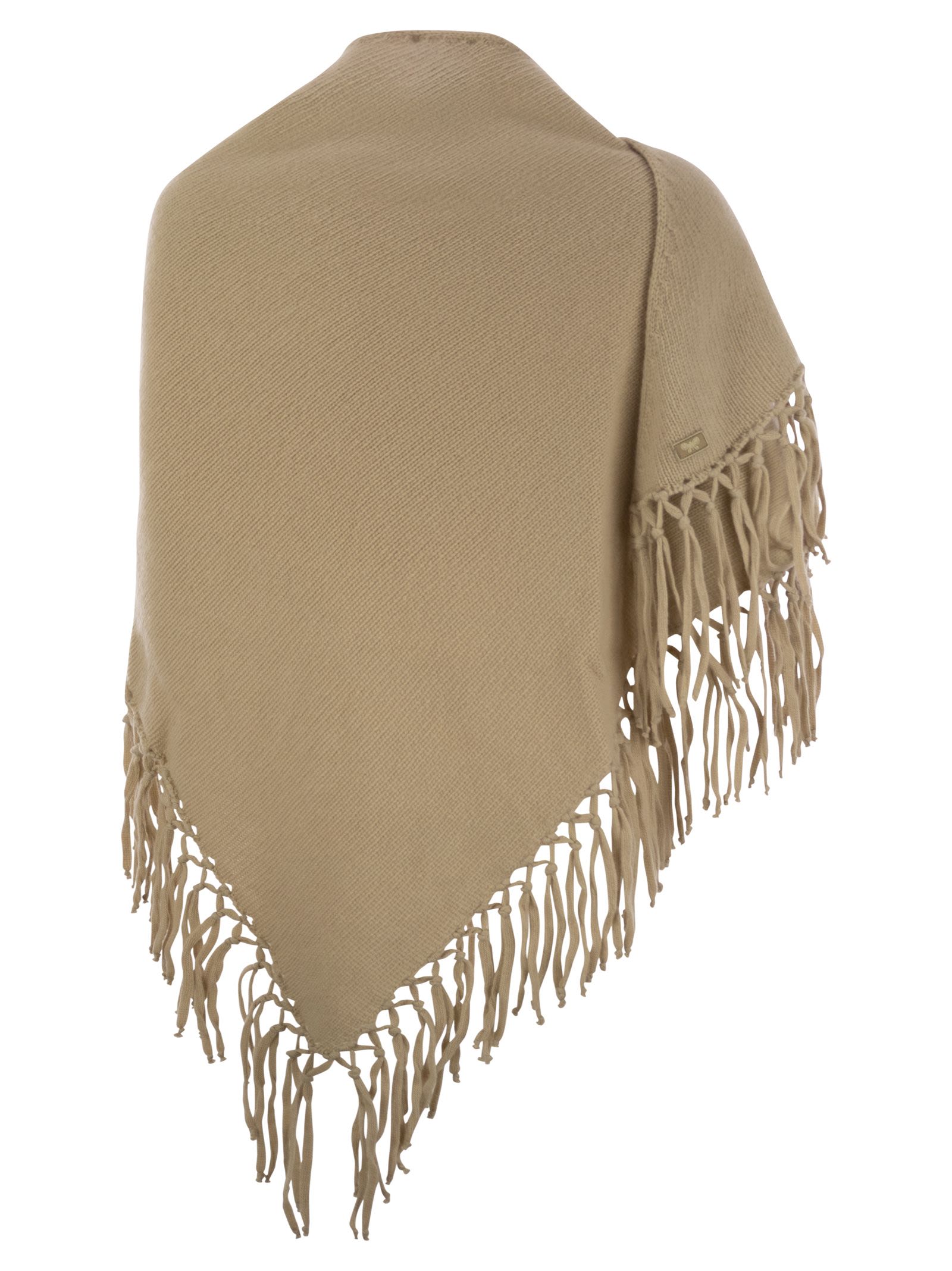 Triangle shawl made of fine pure wool yarn, with fringed pattern on both ends. Personalised with tone-in-tone embroidered butterfly logo label. - Fringed edges - Triangle shape - Tone-on-tone embroidered logo DESIGNER ID: 2425746025600 010