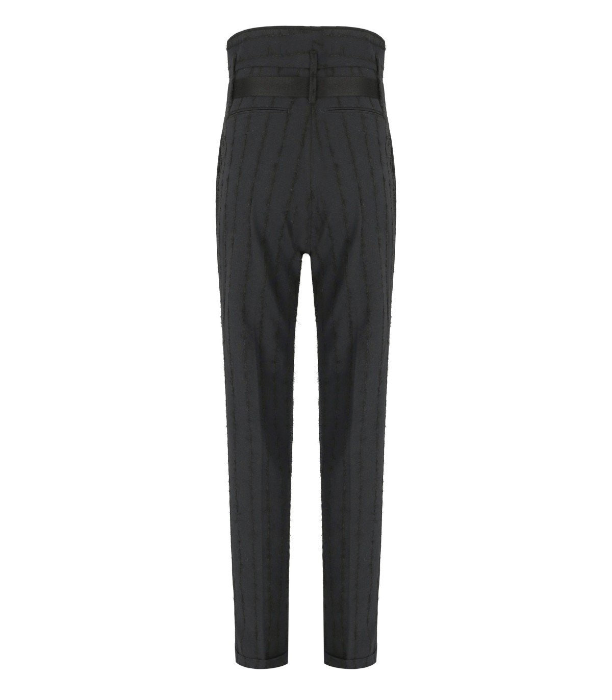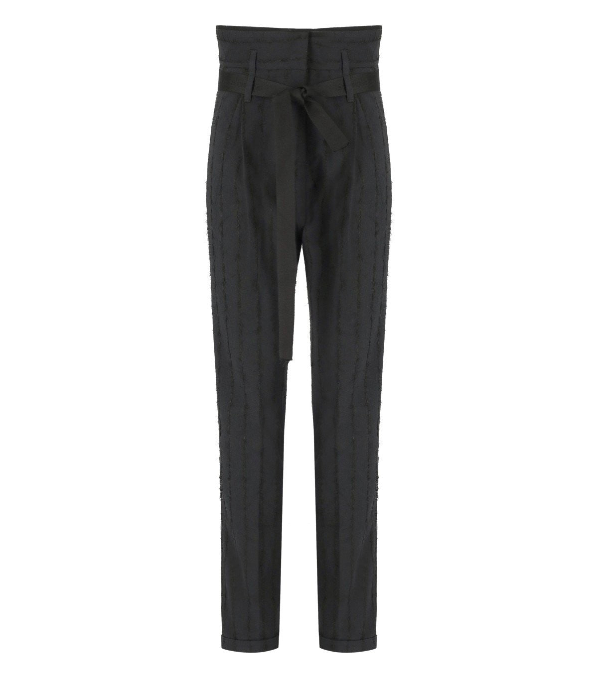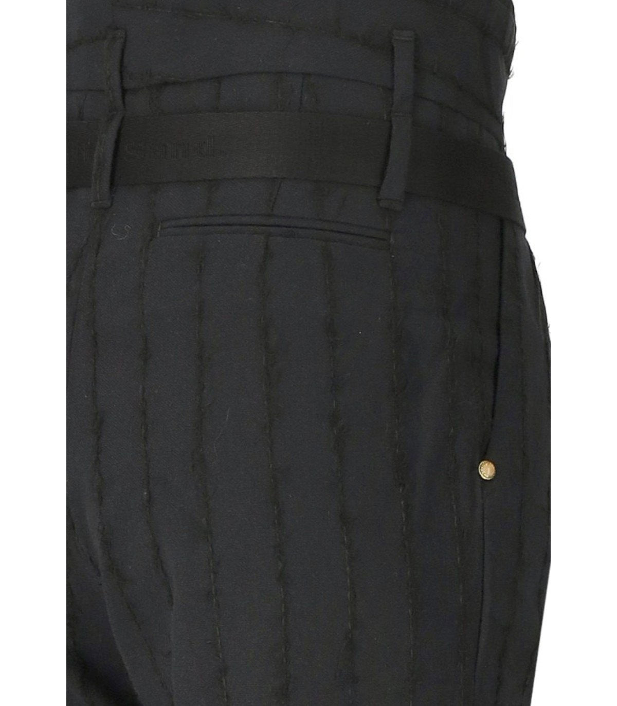 Kelly pants by White Sand made of cotton in black. Characterized by a frayed texture, it features a hidden zip closure and button fastening. It has a waist with cotton belt loops, branded. It has side welt pockets and faux pockets on the back. Regular fit. Composition: 64% cotton, 24% polyester, 7% viscose, 5% other fibers.