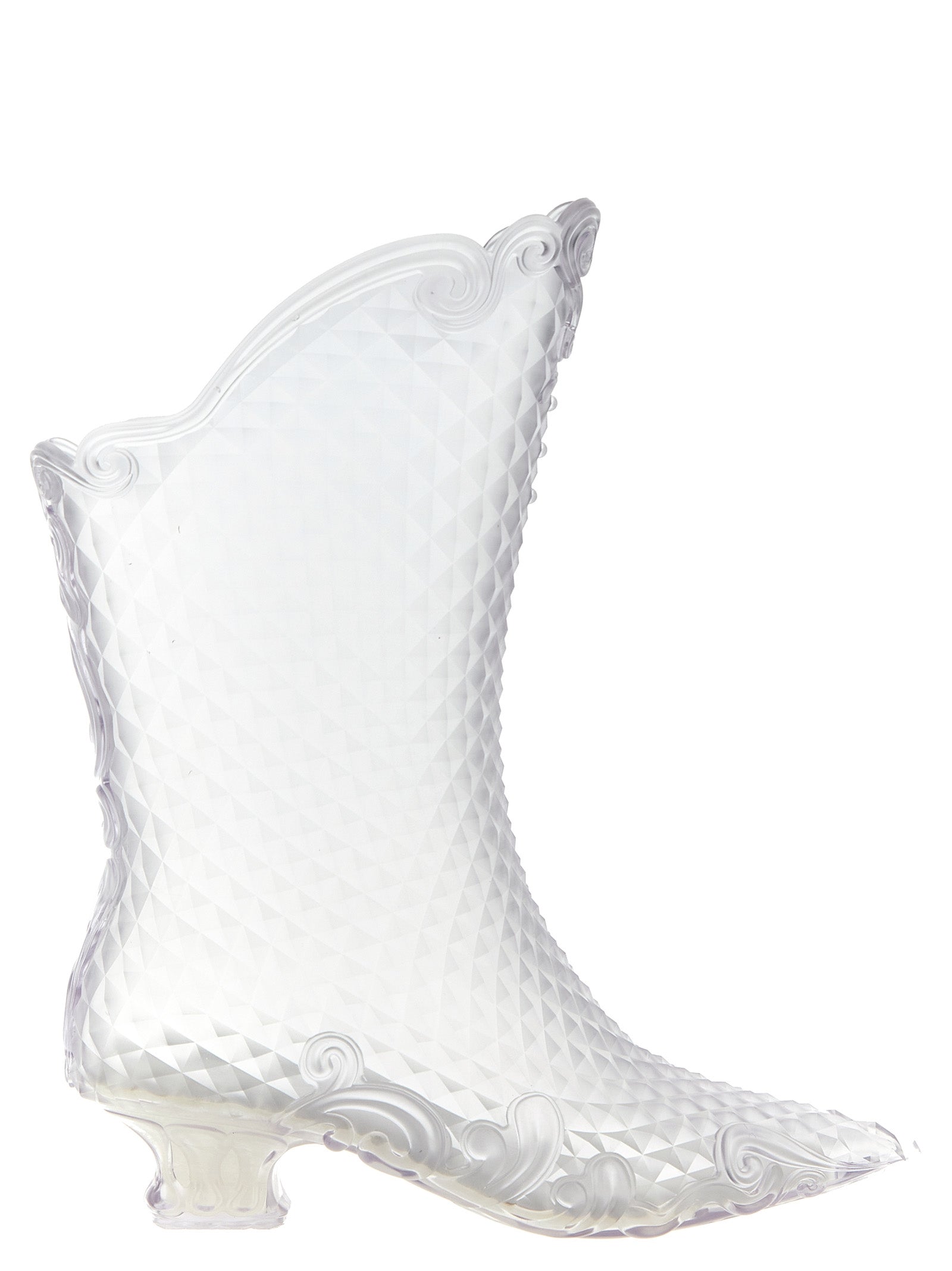 Y/Project x Melissa 'Court' ankle boots in transparent textured plastic material, pointed toe, and shaped low heel.