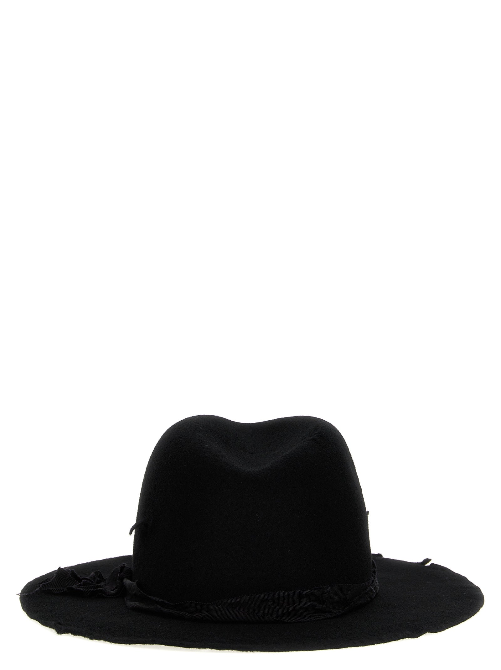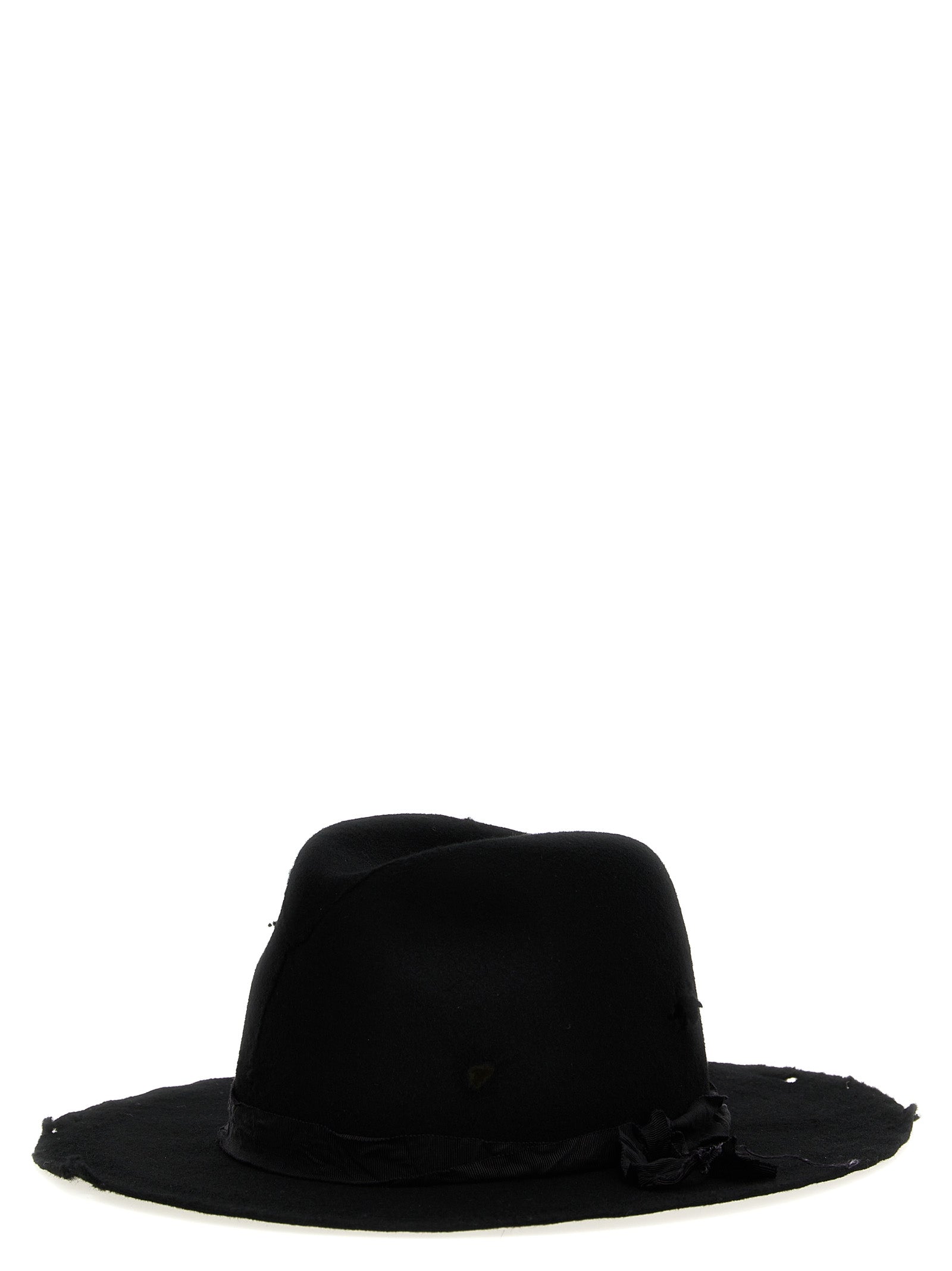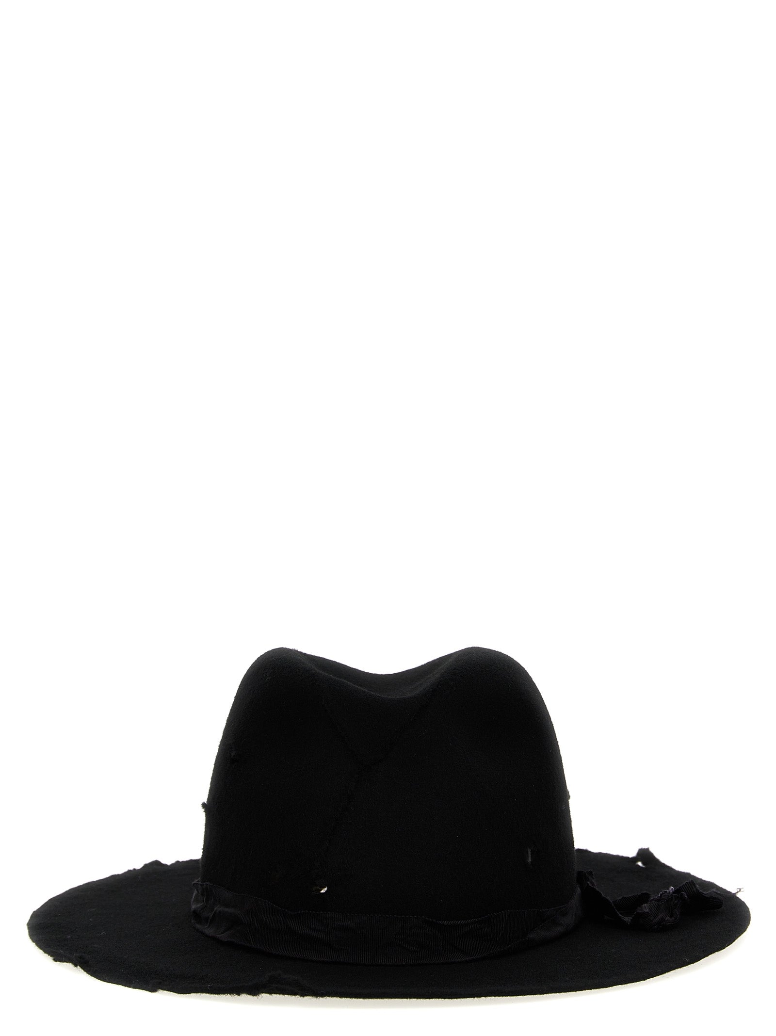 'Damage Soft' wool hat with destroyed effect details, grosgrain band.