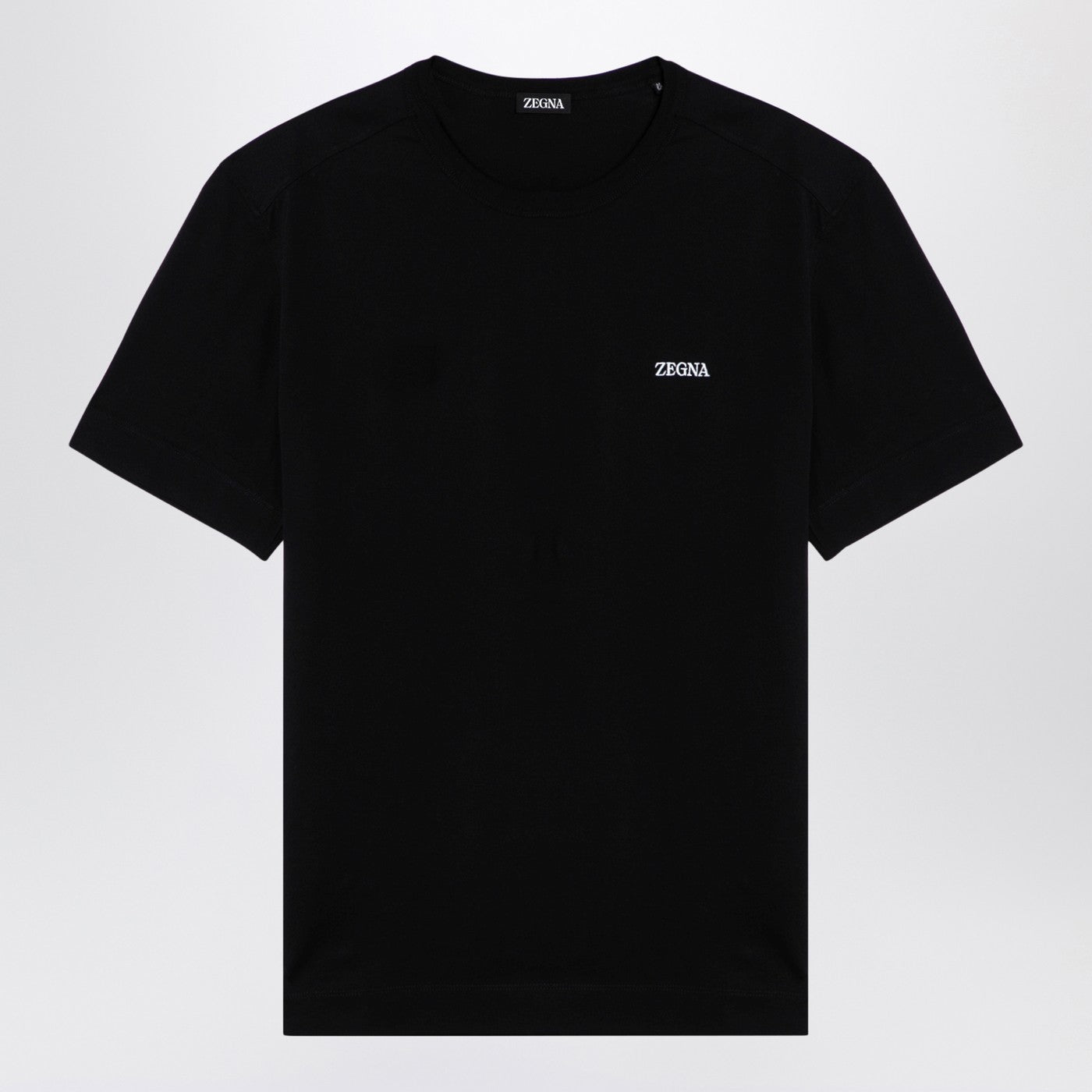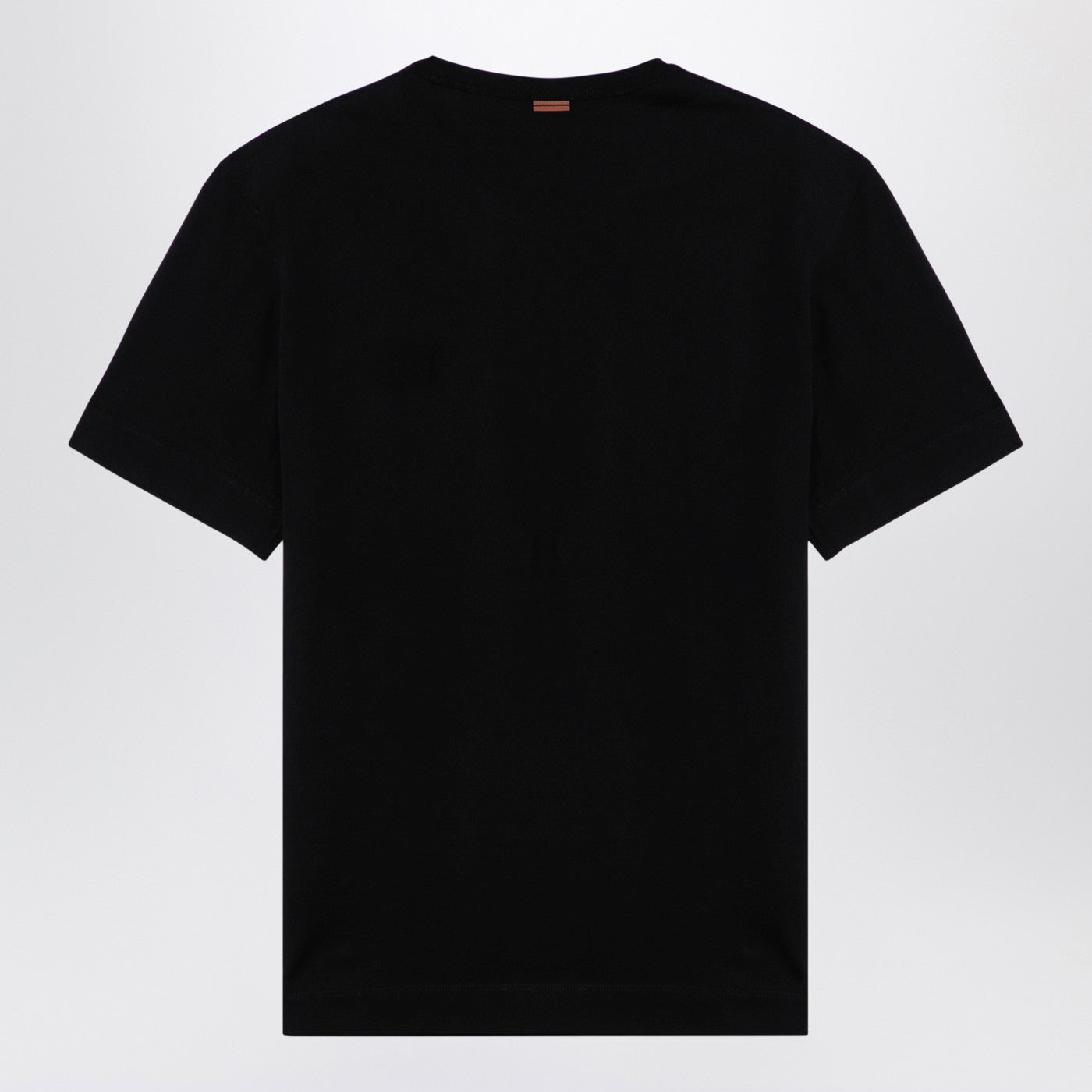 Black cotton crew-neck T-shirt from Ermenegildo Zegna featuring a logo print on the chest, short sleeves and a straight hem.