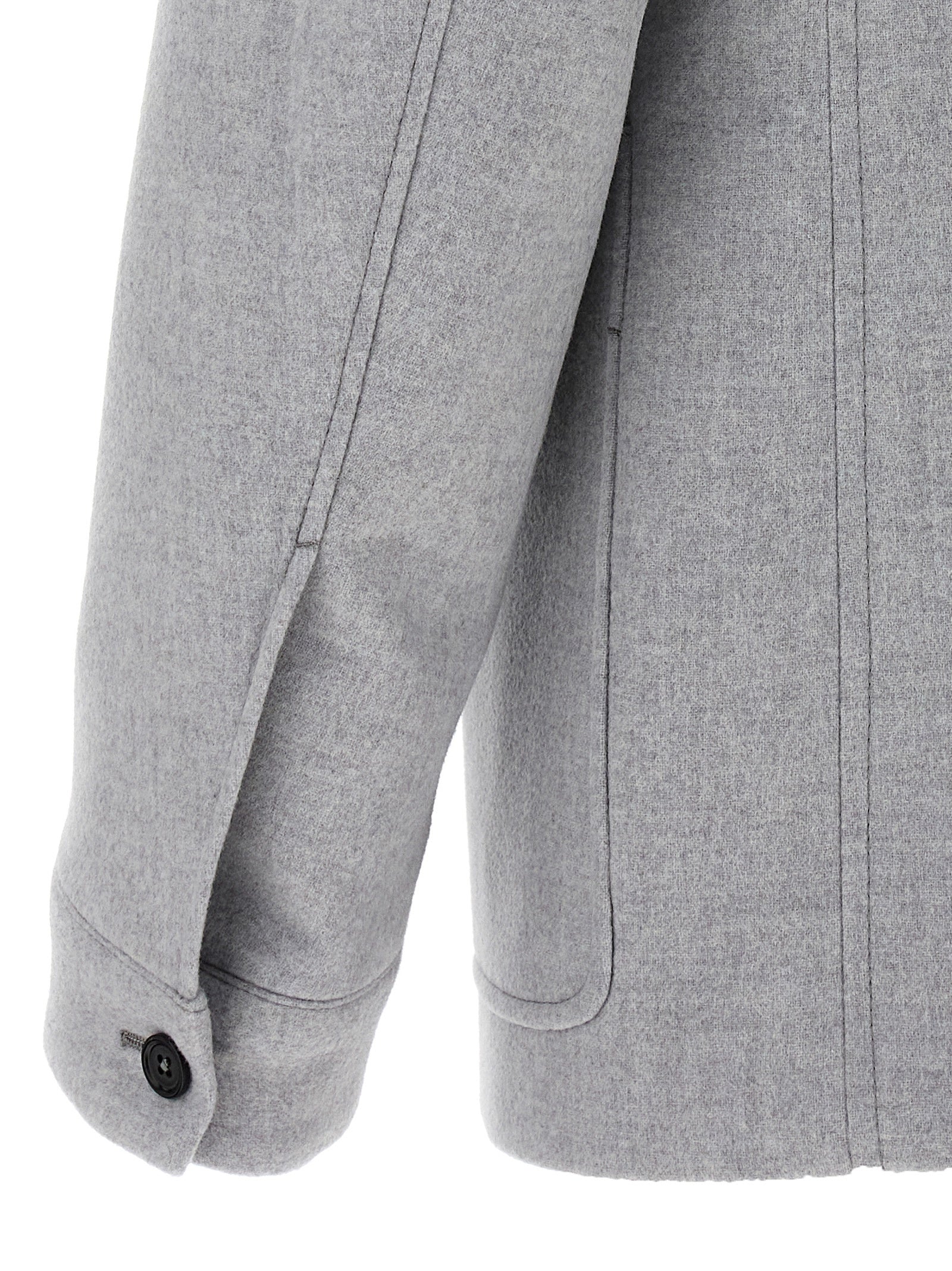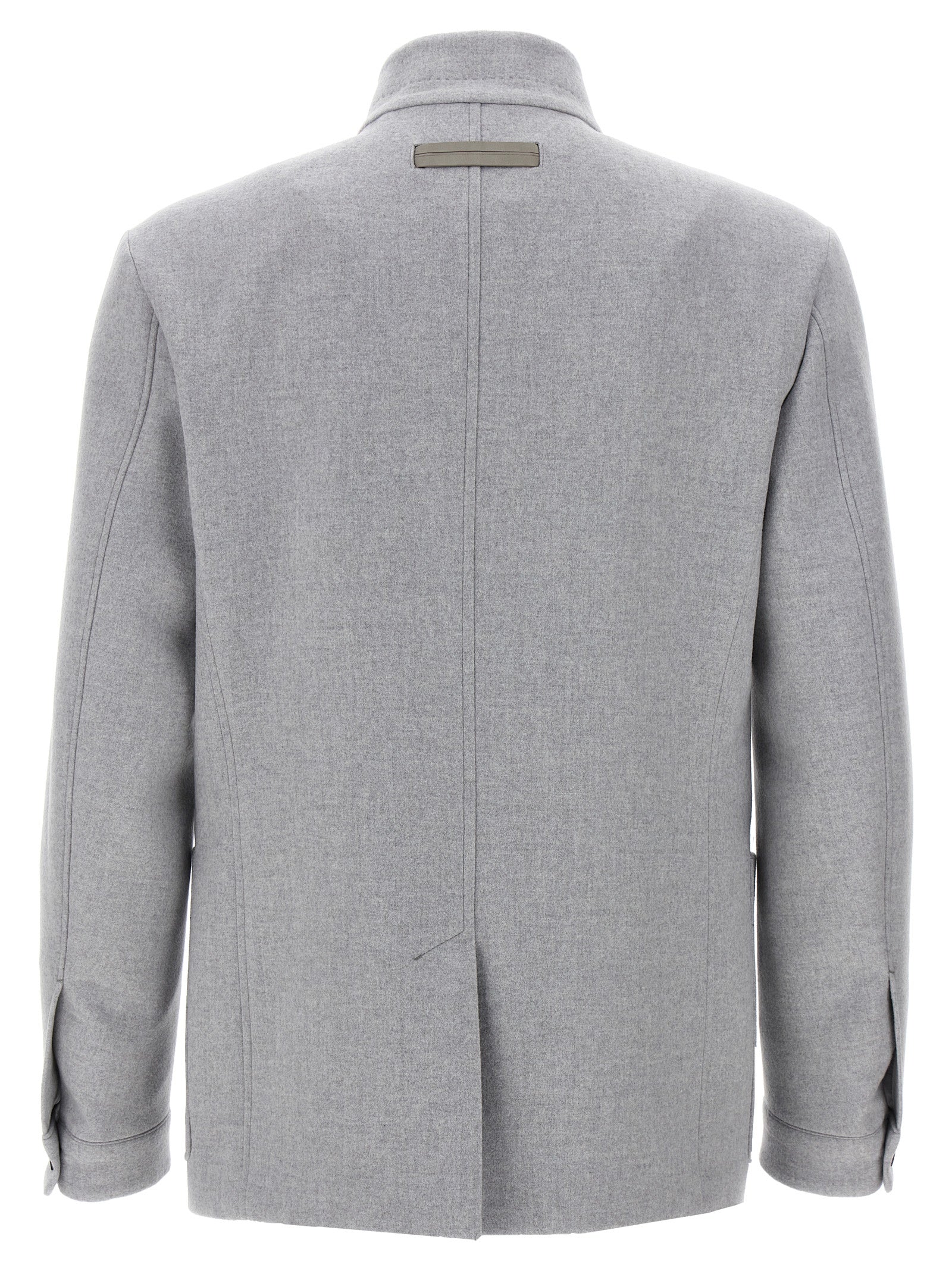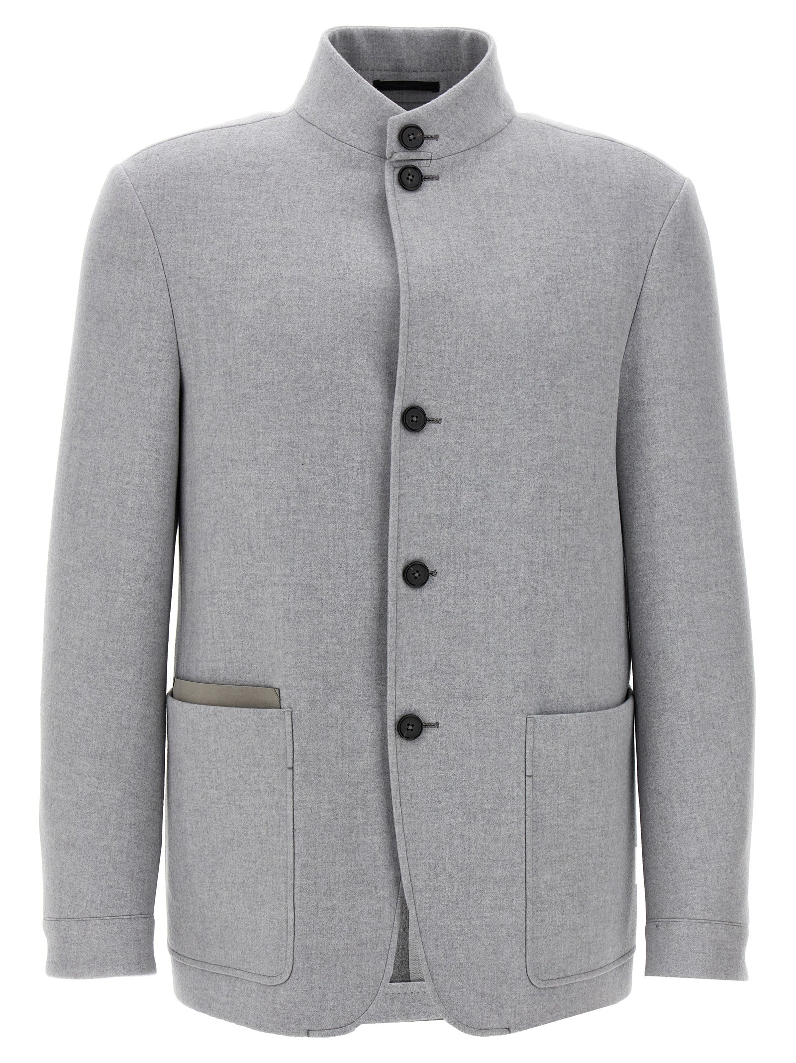 'Il Conte in Trofeo™' blazer in wool and cashmere blend, 'Zegna 232 Road Brand Mark' in leather at the back, mandarin collar, button closure, pockets, long sleeves, back split.