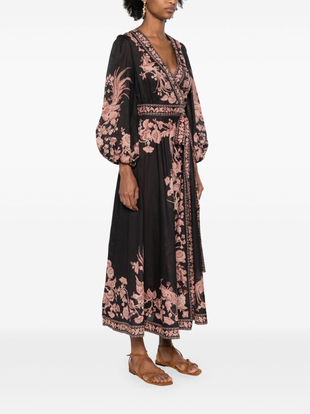 Zimmermann Floral Print Wrap Midi Dress