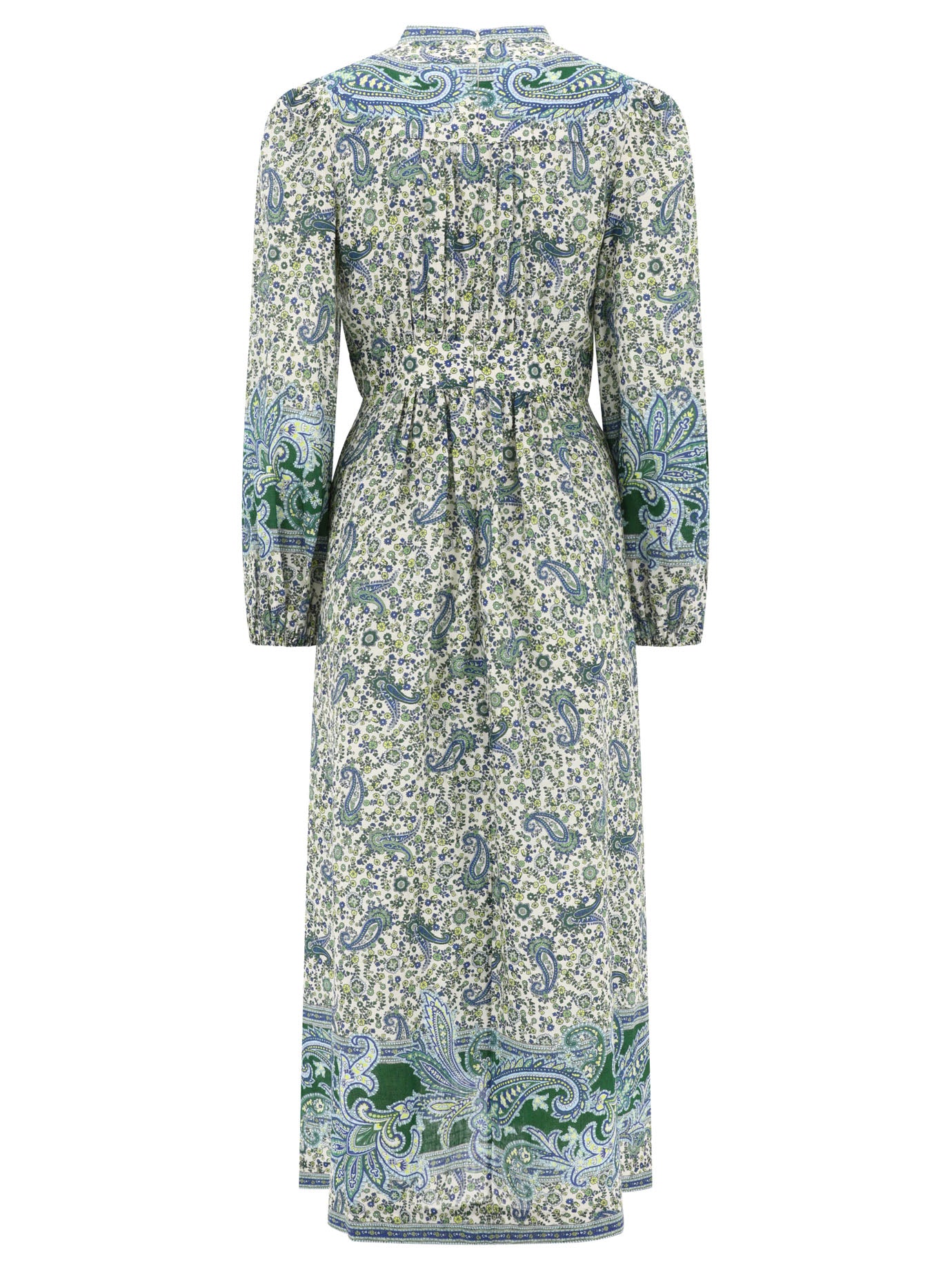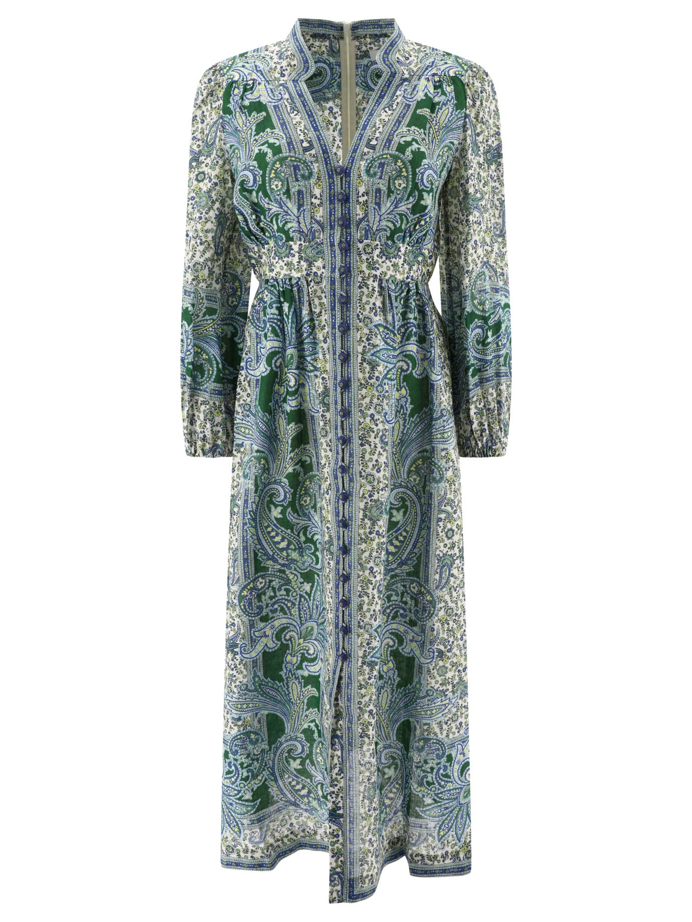 Zimmermann's "Ottie Plunge" midi dress is an extraordinary choice for those seeking elegance and comfort in one. This chemisier, with its distinctive and sophisticated paisley pattern, is perfect for dynamic women who like to feel feminine without sacrificing comfort. Embellished with a thoughtful design, the dress accentuates the feminine figure with an unmistakable touch of style. || - Regular fit
