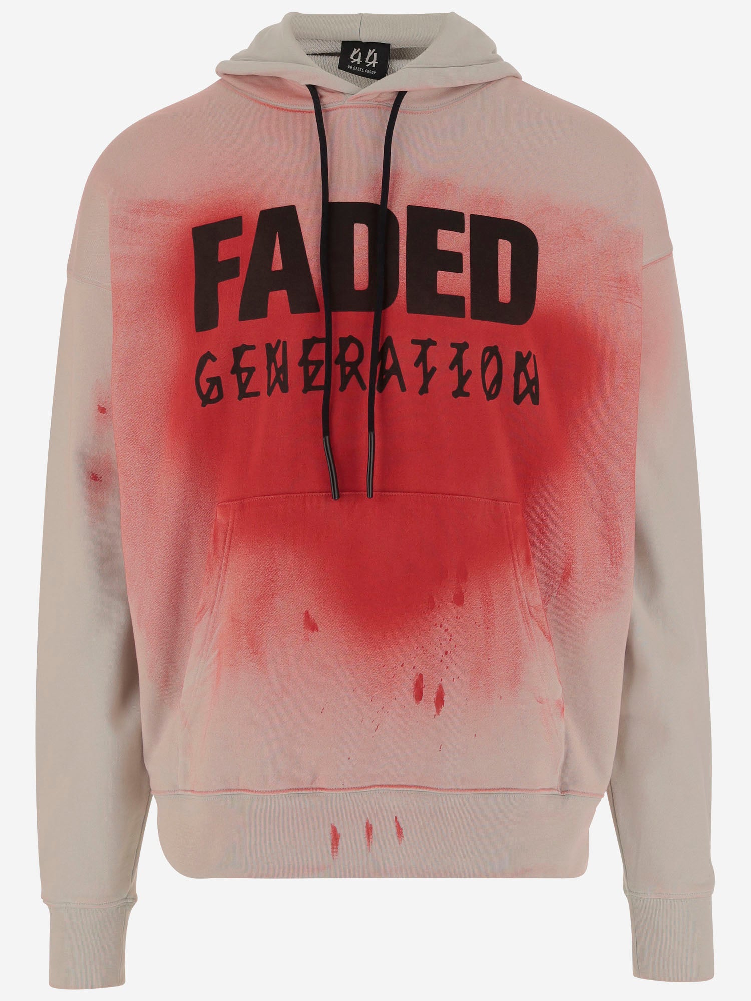 44 Etikettgruppen bleknade gen bomullsweatshirt med tryck