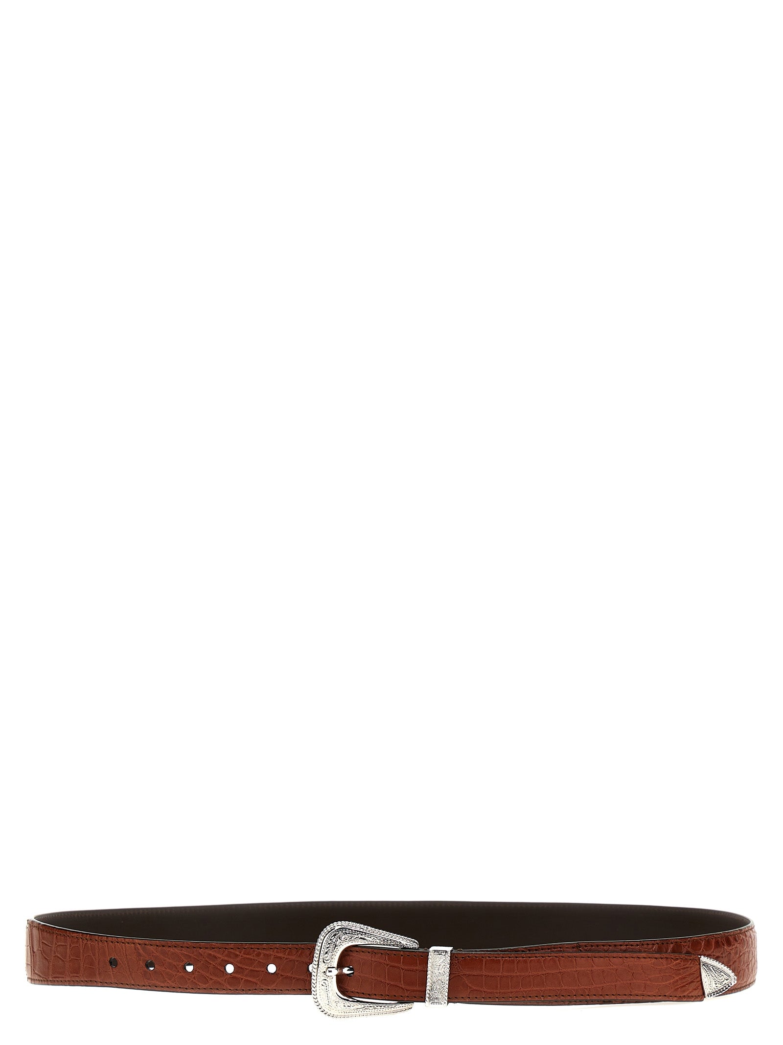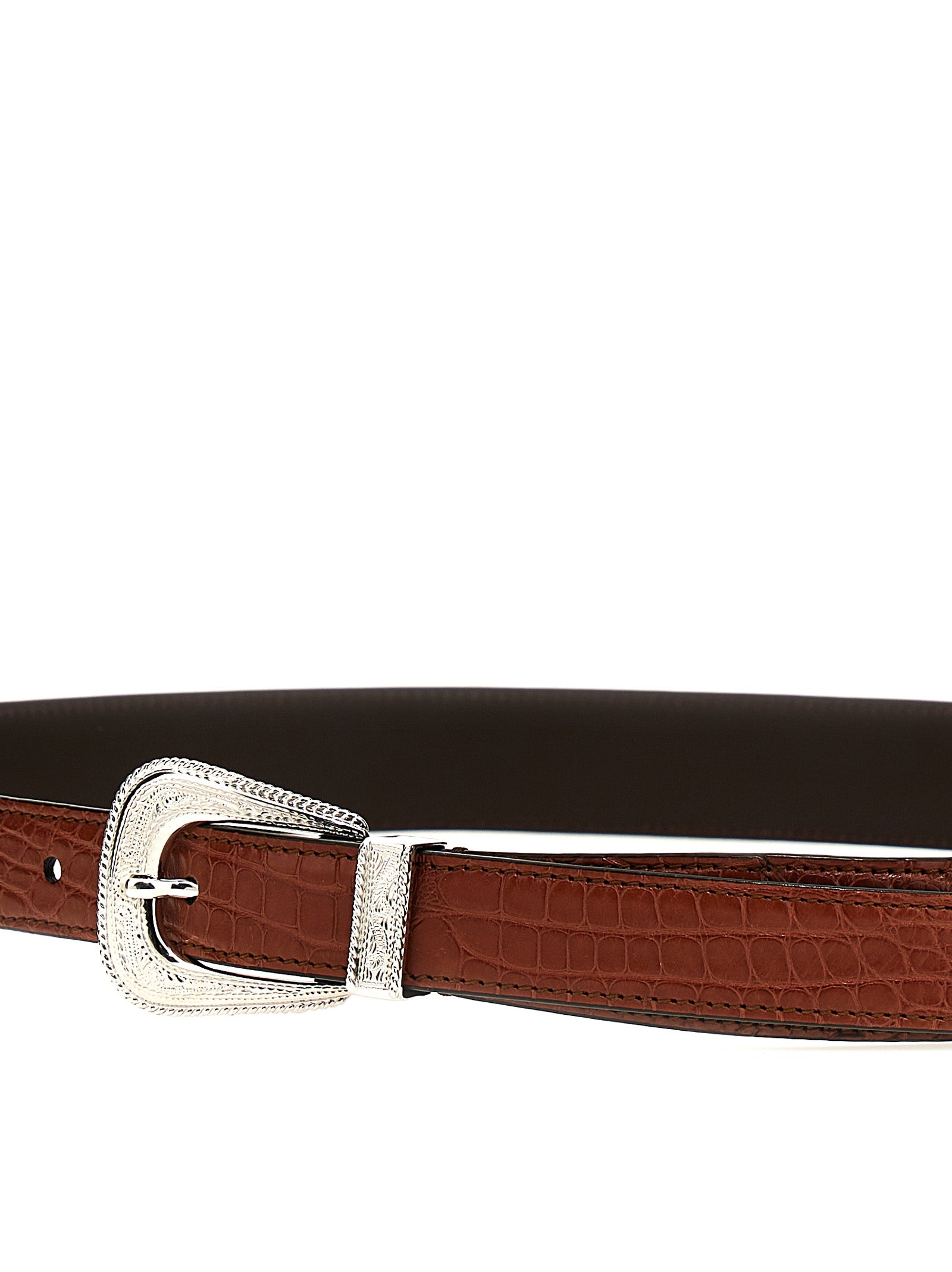 Krokodilläderbälte med västerinspirerad metallspänne ..