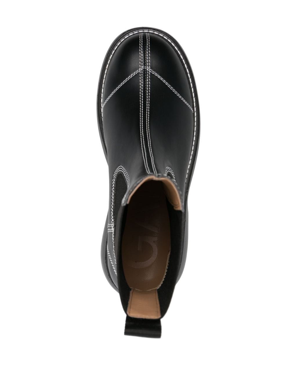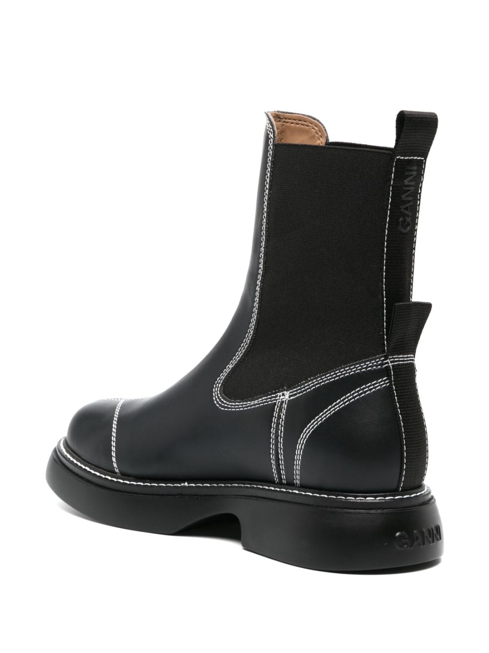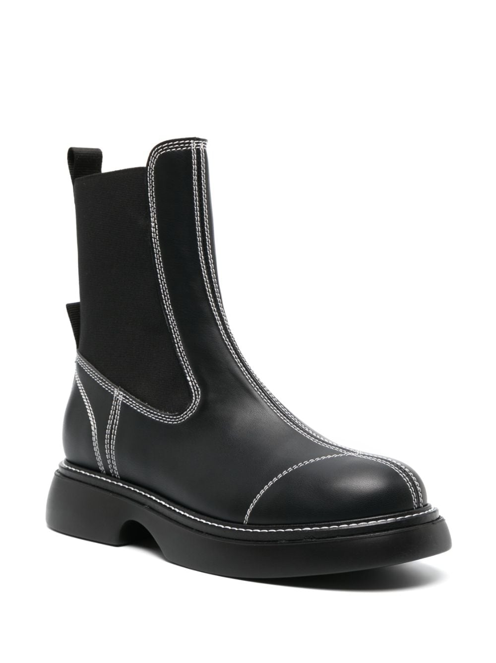 Topstitched läder chelsea stövlar från ganni med svart, faux läder, kontrast sömmar, rund tå, elastiska sidopaneler, drag-tab vid hälen, slip-on-stil och gummisula.