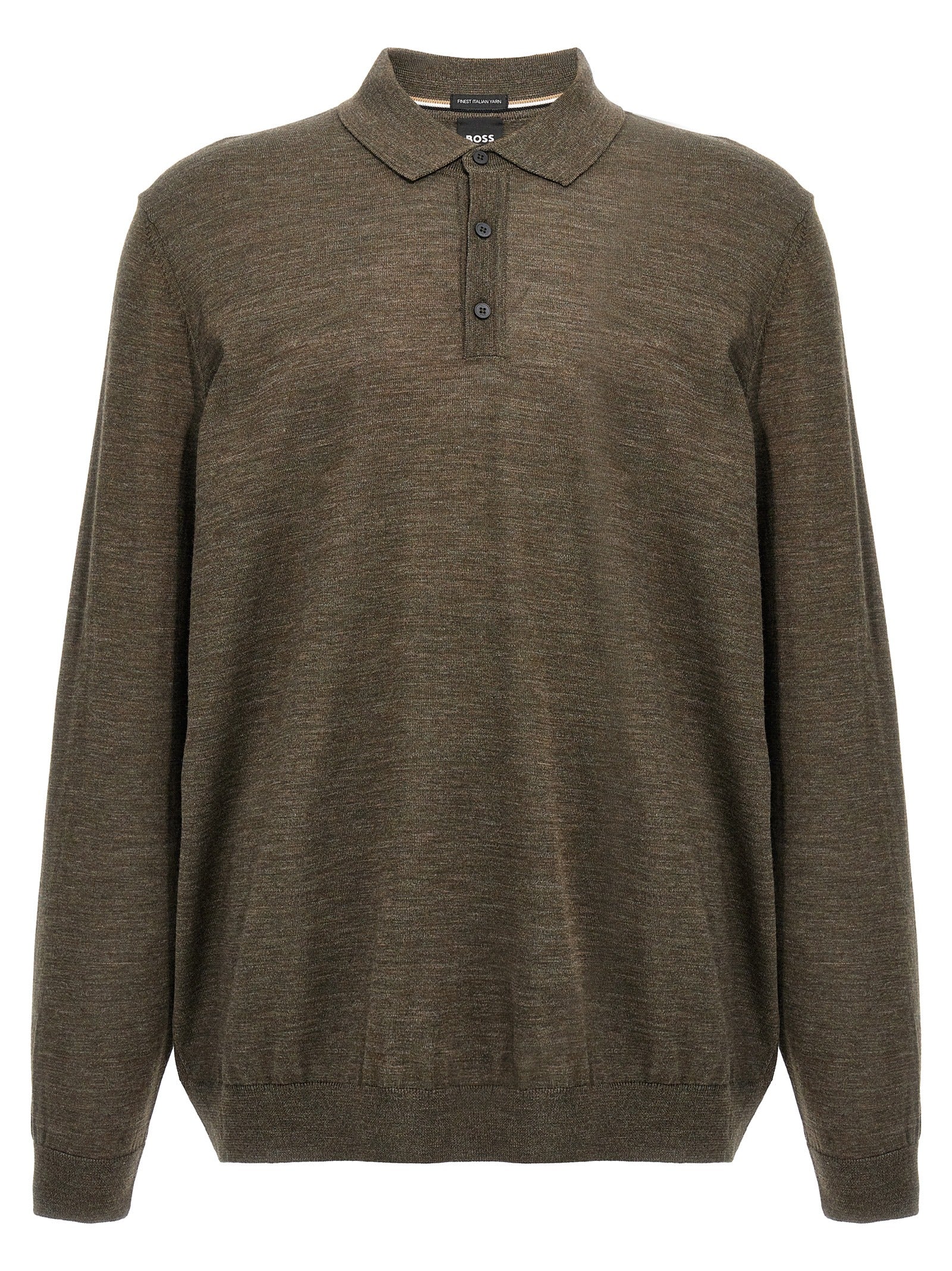 Virgin wool 'Lancione' sweater with polo shirt collar and buttons, long cuffed sleeves. SUSTAINABLE: product made with wool from responsible farms.