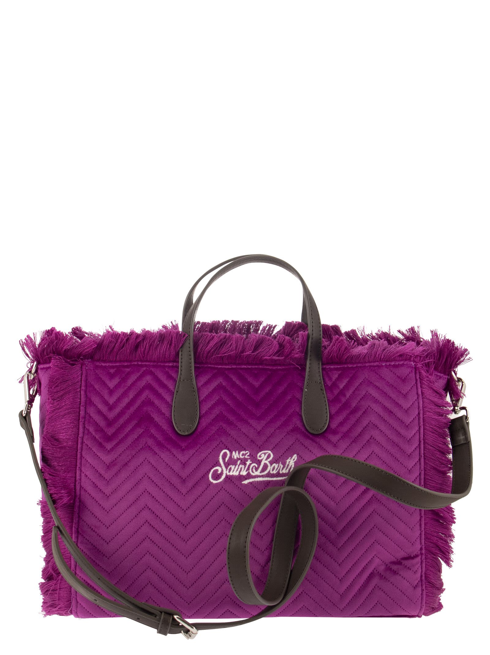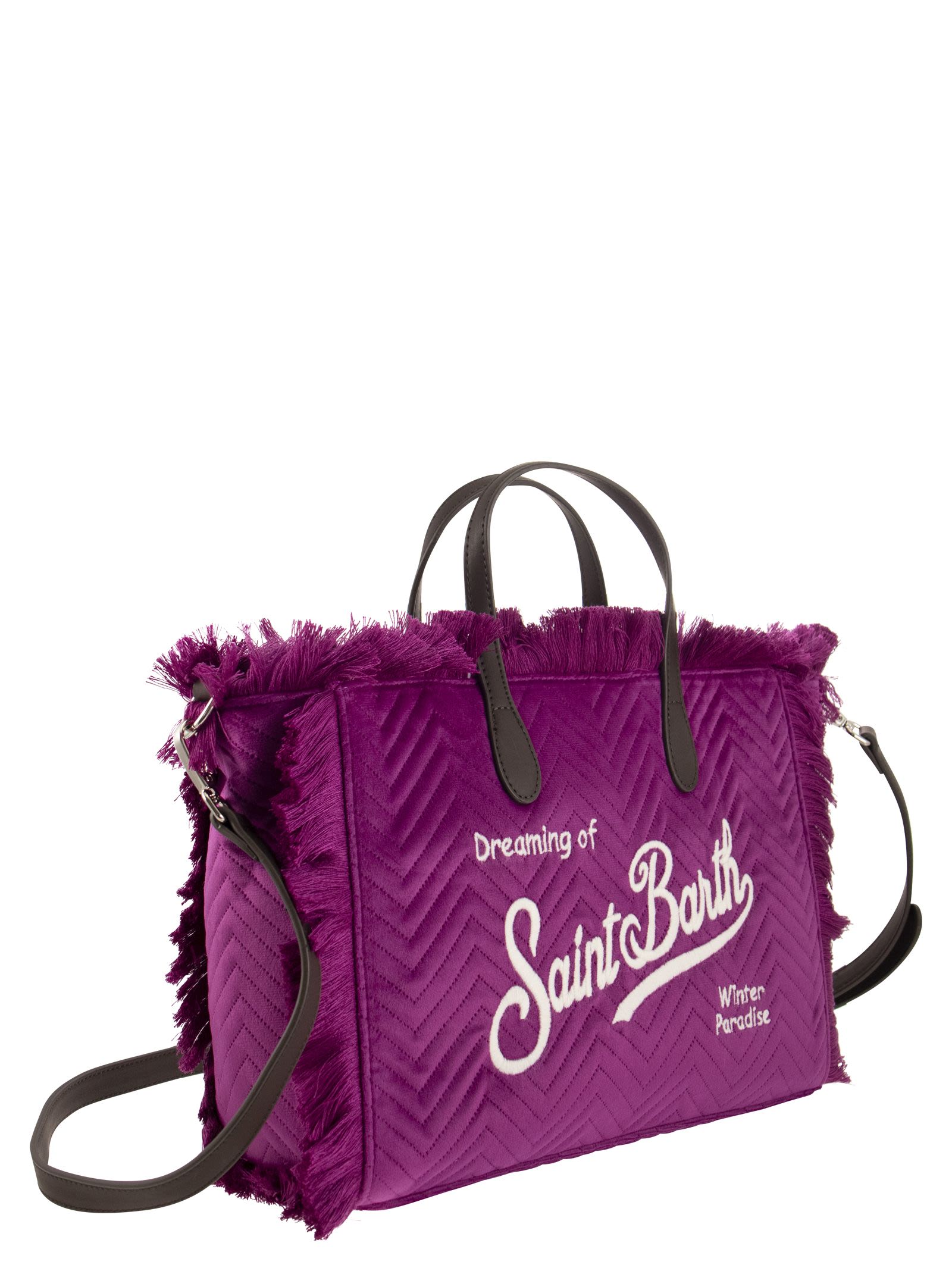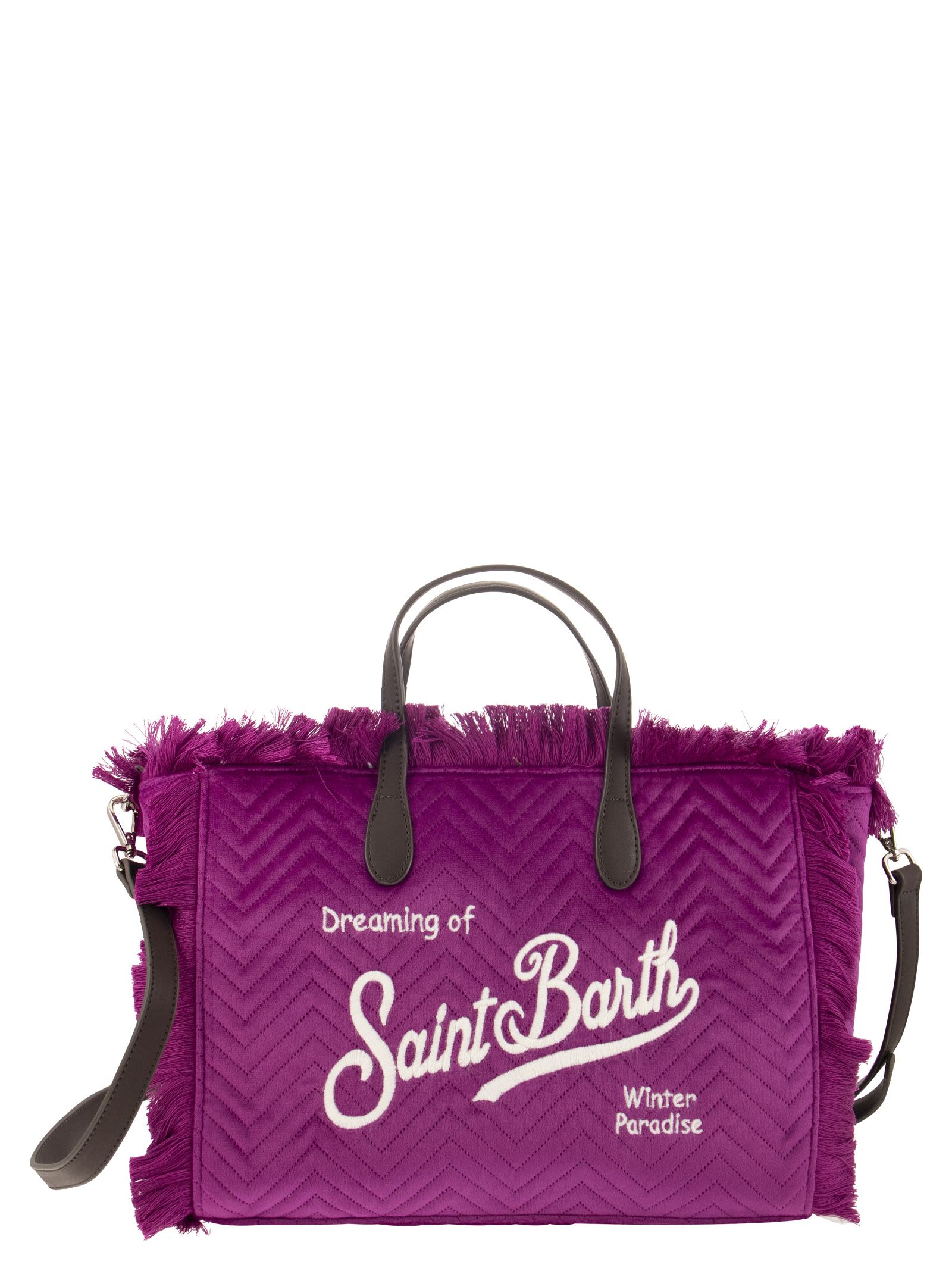 Quiltad tygpåse, ett måste för vintersäsongen, praktiskt tack vare handtagen för att bära den för hand och den praktiska axelremmen för att ha den med komfort. - Saint Barth -logotyp - fransade kanter - avtagbar och justerbar axelrem - Faux läderhandtag Designer ID: COL0003 09693E