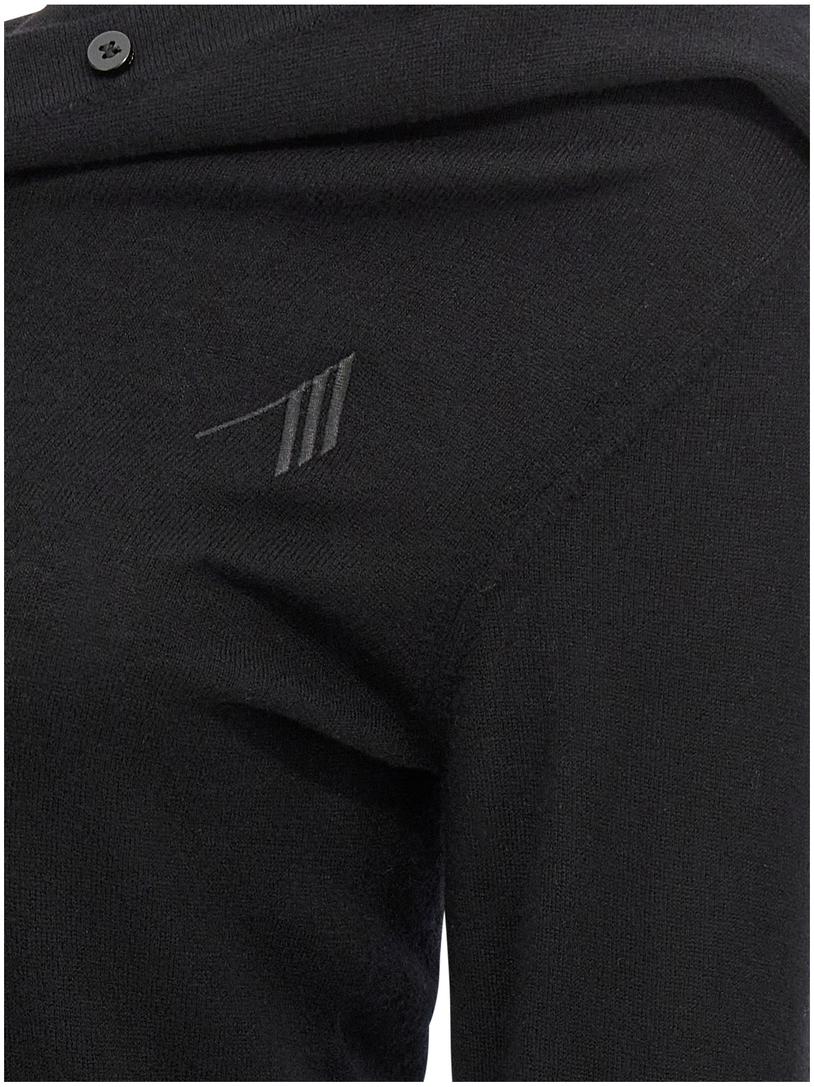 Miniklänning i jungfru ull och kashmirblandning, modulär sjalhalsring, ton-på-ton-logotyp broderier och stängning av framknappen, långa blossade ärmar.