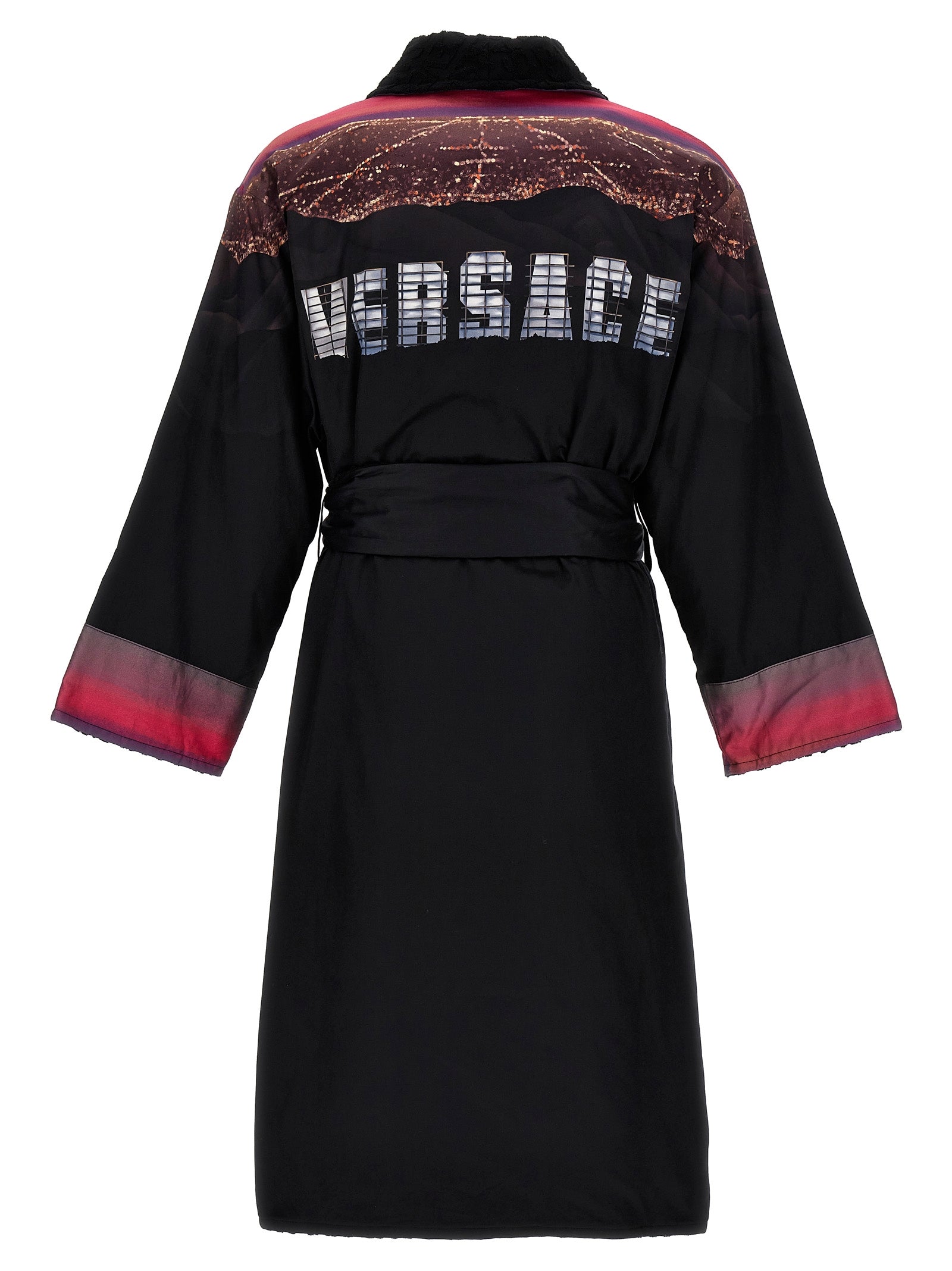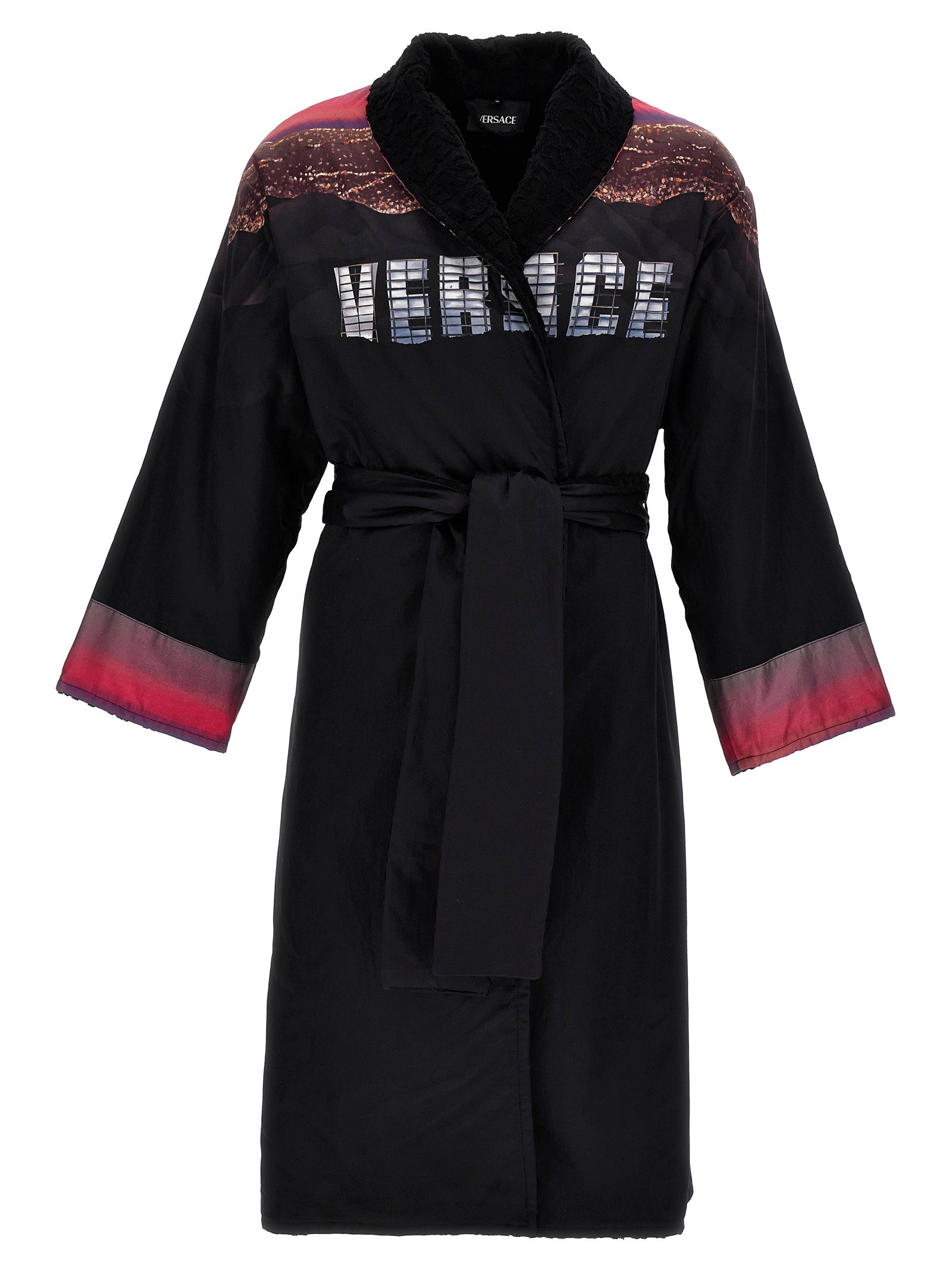 'Baroccodile' tryckt badrock, bälte stängning i midjan, fickor, långa ärmar.