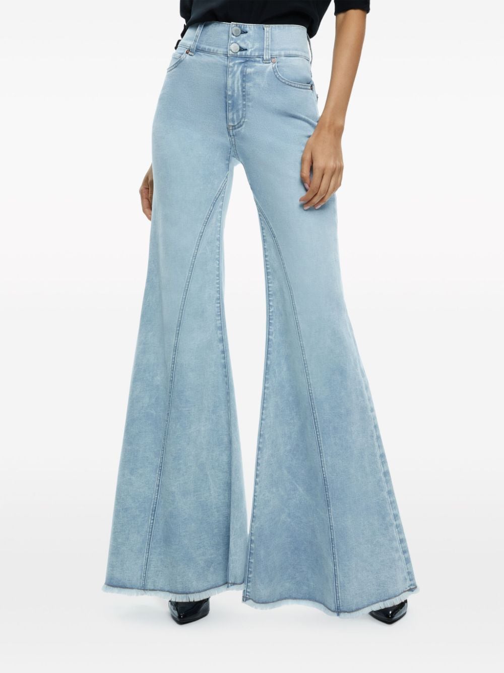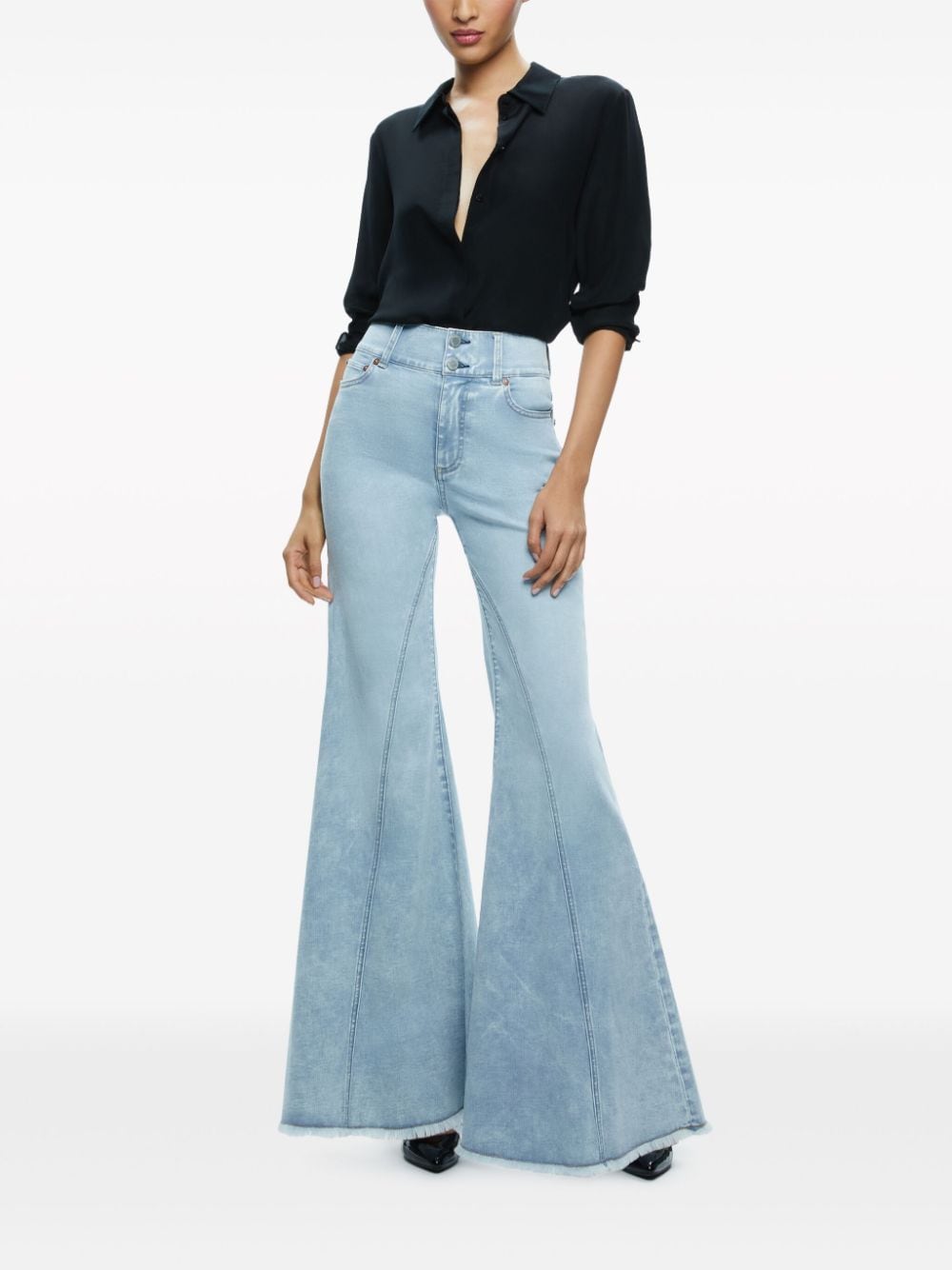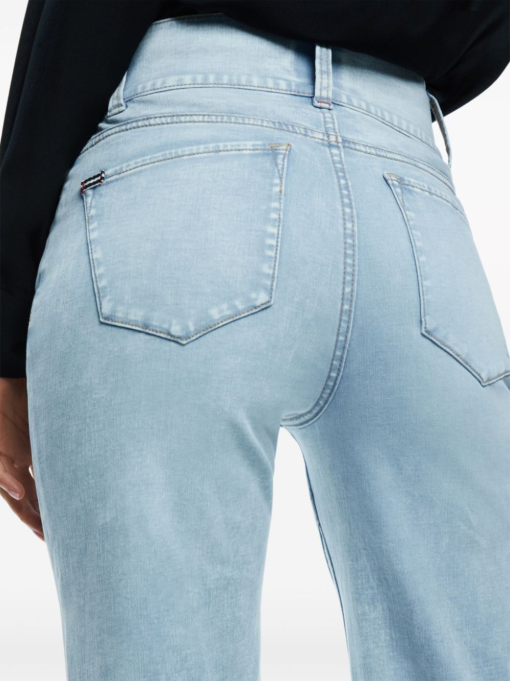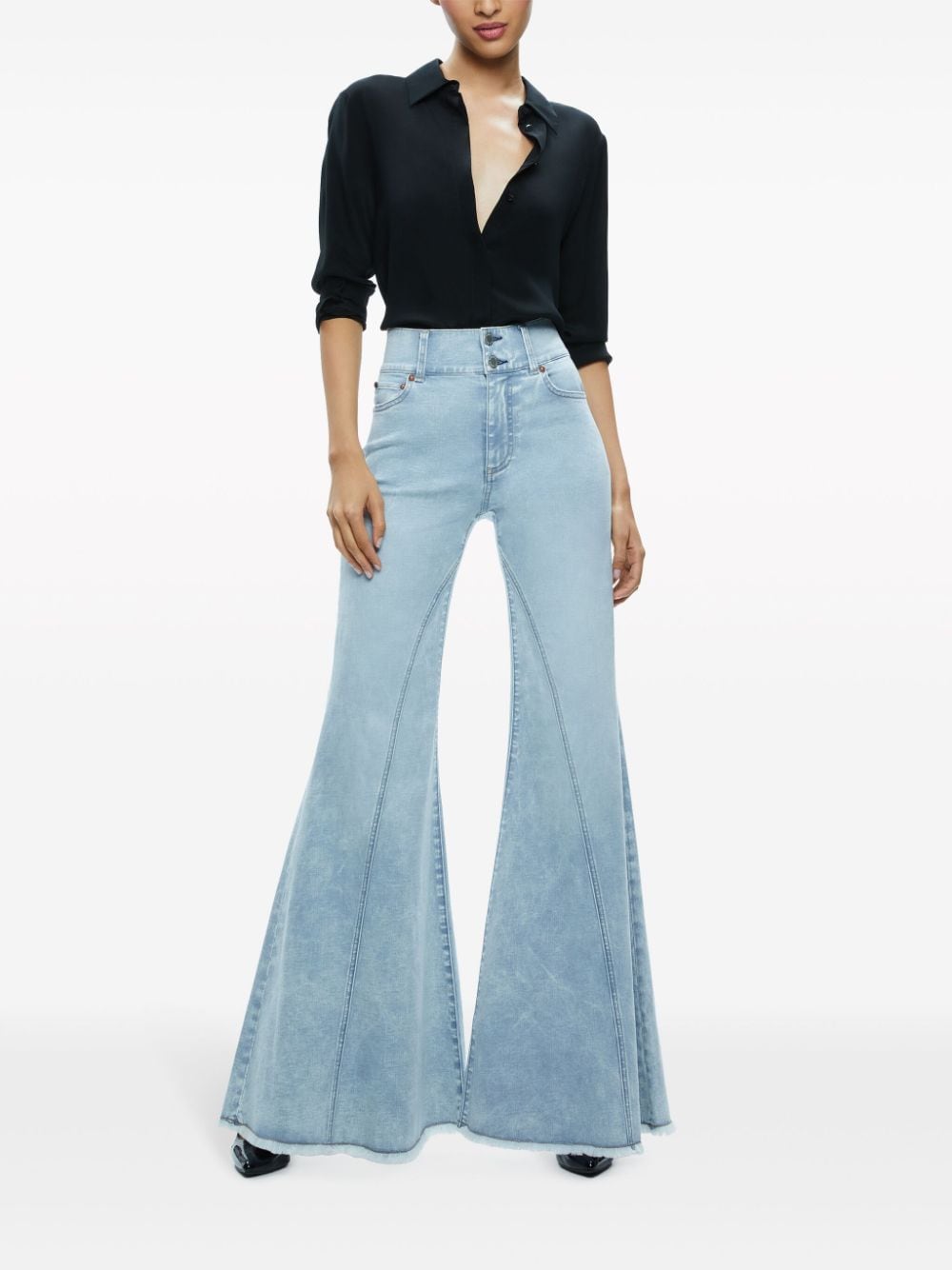 浅蓝色的棉花混合牛仔牛仔皮带环隐藏着苍蝇和纽扣固定经典五个口袋