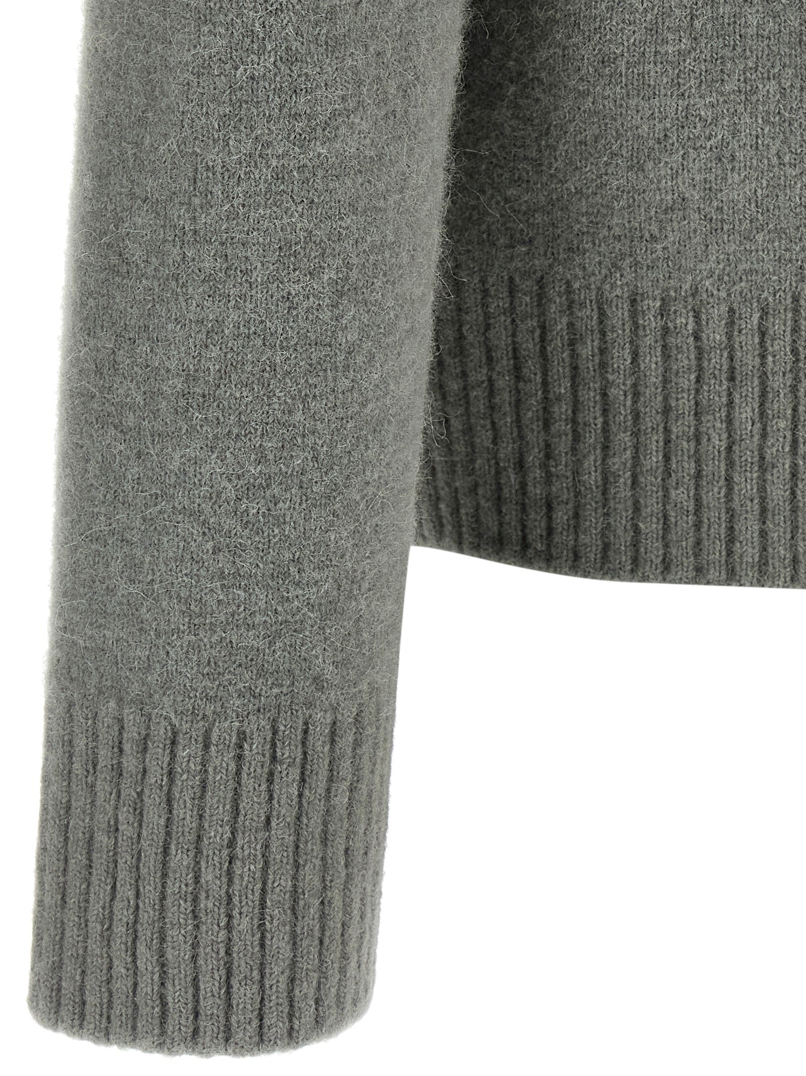 毛毡美利奴羊毛针织 Polo 衫,正面、衣领和纽扣上饰有对比色“Ami De Coeur”嵌花,长袖袖和落肩设计。